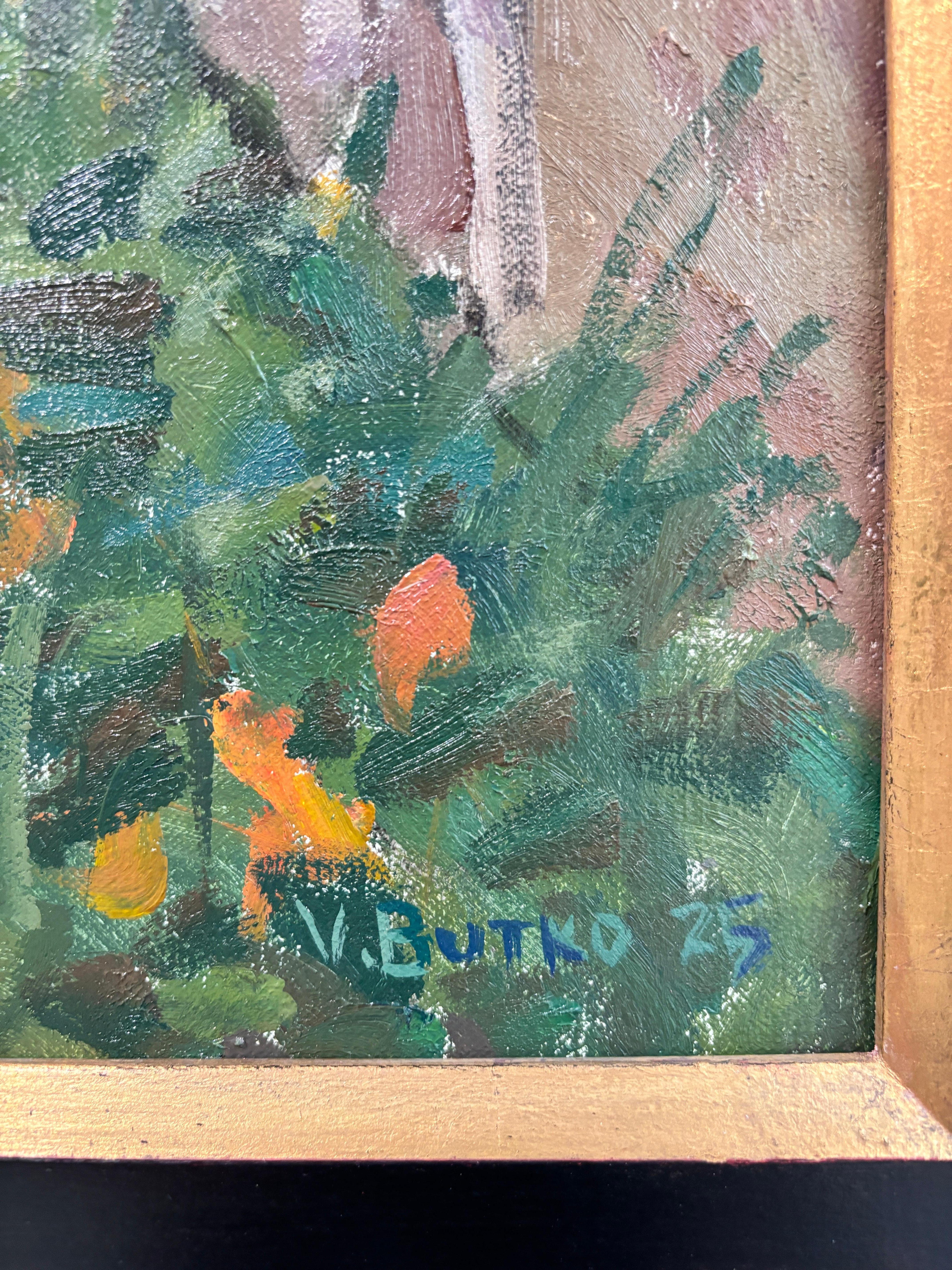 Signiert V. Butko in der rechten unteren Ecke, gerahmt in einem traditionellen schwarzen Rahmen mit Goldeinlage.