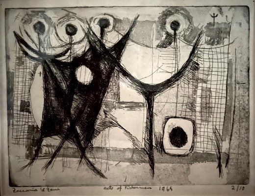 Zaccaria El Zeini (1932-1993) wuchs im beliebten Viertel Sayyida Zienab in der Altstadt von Kairo auf und absolvierte die Fakultät für Bildende Künste in der Hauptstadt, wo sein Abschlussprojekt die Geburt der weiblichen Heiligen, der Namensgeberin seines Geburtsgebiets, zum Thema hatte. Er war ein Modernist der Nachkriegszeit, der seine formale Ausbildung in der Malerei in Venedig erhielt und die Akademie der Pravana absolvierte. In Italien entdeckte er seine Faszination für die griechisch-römische Architektur, die sich zu einem bevorzugten Thema seiner Malerei entwickeln sollte. Später wurde er Professor an seiner Alma Mater, der Fakultät für Bildende Künste, und beendete seine Karriere als Leiter der Abteilung für Malerei. El Zeinis Oeuvre umfasst vorwiegend expressionistische und abstrakt-figurative Malstile, wobei er eine starke Neigung zur Verwendung verschiedener persönlicher Symbole in seinem Werk und in verschiedenen Perioden aufweist. Diese Symbole stehen für jede der drei Ehefrauen, die er im Laufe seines Lebens hatte, und er platziert diese Symbole kryptisch als Markierungen in seinen Gemälden, sei es diskret oder offenkundig. Sein Aufwachsen im Sayyida-Zeinab-Viertel blieb einer der wichtigsten Einflüsse auf seinen Werdegang als Künstler, da er von Geburt an mit den Volksfesten rund um die Geburt der Enkelin des Propheten Mohammed konfrontiert wurde.