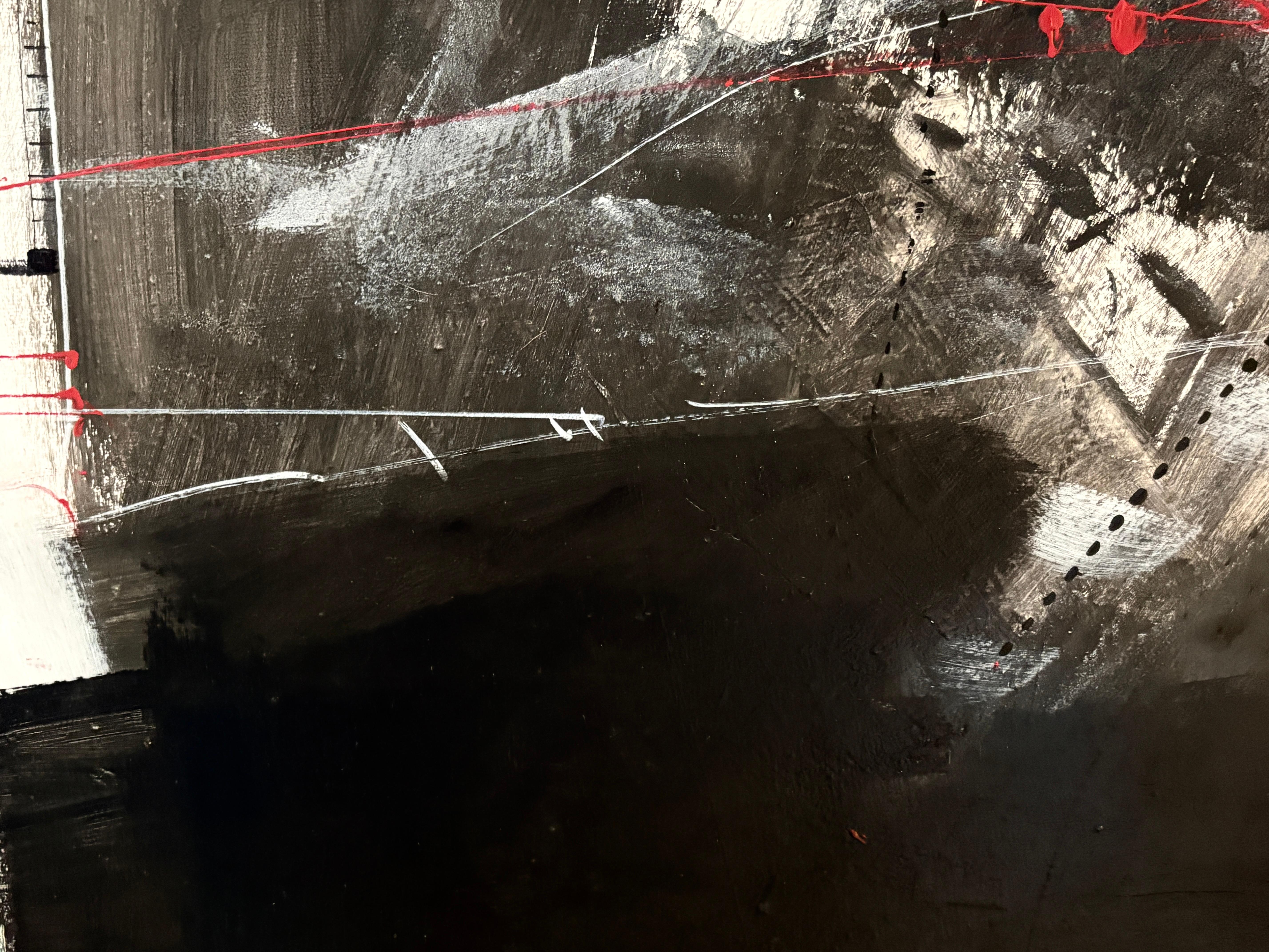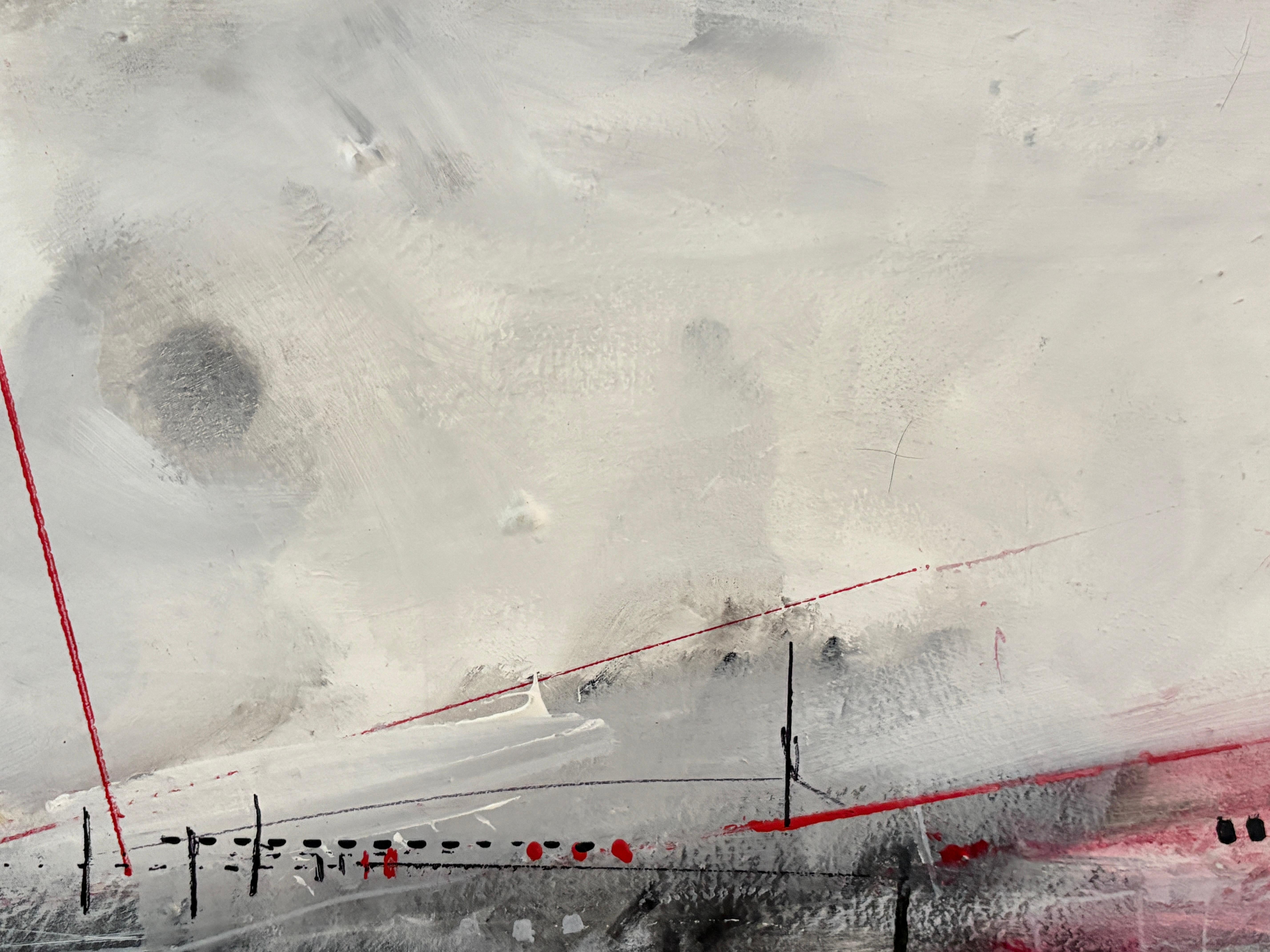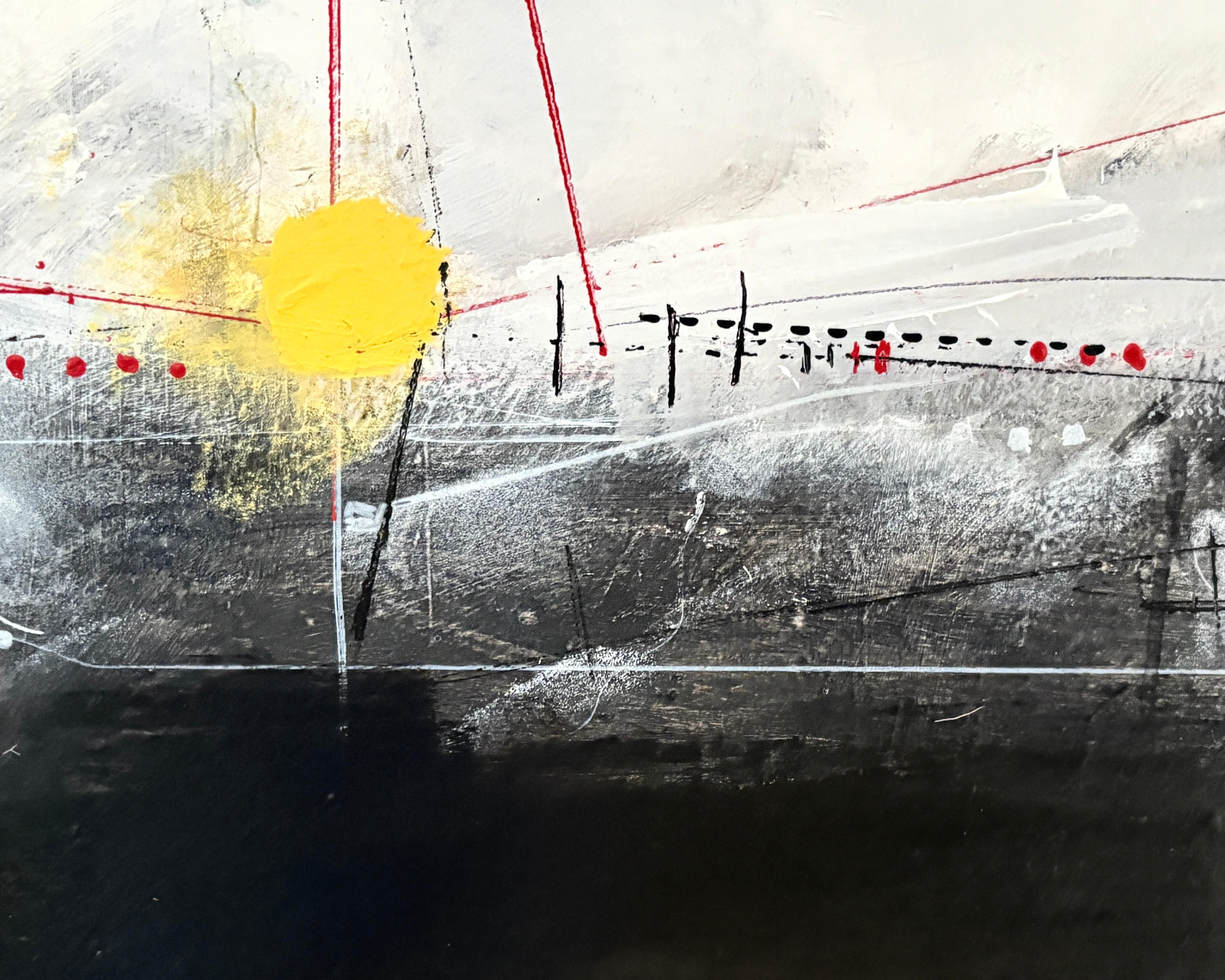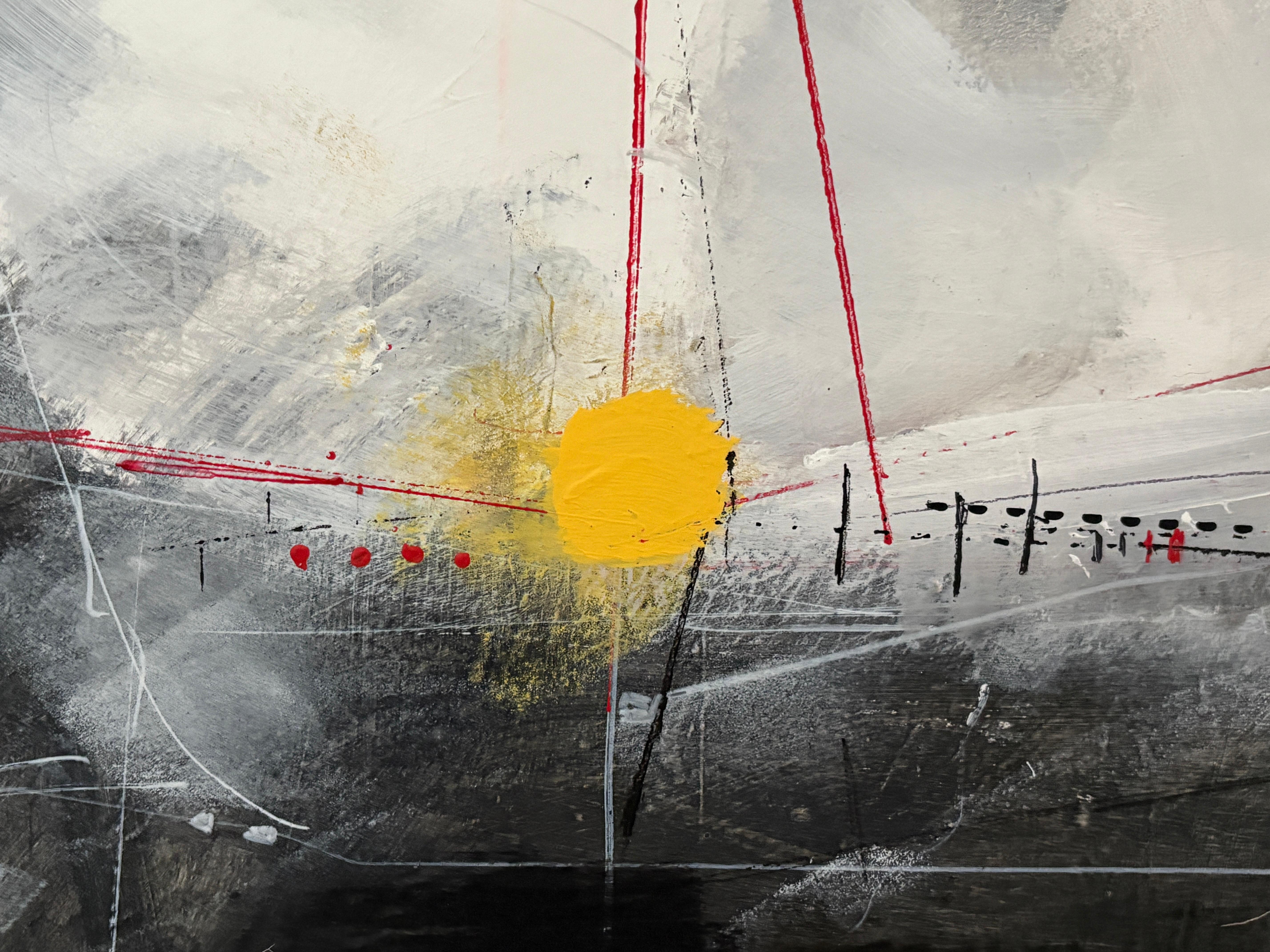 Stichworte: minimalistisch, abstrakt, expressionistisch, zeitgenössisch, urban, Landschaft, weiß, gelb, grau, schwarz, rot, Linie, Komposition, Zion Mor