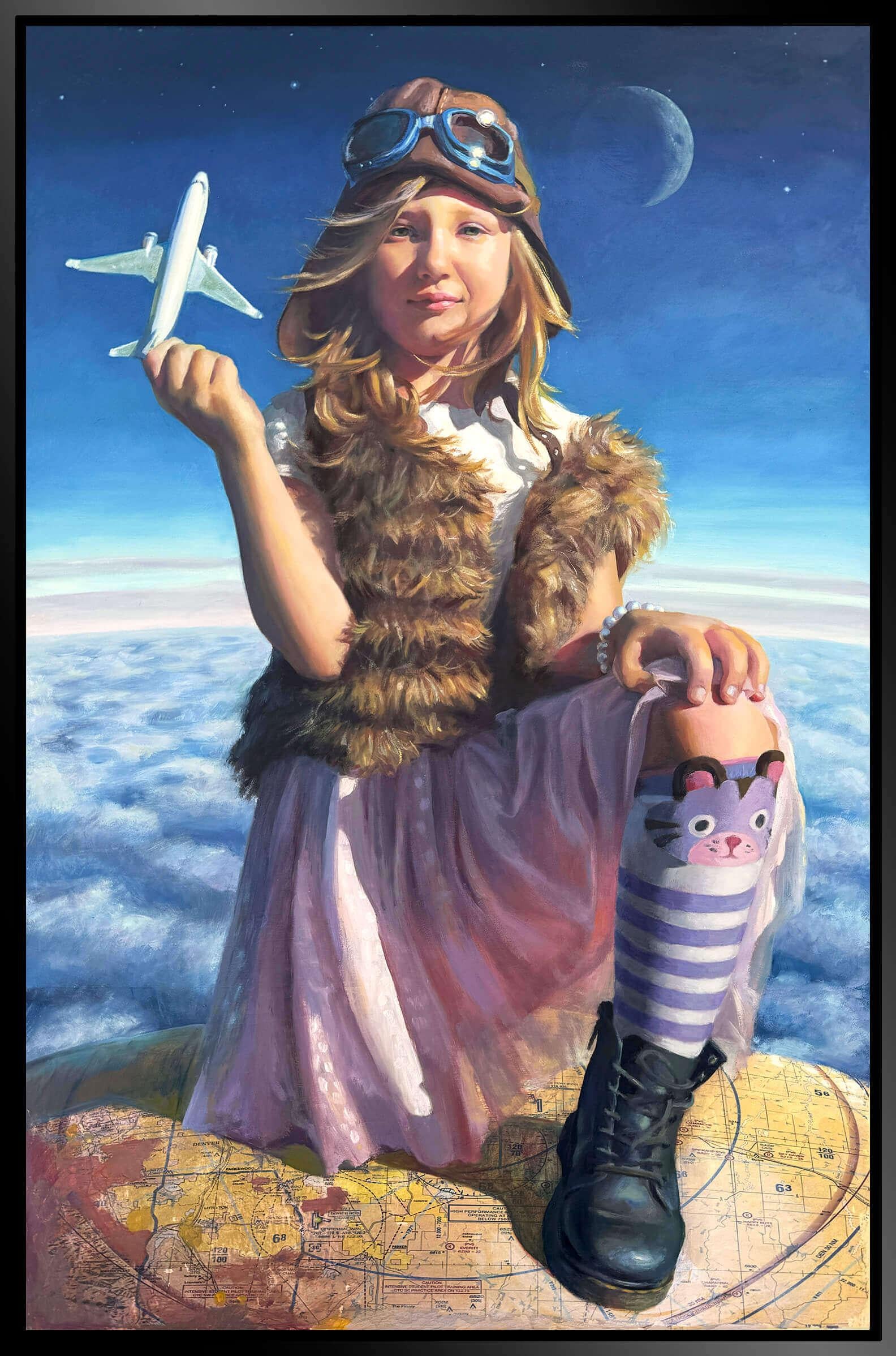 Alle anzeigen"Cruising Altitude" (2025) Originalporträt eines jungen Mädchens, Ölgemälde