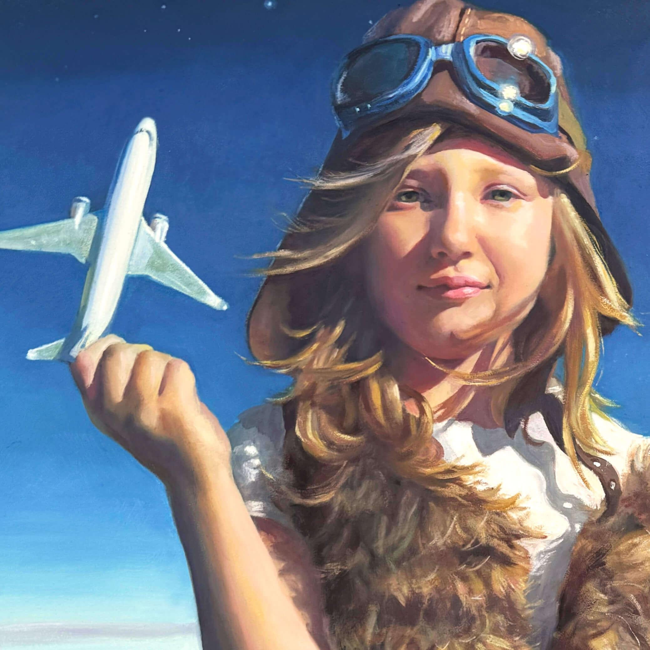 Denise Dambrackas"Zukunft des Fliegens" (2025) Originalporträt eines jungen Mädchens, Ölgemälde2025