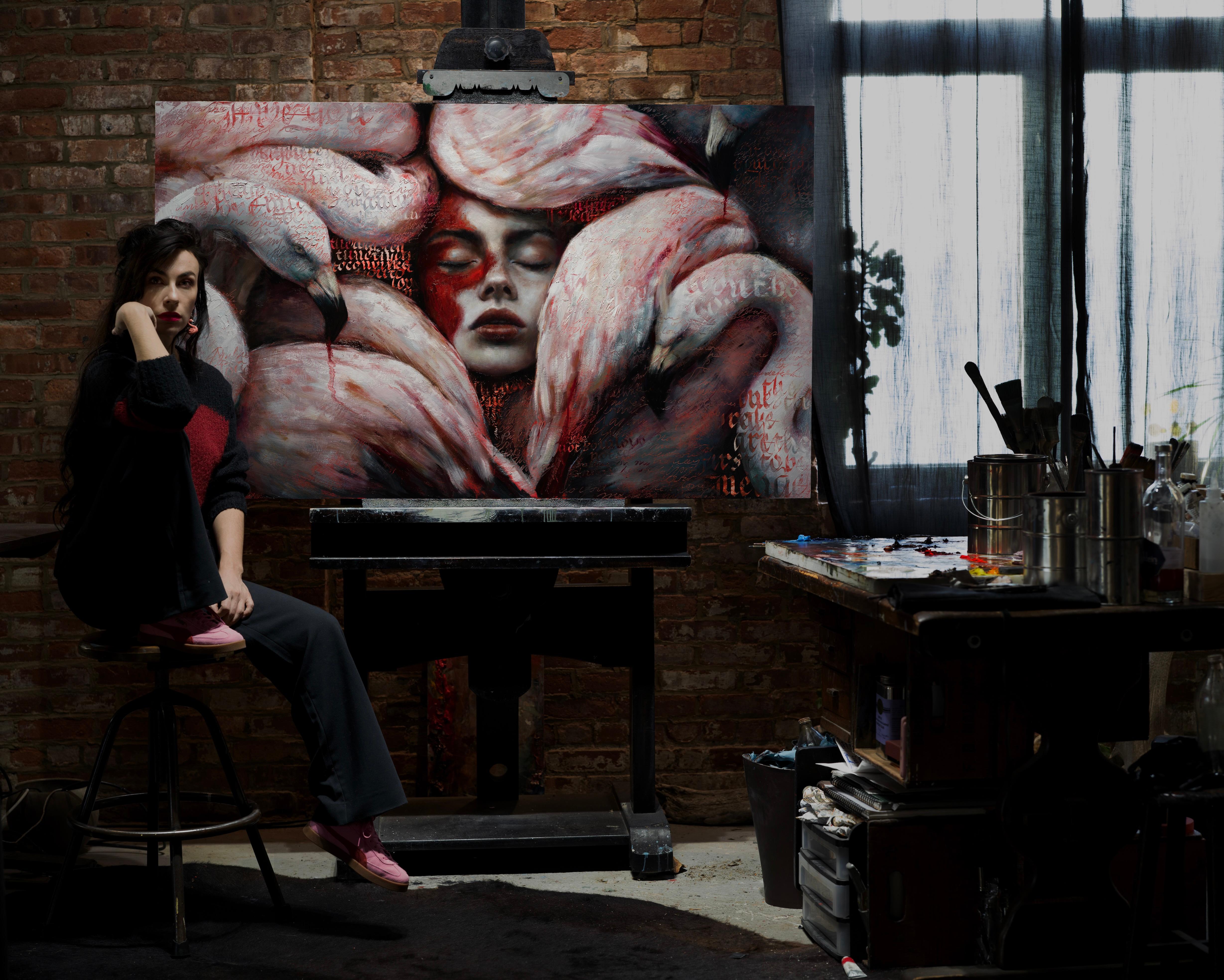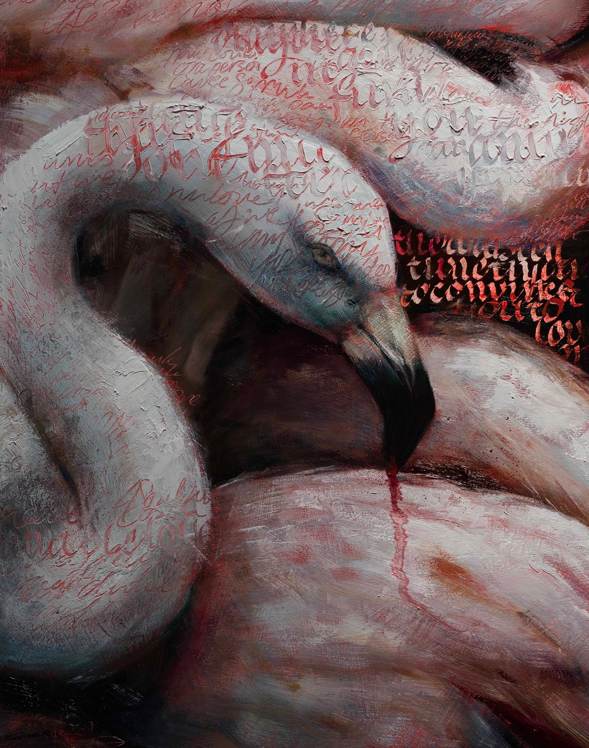 Flamingos sind wilde Geschöpfe. Ich bin nach Aruba gereist, um die Vögel auf dieser kleinen, aber schönen Insel zu besuchen. Dies ist nur der Anfang einer wilden Reise durch die Tunnel des Gehirns eines Mädchens, das sich zu allem, was seltsam ist, hingezogen fühlt. Während ich mit einem rosa und chaotischen Malmarathon beginne, fällt es mir immer noch schwer zu glauben, dass ich tatsächlich Zeit mit diesen Vögeln verbracht habe. Ich konnte in knietiefem Wasser stehen, etwa zehn Zentimeter von ihnen entfernt, während sie mit ihren dünnen und irrsinnig langen Beinen den Boden abtasteten und an versteckten Stellen nach Nahrung suchten. Ihre Augen sind wie Perlen. Sie haaren oft und quaken wie Schwäne. Ich habe sie nie fliegen sehen, aber sie balancieren auf einem Bein und schlafen auf diese Weise ein. Wenn du Glück hast, nehmen sie dir Futter aus der Hand. Sie sind unnahbar, aber sanft. Sie bewegen sich langsam und scheinen sich von der Umgebung der Menschen, die Cocktails trinken und sich eincremen, nicht beeindrucken zu lassen. Sie sind so sehr rosa und seltsam bezaubernd. Ich war der Besucher und sie waren die Gastgeber, und es war eine große Freude, ihr Leben mitzuerleben.