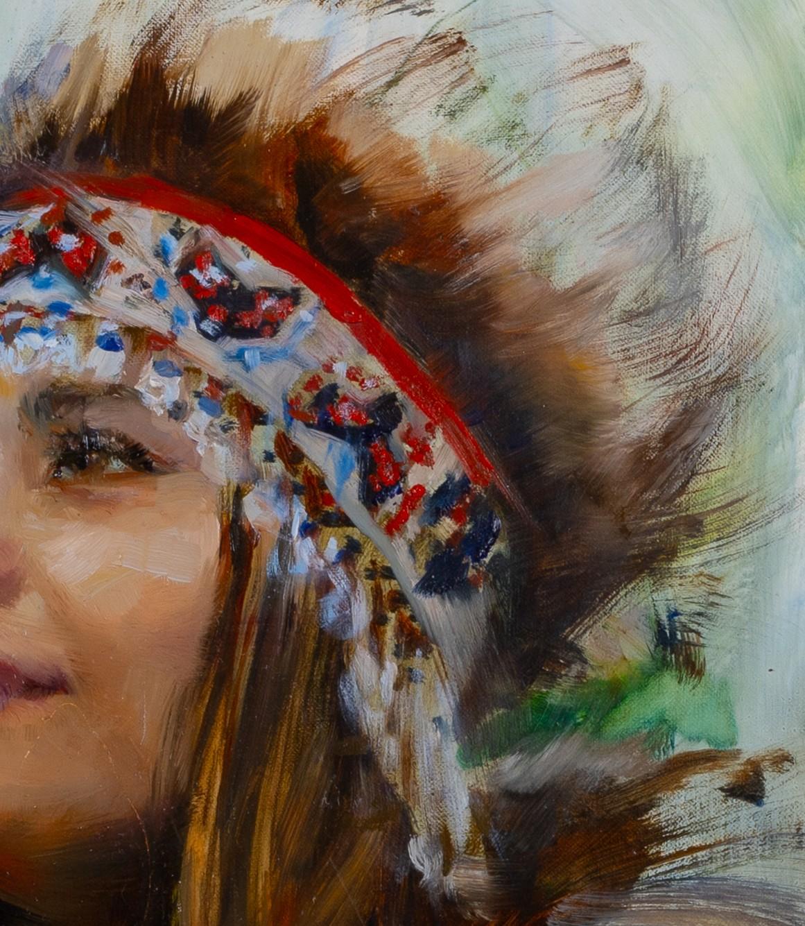 ik-Mädchen mit traditionellem Kopfschmuck" Original Ölporträtgemälde2025