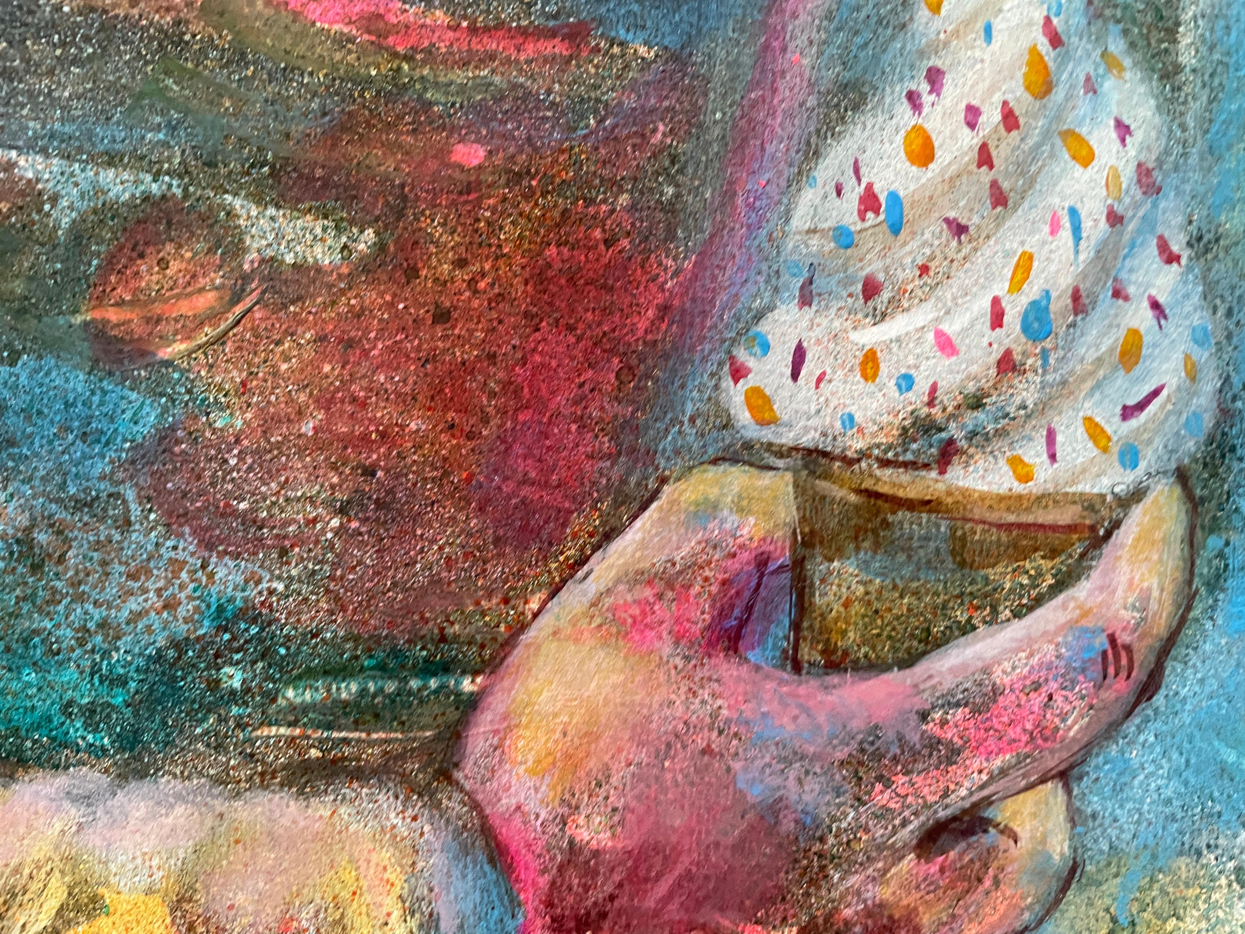 Bei der Erschaffung dieses Werks habe ich mein Herz daran gehängt, die Essenz der Unschuld und des Staunens einzufangen. Mit Acryl, Spray und Tinte habe ich mich der bildenden Kunst ...