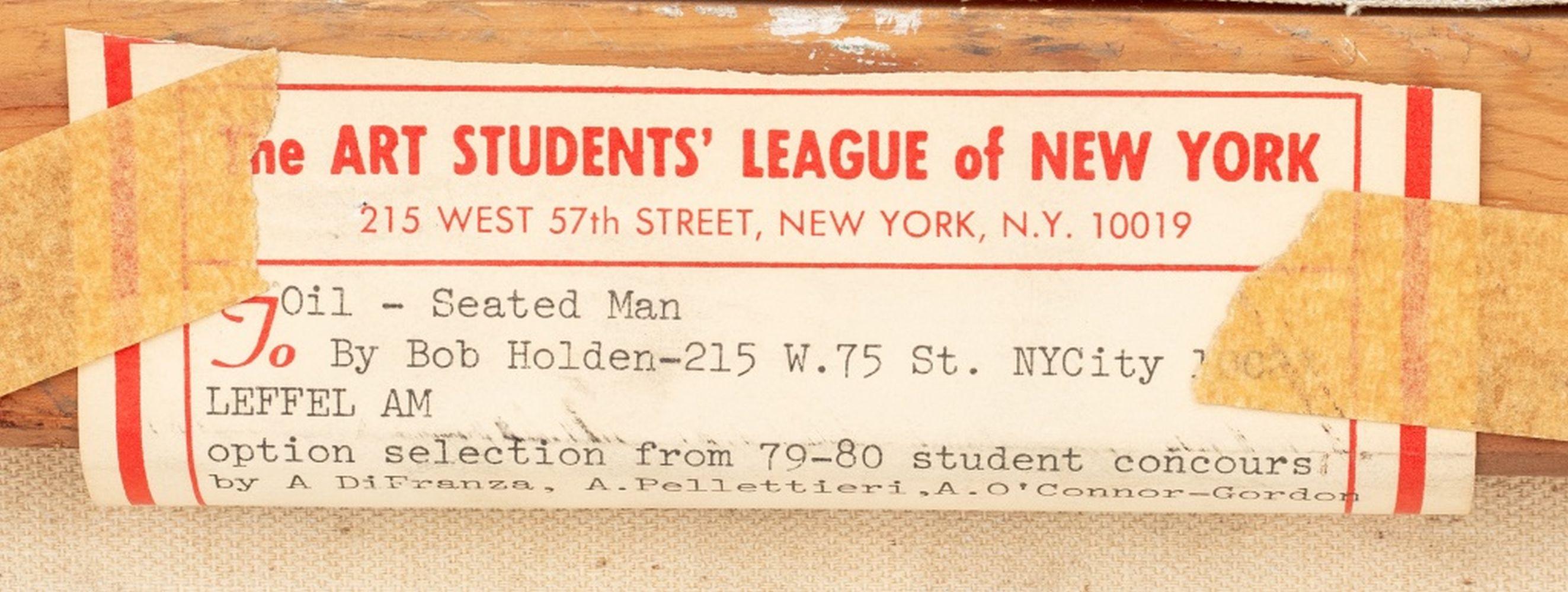 Robert Holden (Amerikaner, XX), "Sitzender Mann", Öl auf Leinwand, 1979-80, signiert und Label der Art Students League verso, ungerahmt.