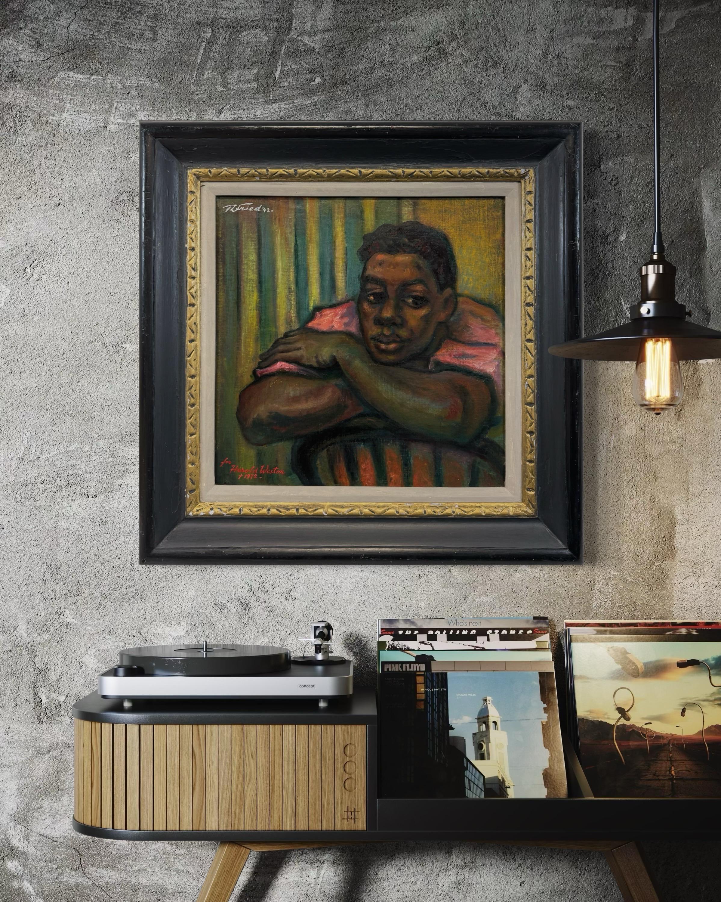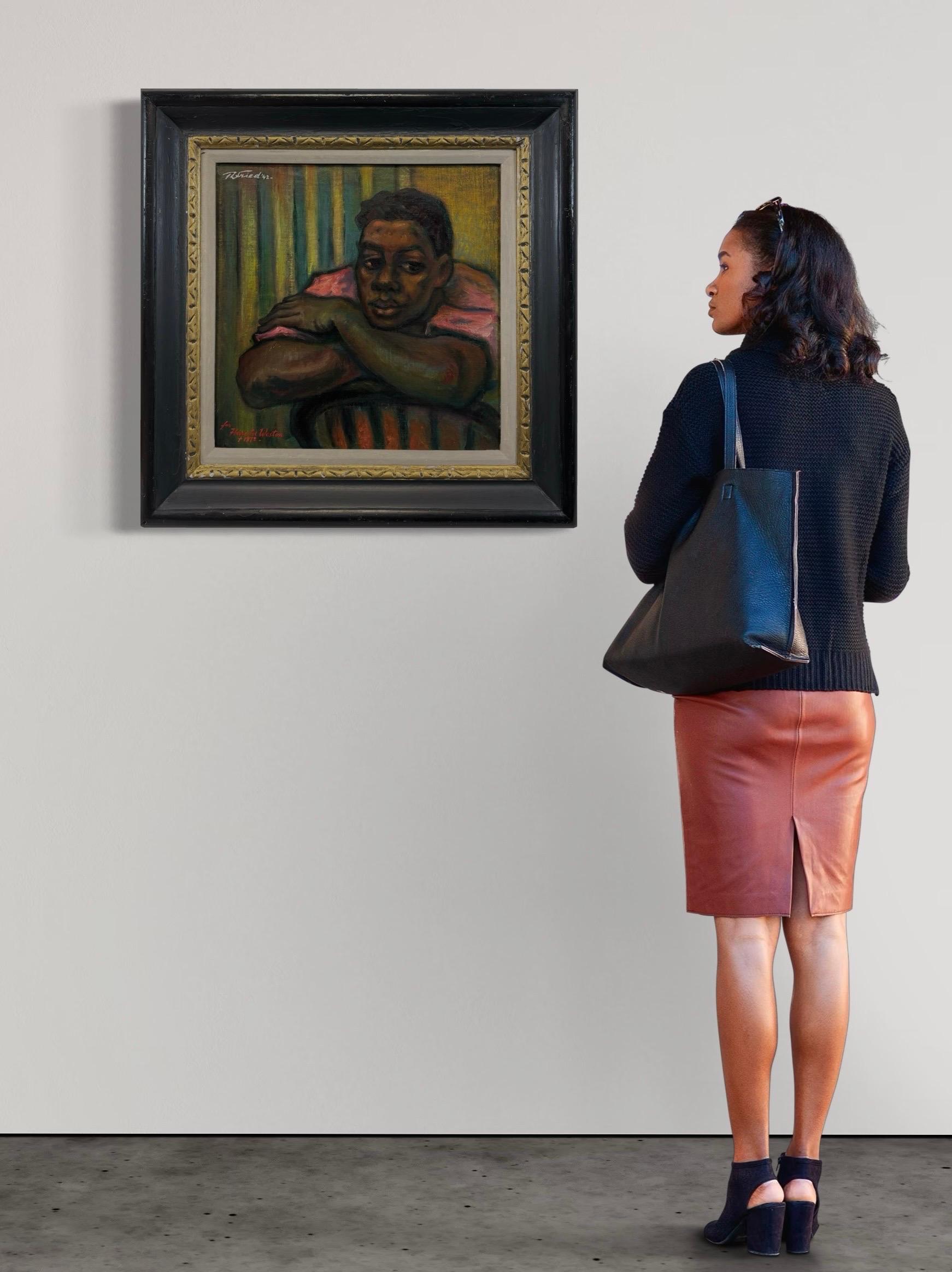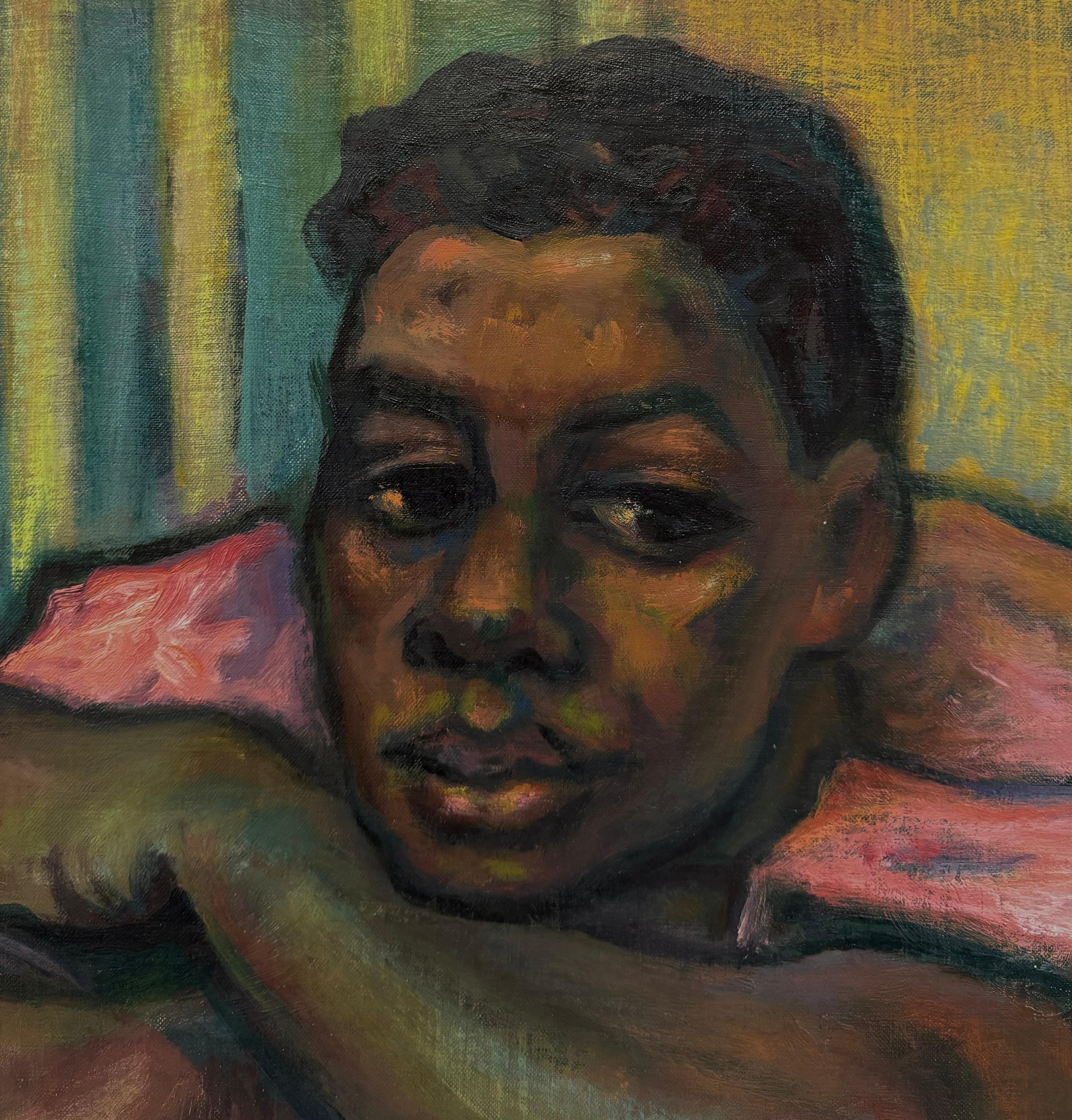 Das fesselnde Porträt eines jungen Schwarzen aus der Jahrhundertmitte der 1950er Jahre stammt von dem berühmten Chicagoer Künstler Francis Chapin (Am. 1899-1965). Ein sensibles, gek...