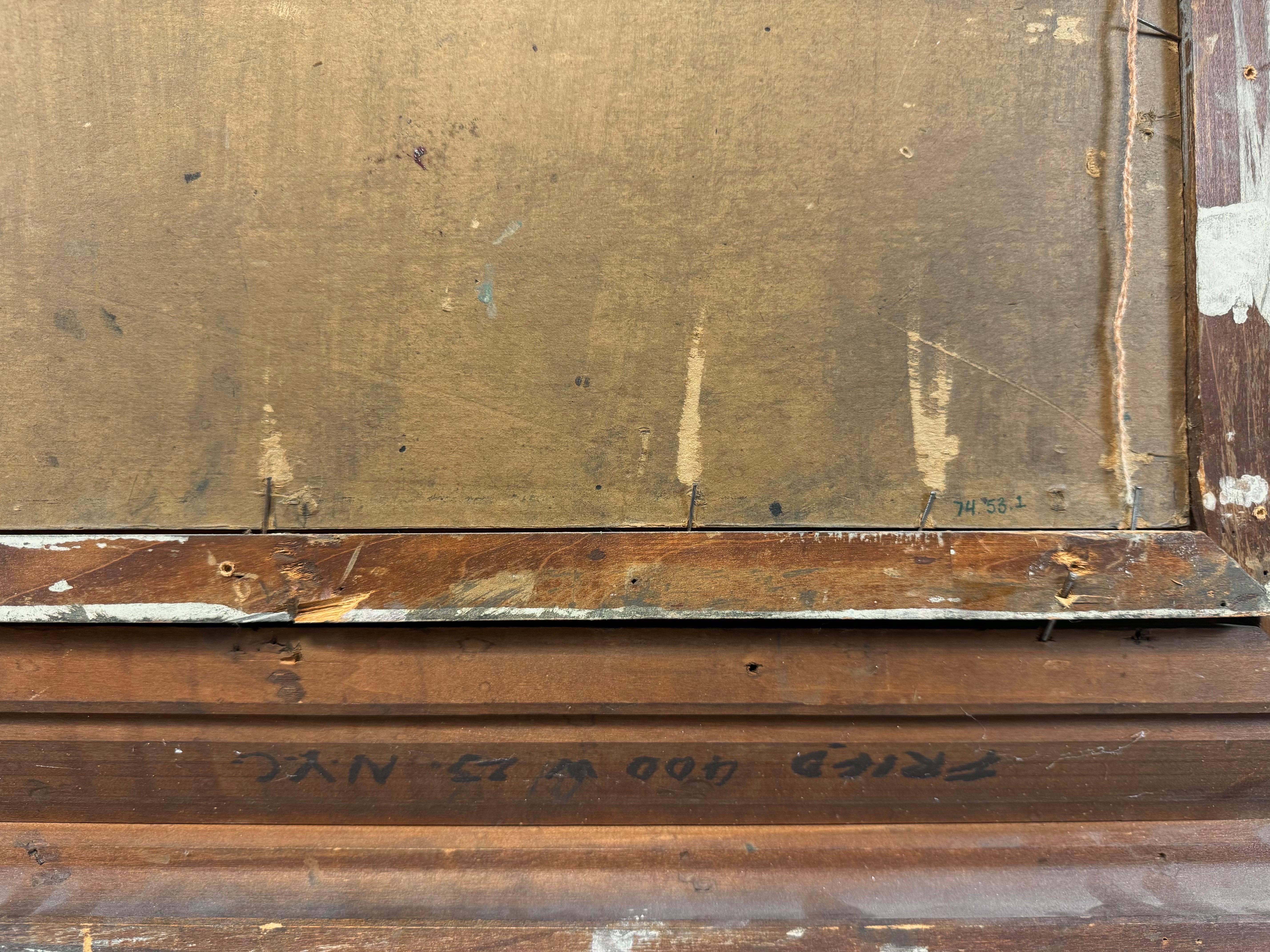 Das Werk ist in Öl auf Leinwand auf Karton aufgezogen und ist oben links signiert und datiert. Es ist in einem angemessenen, wahrscheinlich originalen Rahmen untergebracht. Auf der Rückseite befinden sich verschiedene Inschriften und Labels, die sich auf den Titel des Gemäldes, das Studio des Künstlers und den früheren Museumsbesitz beziehen.