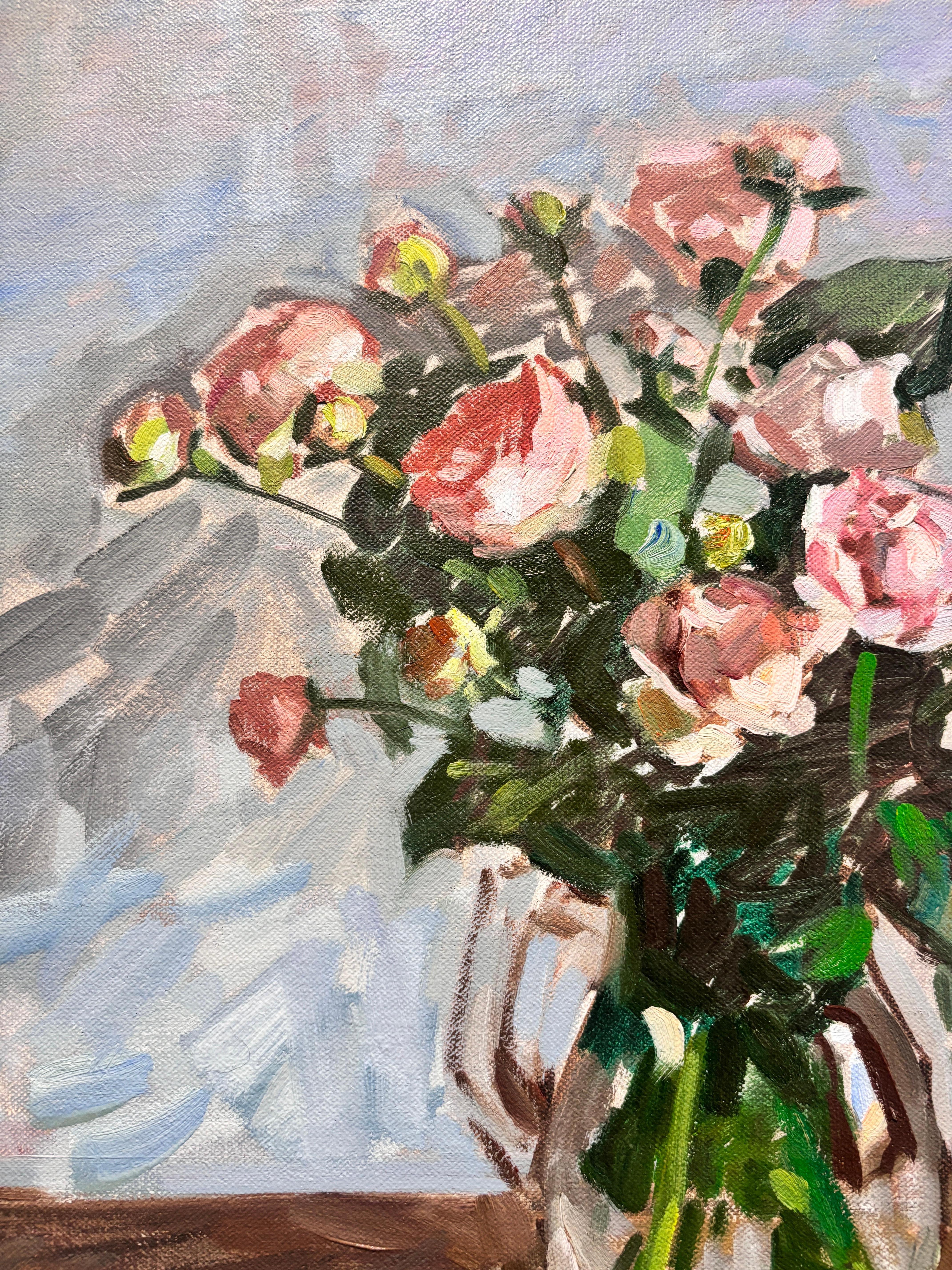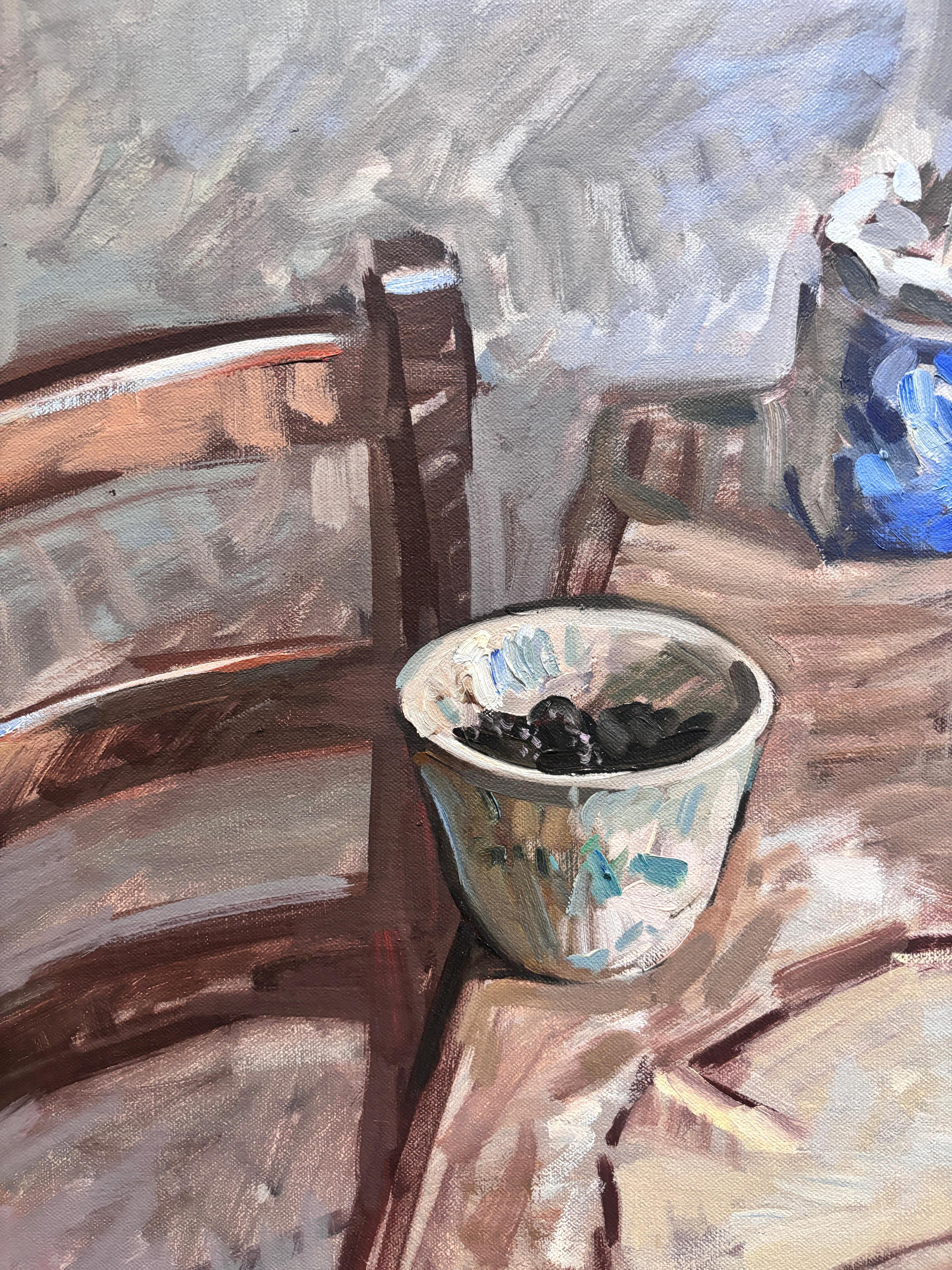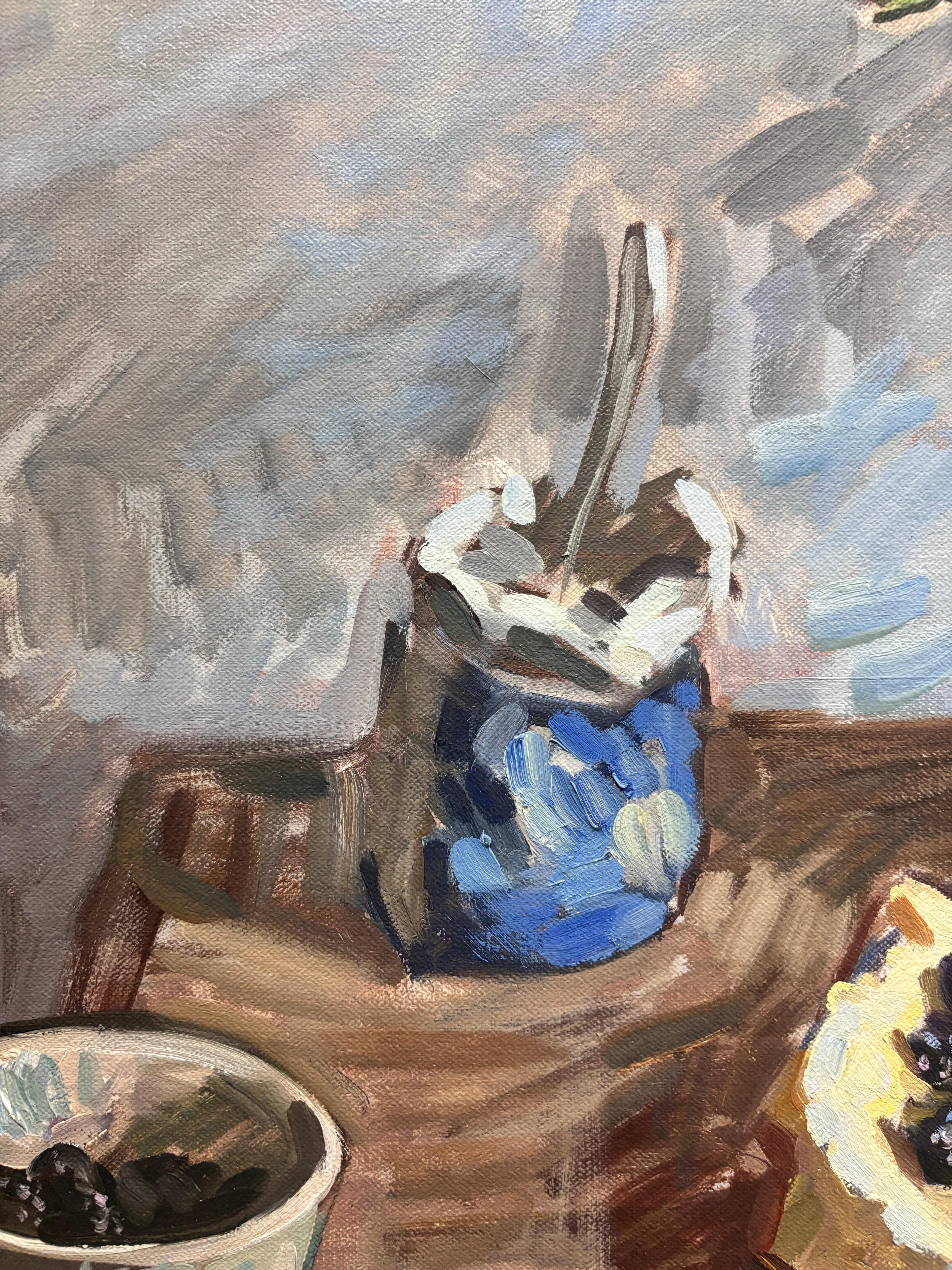 Ein klassisches Stillleben von Amy Florence mit breiten impressionistischen Strichen, die einen einladenden Raum schaffen, der Lust macht, in ihre Welt einzutreten.