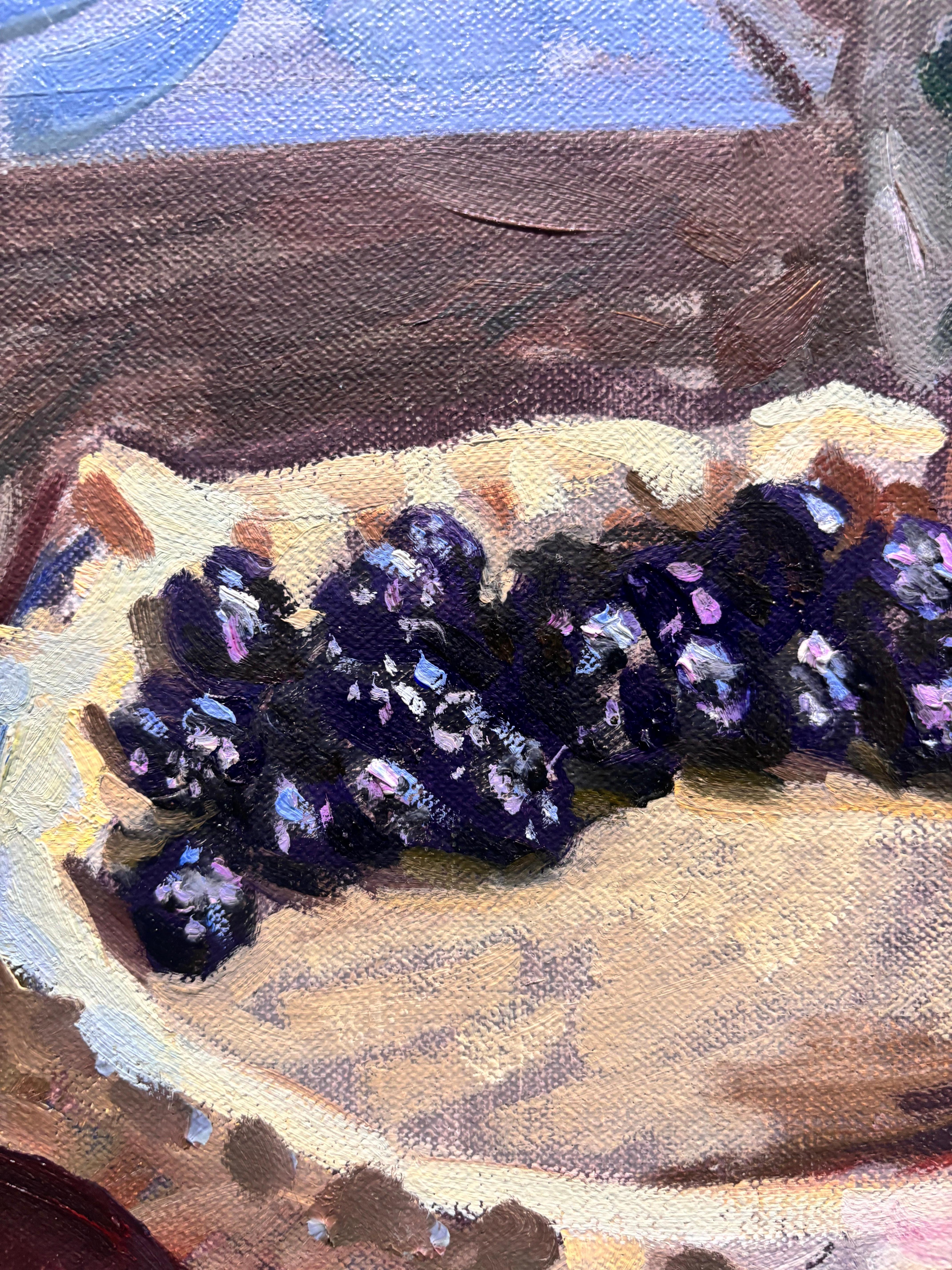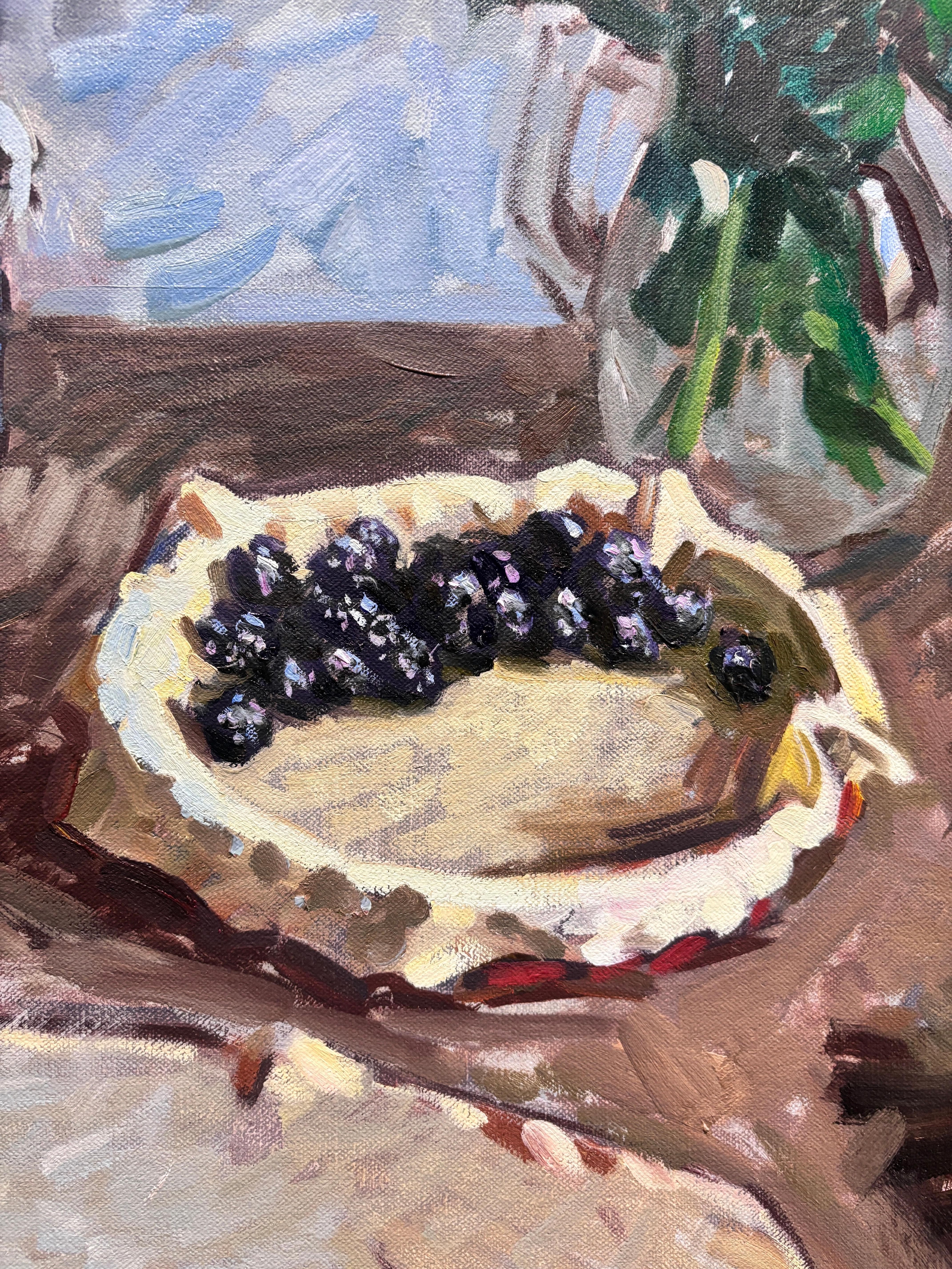"Rosen, Hortensien und Pflaumen" ist ein farbenfrohes impressionistisches Stillleben, gemalt in Florenz, Italien, wo der Künstler lebt und arbeitet. Blumen füllen die Komposition in ...