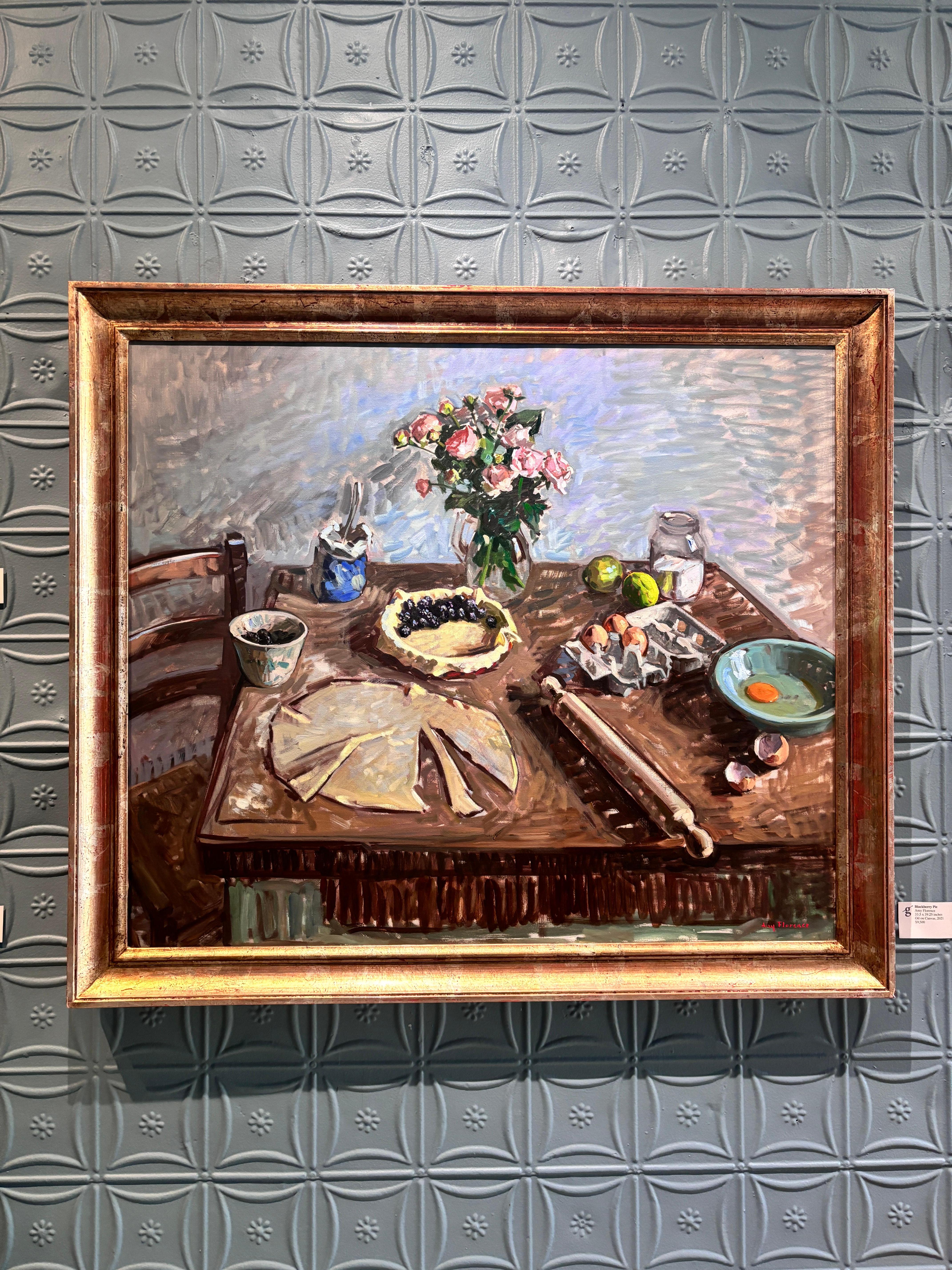 Amy Florence"Brombeerkuchen" Ölgemälde, Küchenstillleben, selbstgebackener Kuchen, gerahmt2021