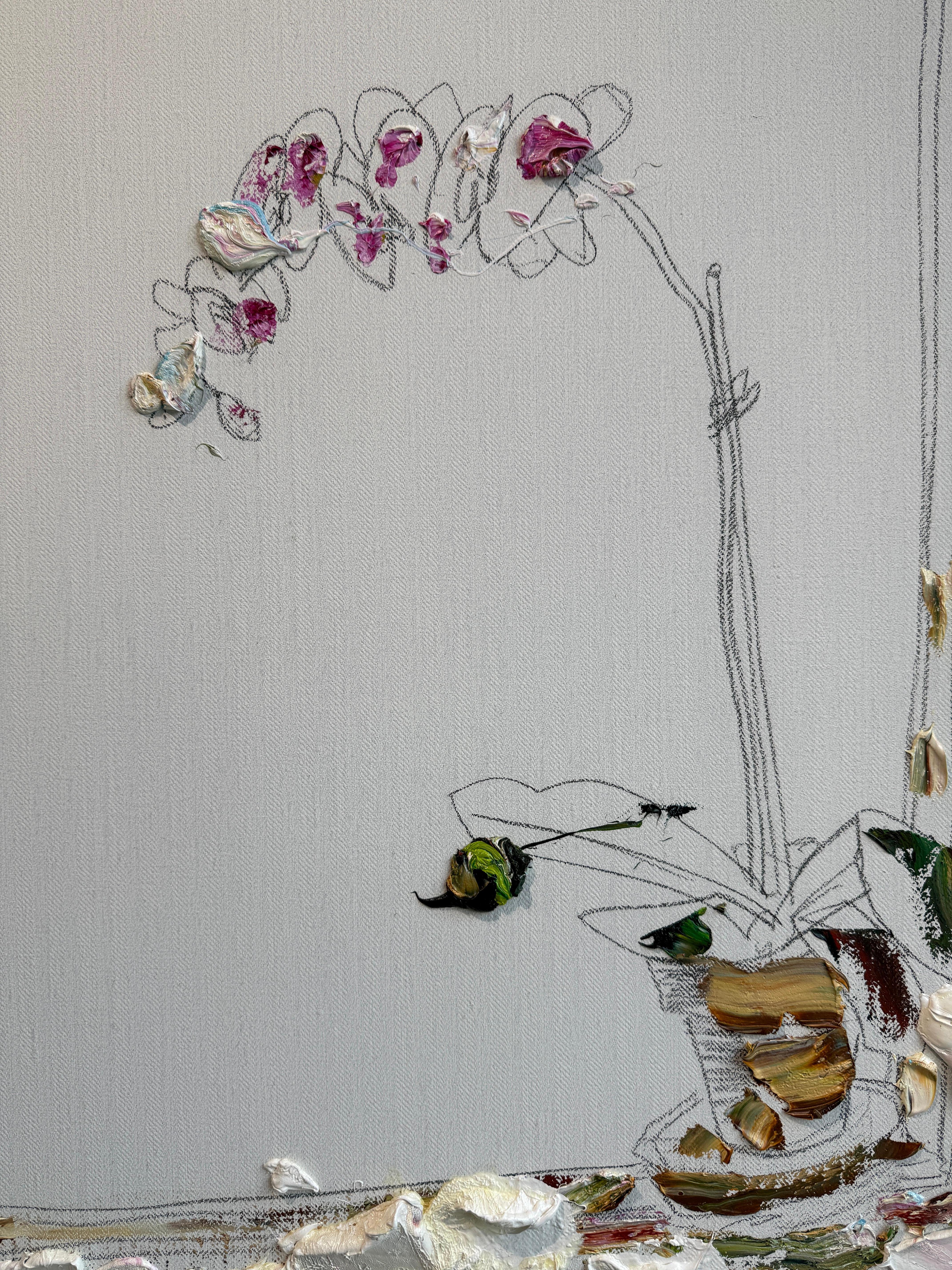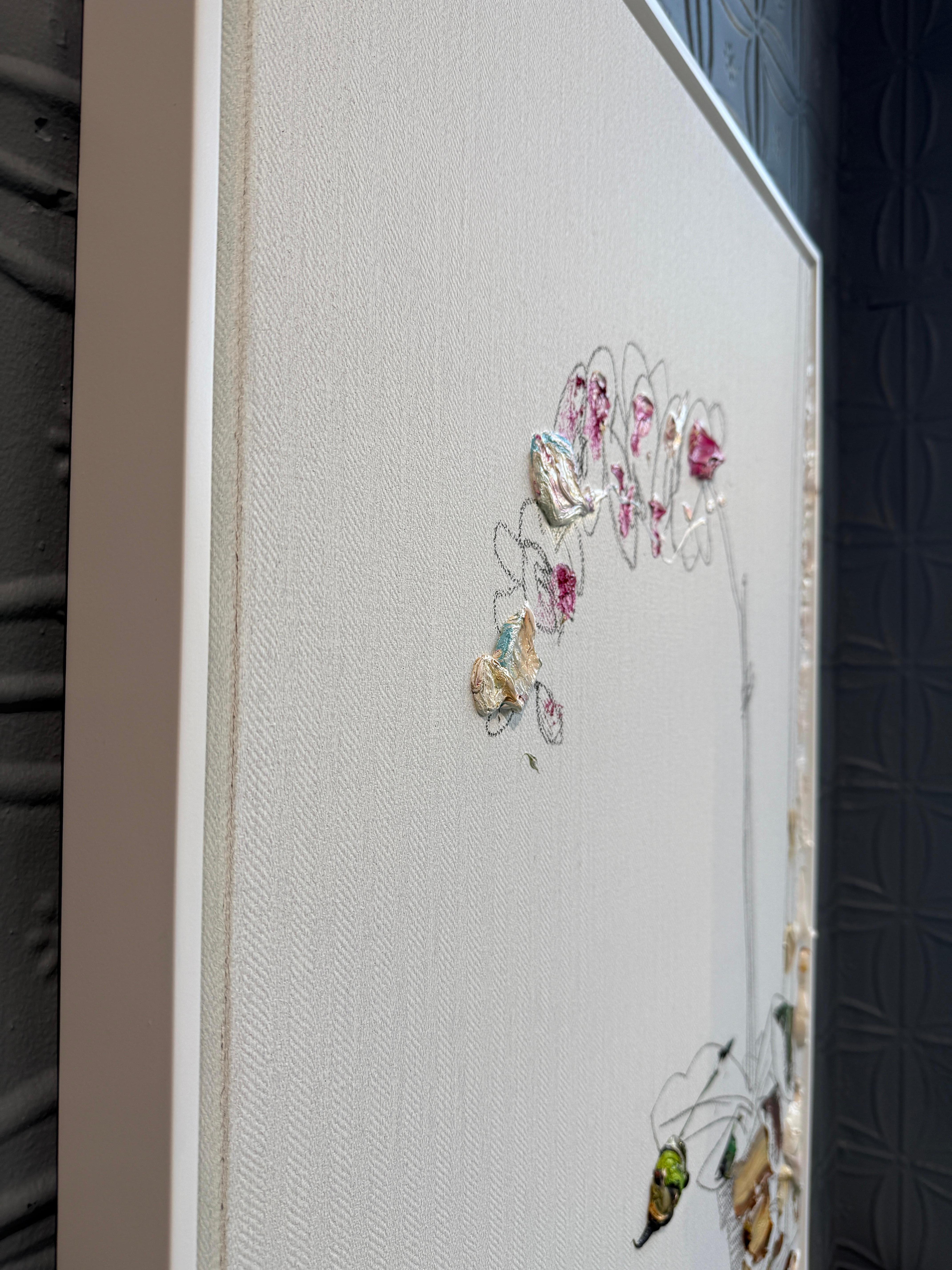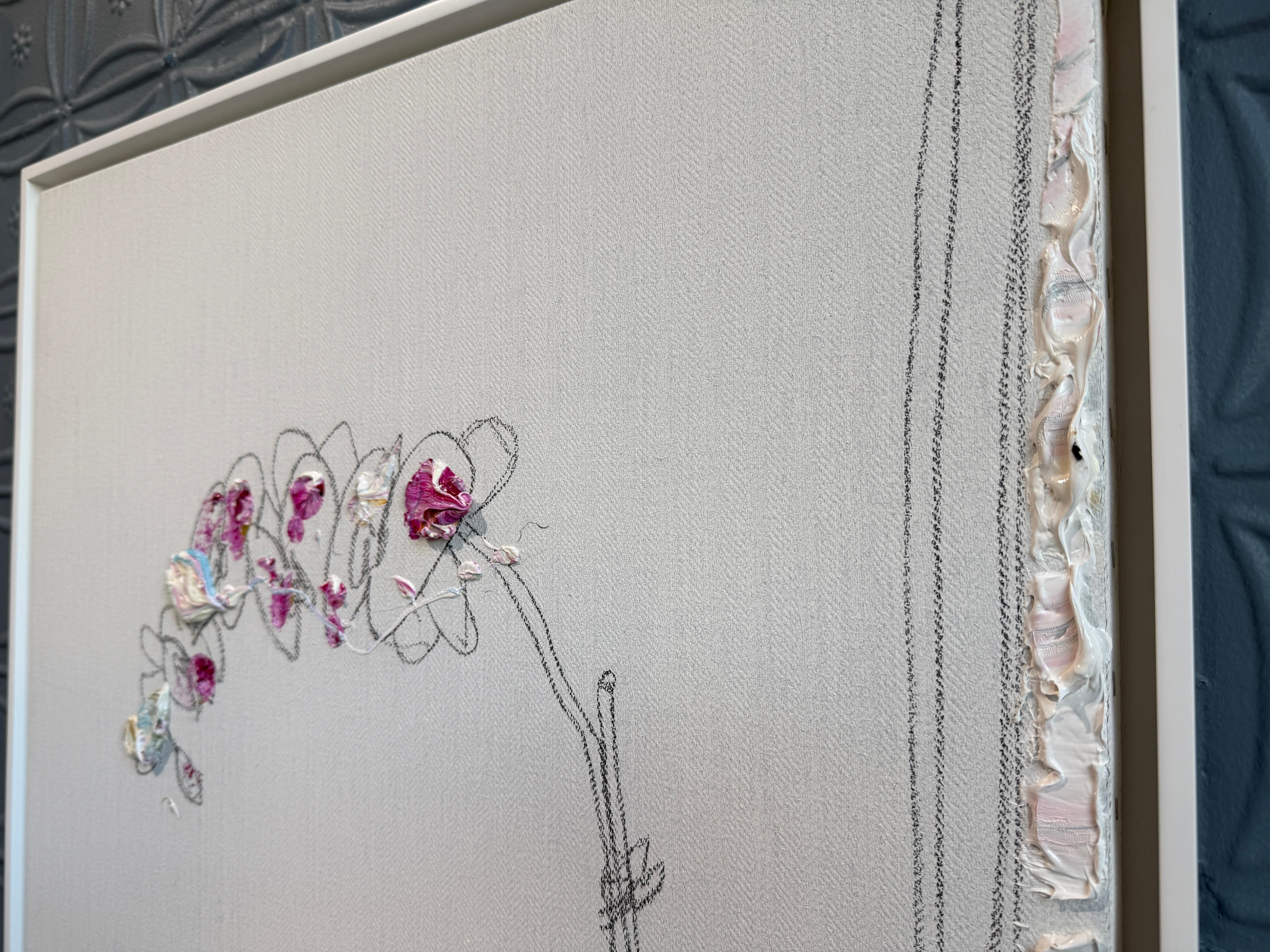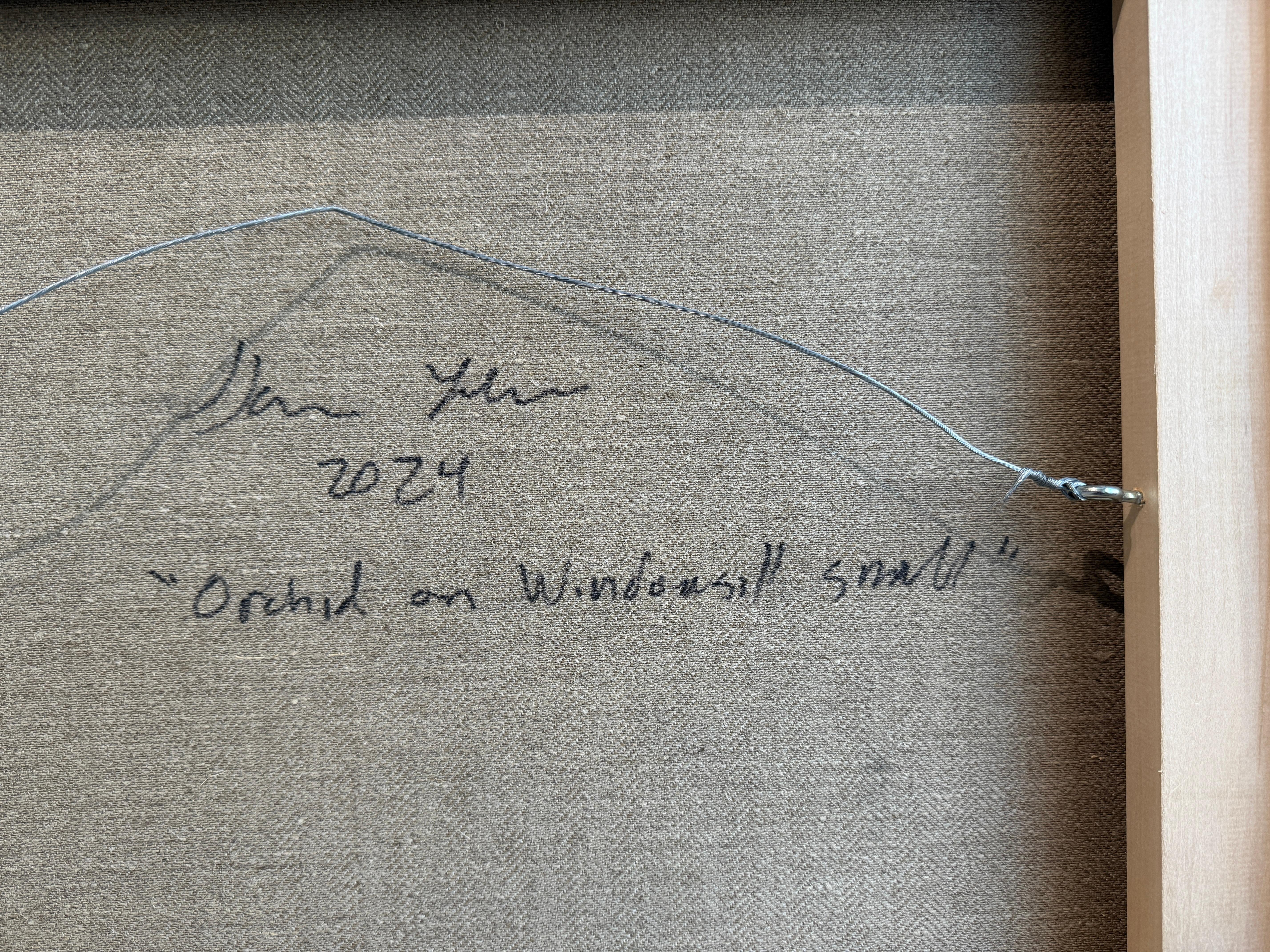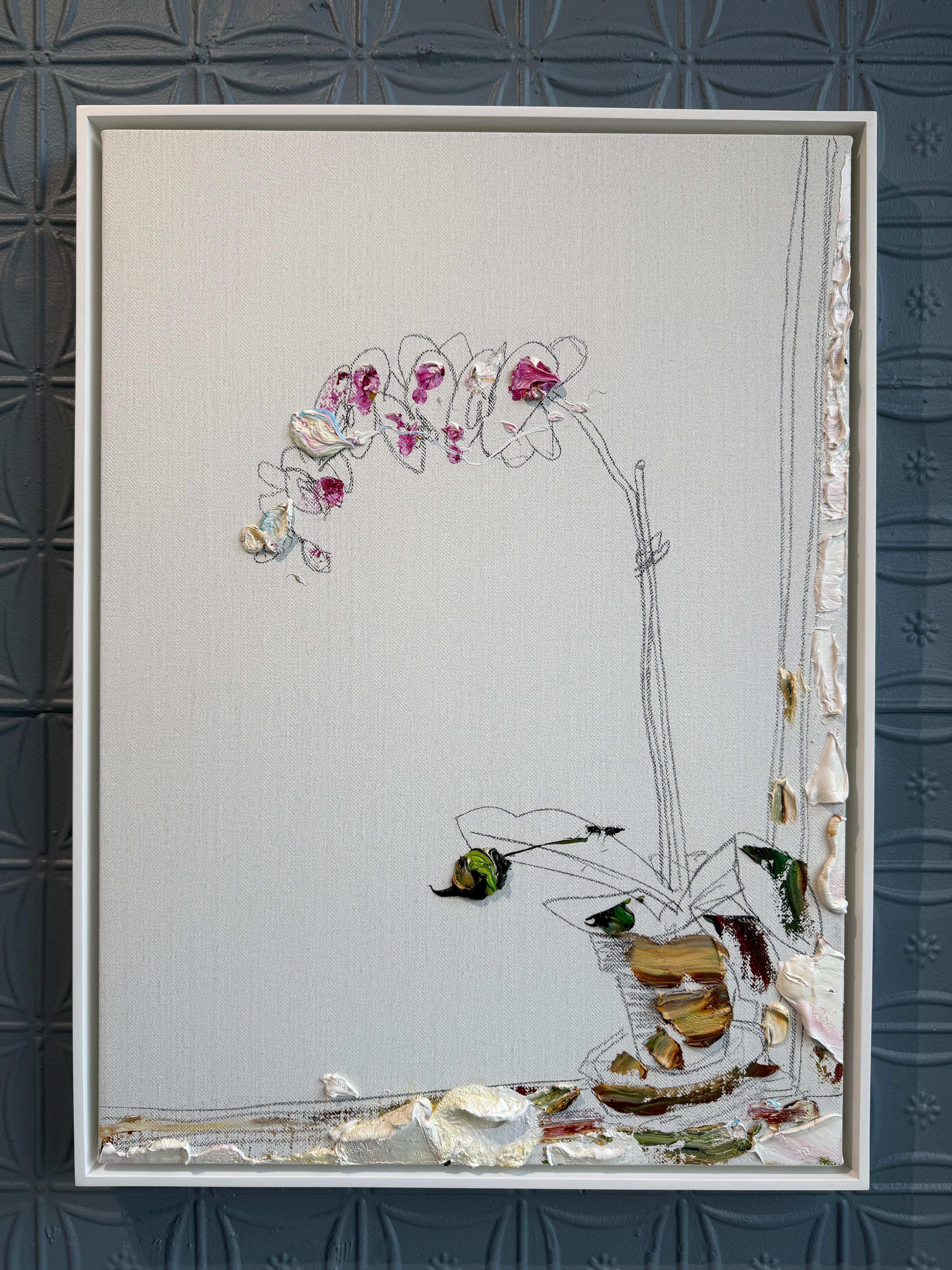 Darius Yektai"Orchidee am Rande des Fensters" Blumenstillleben, minimalistisch, weißes Ölgemälde2025