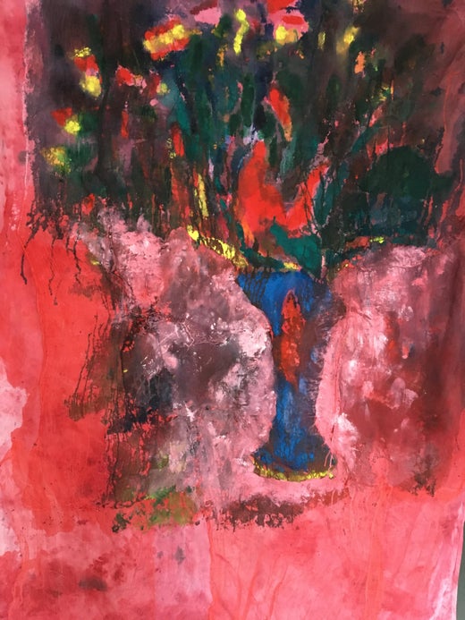 ausgehend von einer Zeichnung "echter" Blumen schichte ich dünn verhüllte Oberflächen. Sie werden durch den Prozess des mehrfachen Druckens abstrahiert. Das Wesen der Blumen wird zum Thema - sie erinnern an alle Blumen, die ich je gesehen habe, und an alle, die ich in großen Kunstwerken gesehen habe. Sie sind eine Reflexion, eine Art magischer Spiegel, der die traditionellen Blumenbilder herausfordert