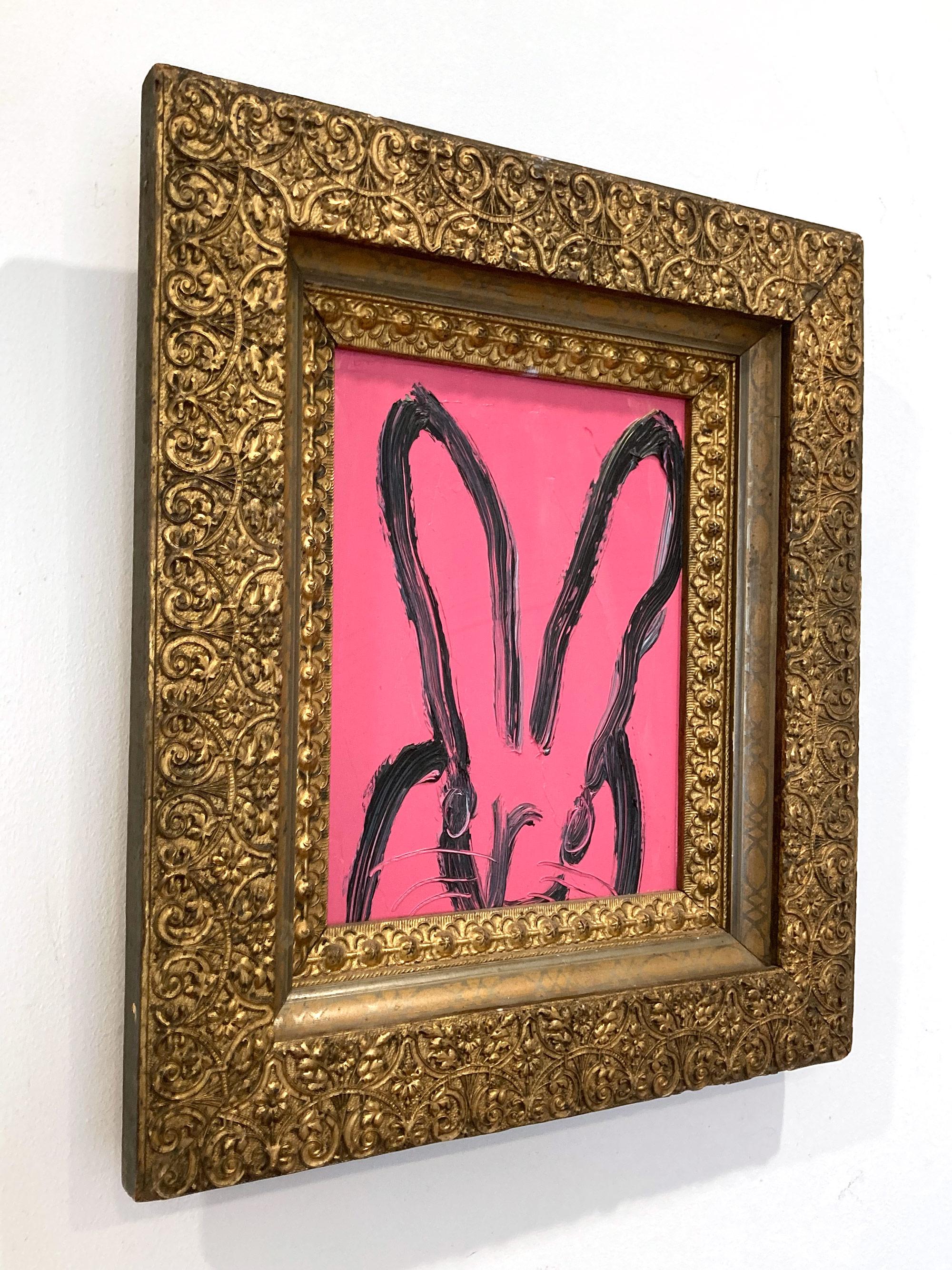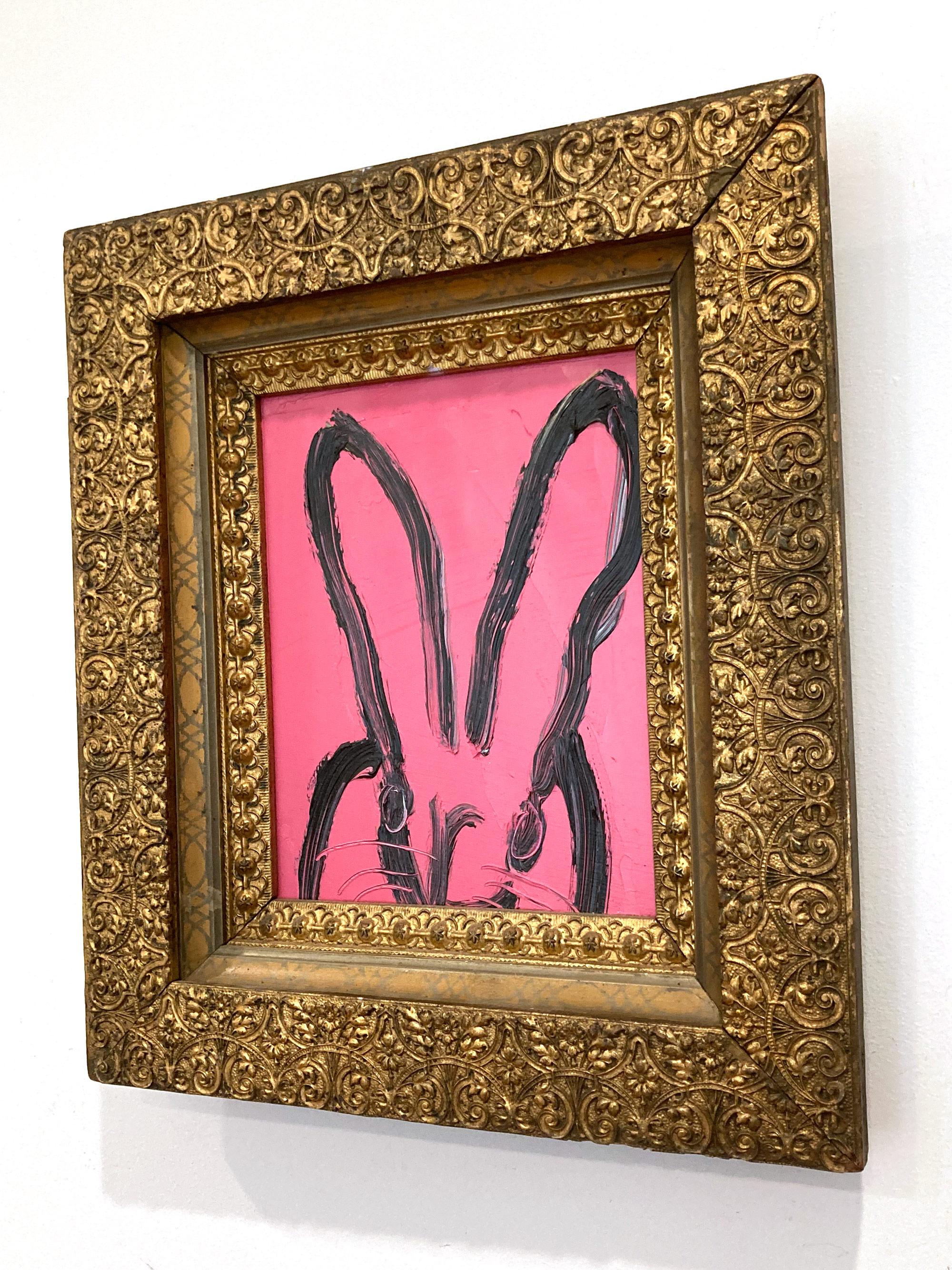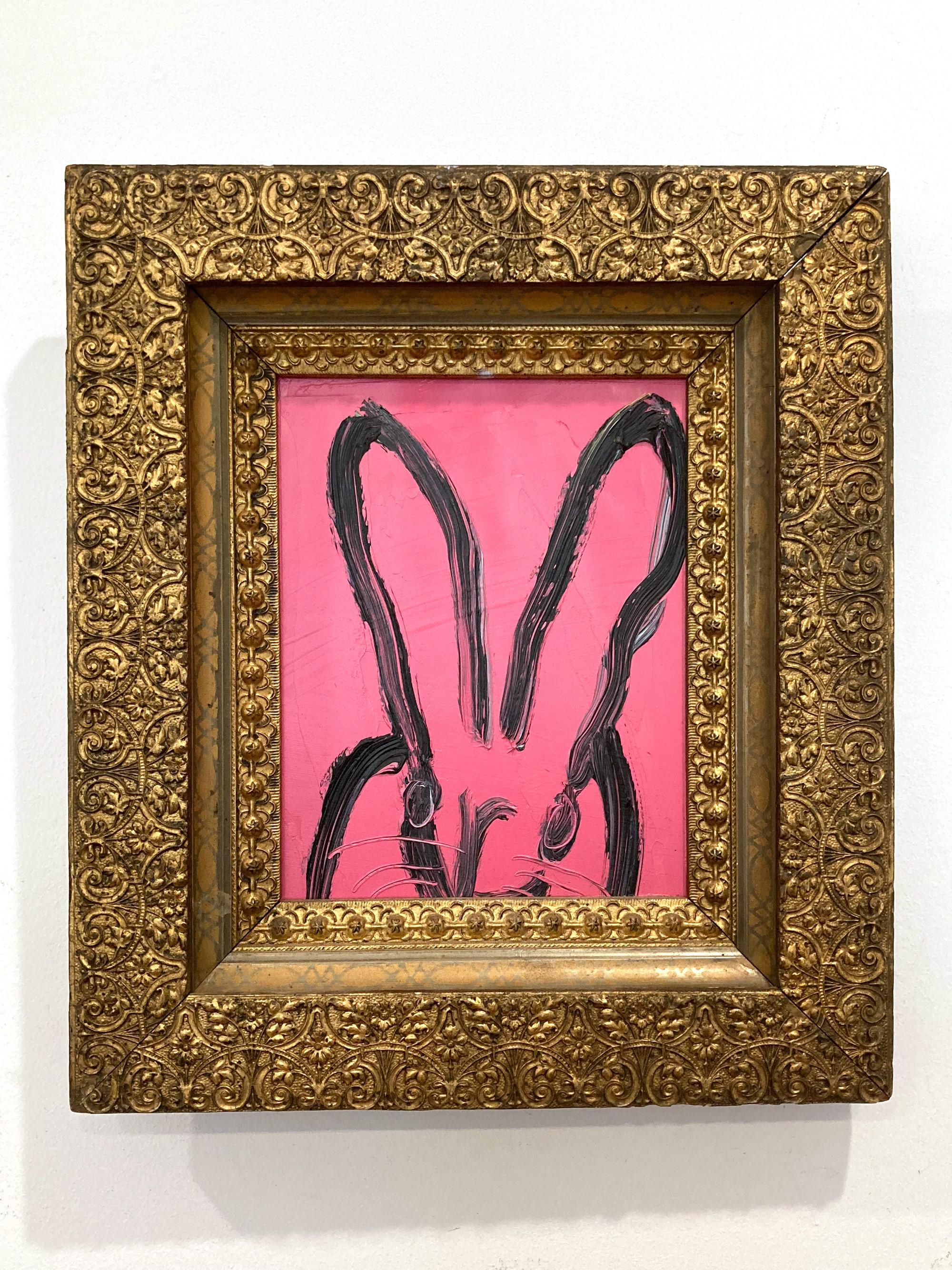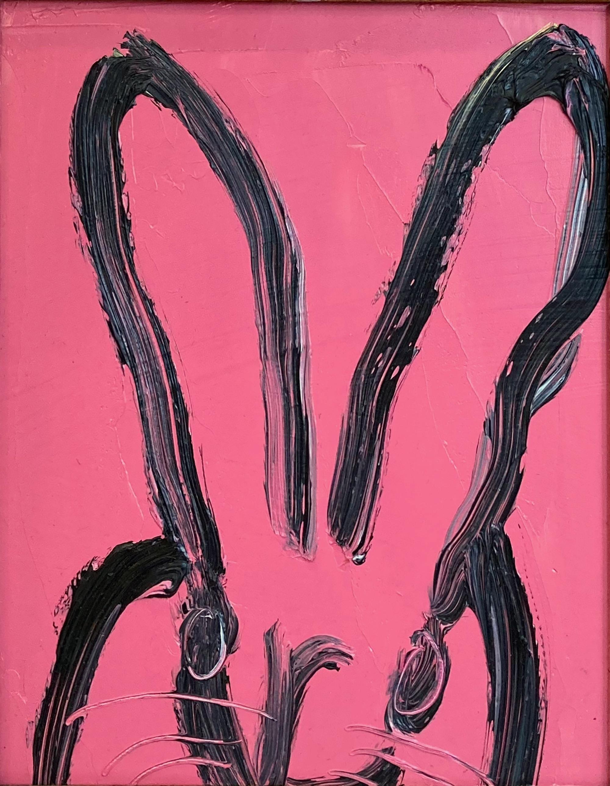 Hunt Slonem"21" Schwarzer Umriss Hase auf Wild Orchid Pink Hintergrund Ölgemälde Gerahmt2022