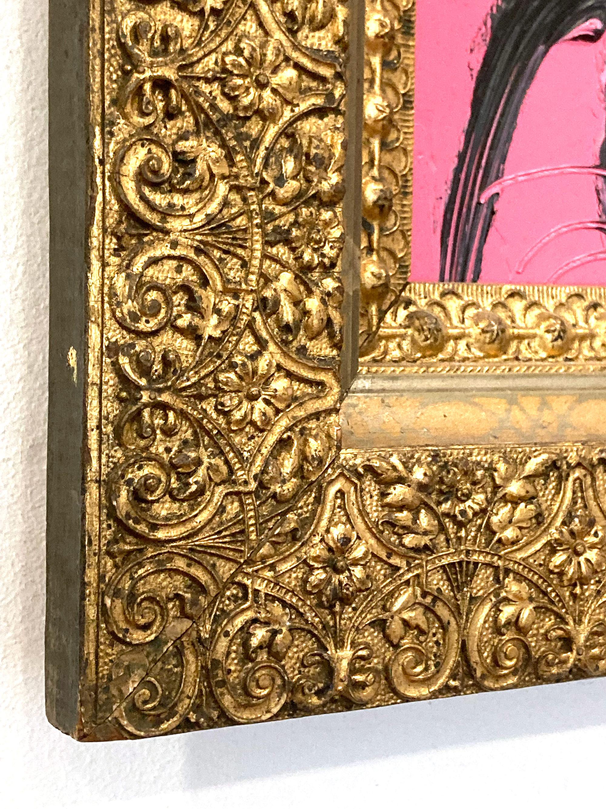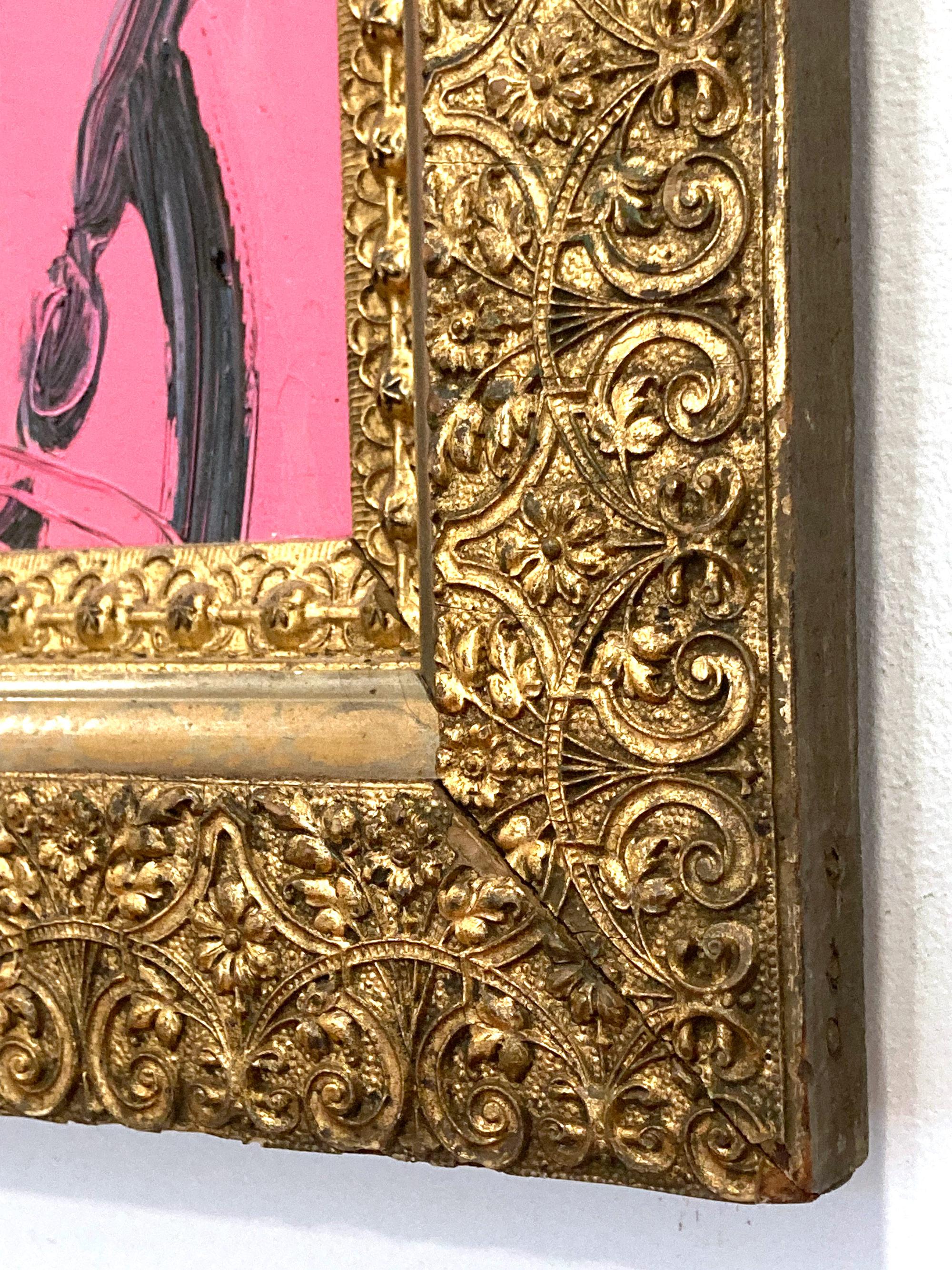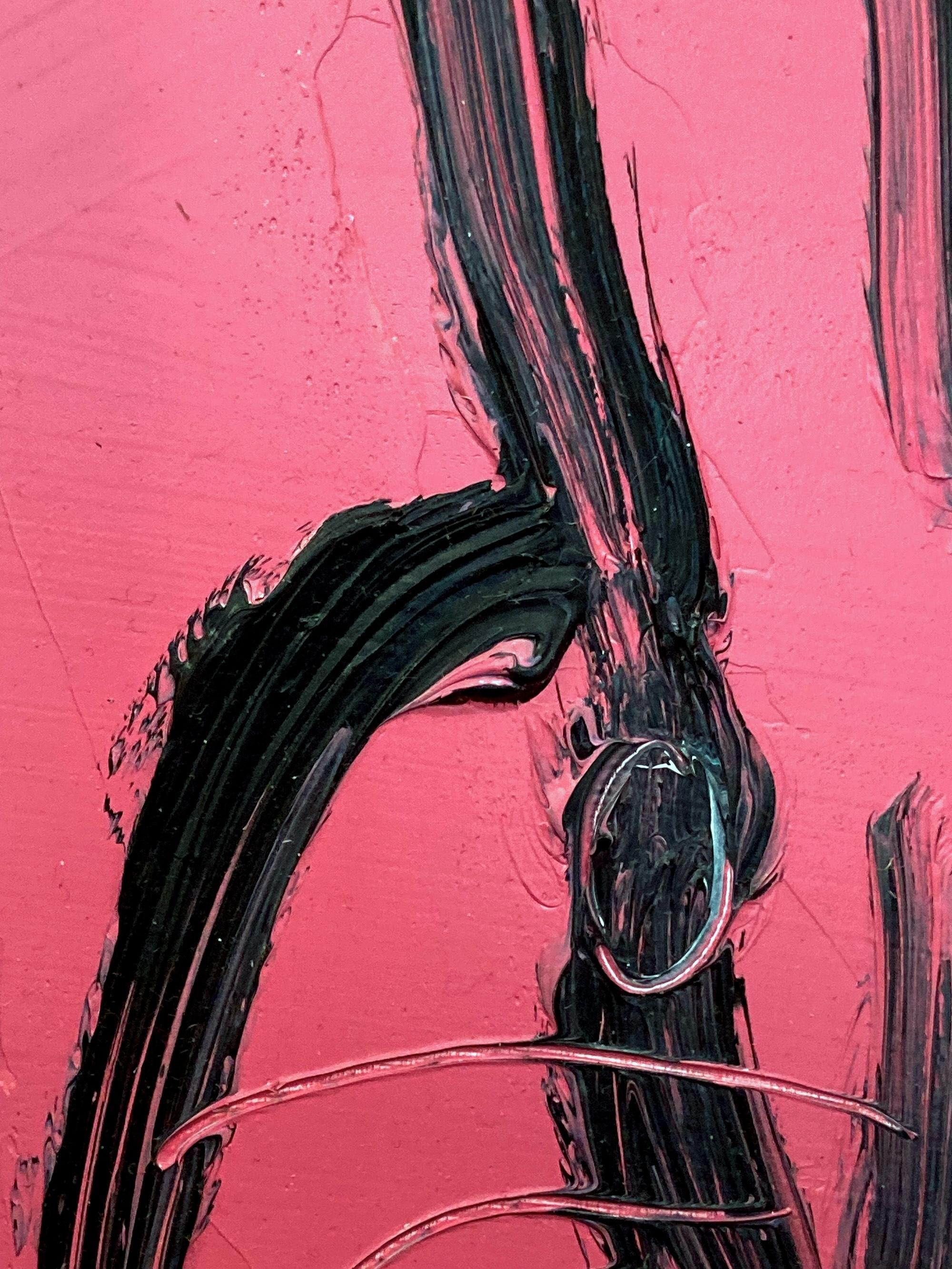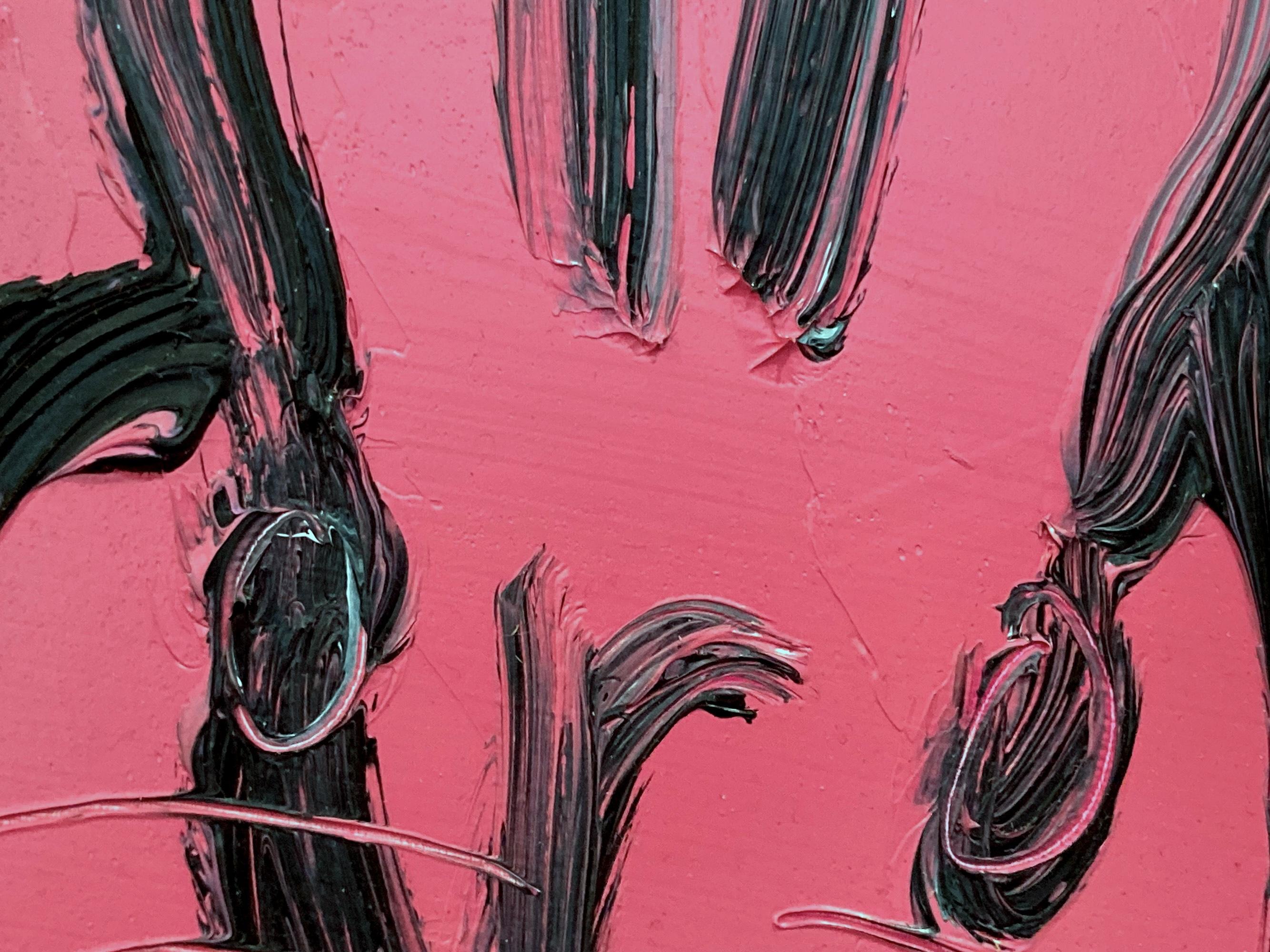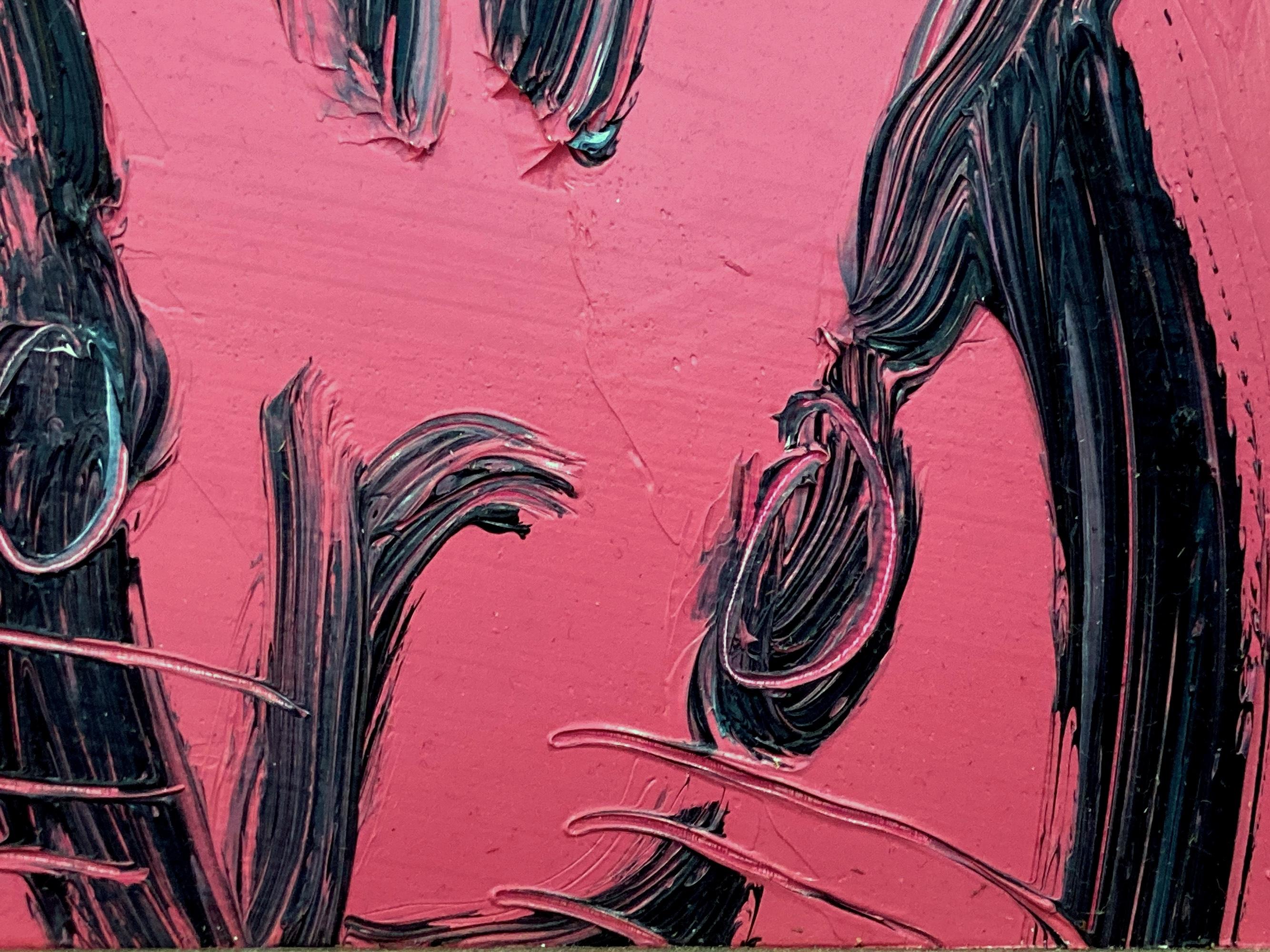 Hunt Slonem"21" Schwarzer Umriss Hase auf Wild Orchid Pink Hintergrund Ölgemälde Gerahmt2022