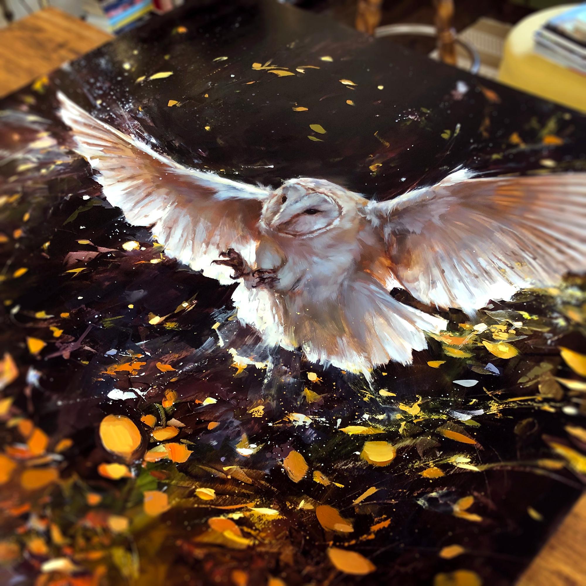 „Break From Flight“, Ölgemälde mit einem Vogel