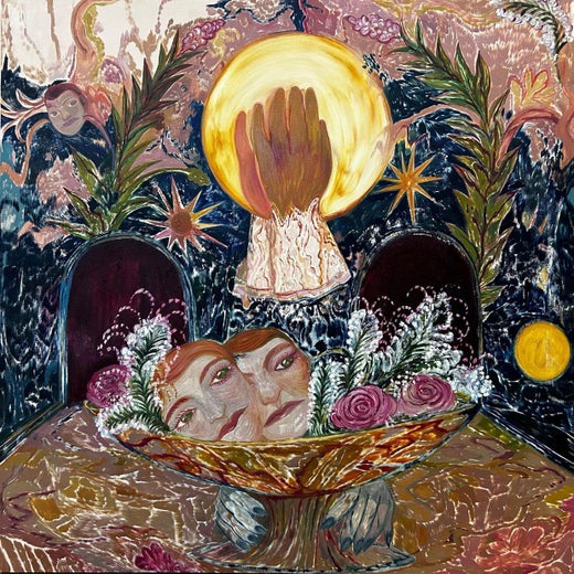 In ihren Kompositionen verflechten sich die Natur und das Weibliche als ein einziger Organismus - eine lebendige Kraft, die sich gegen patriarchalische und ökologische Störungen wehrt, heilt und regeneriert. Khizanishvili erforscht auch transhumanistische Vorstellungen vom ewigen Leben und stellt sich Wesen vor, die die Grenzen von Fleisch und Zeit überschreiten. Ihre Gemälde stellen sich eine Zukunft vor, in der sich das Organische, das Technische und das Spirituelle in einem Kontinuum auflösen - eine