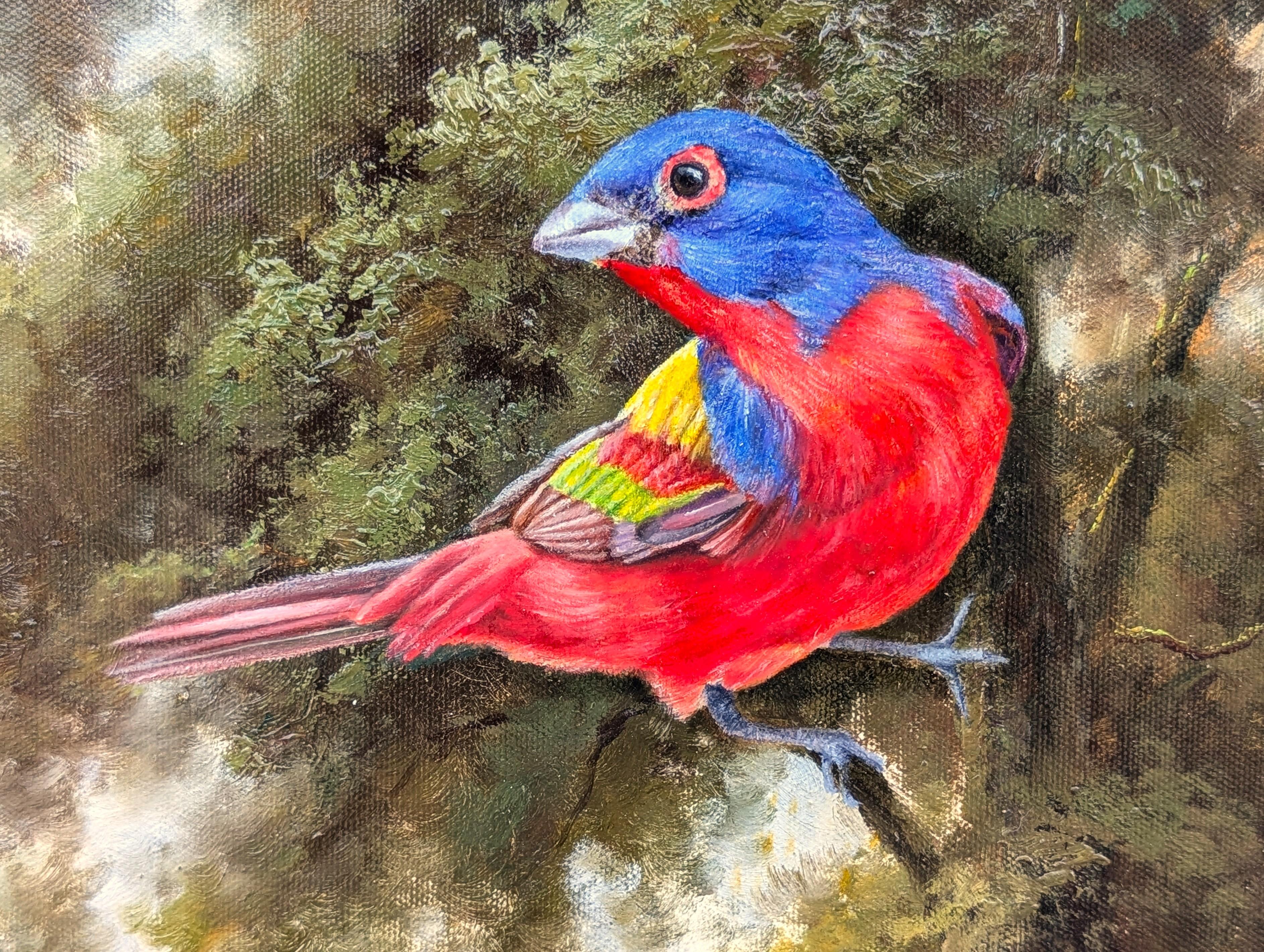 Wood Fancher Anthony"Gemalte Sprossen" Zeitgenössische hyperrealistische Vogel-Landschaftsmalerei2025