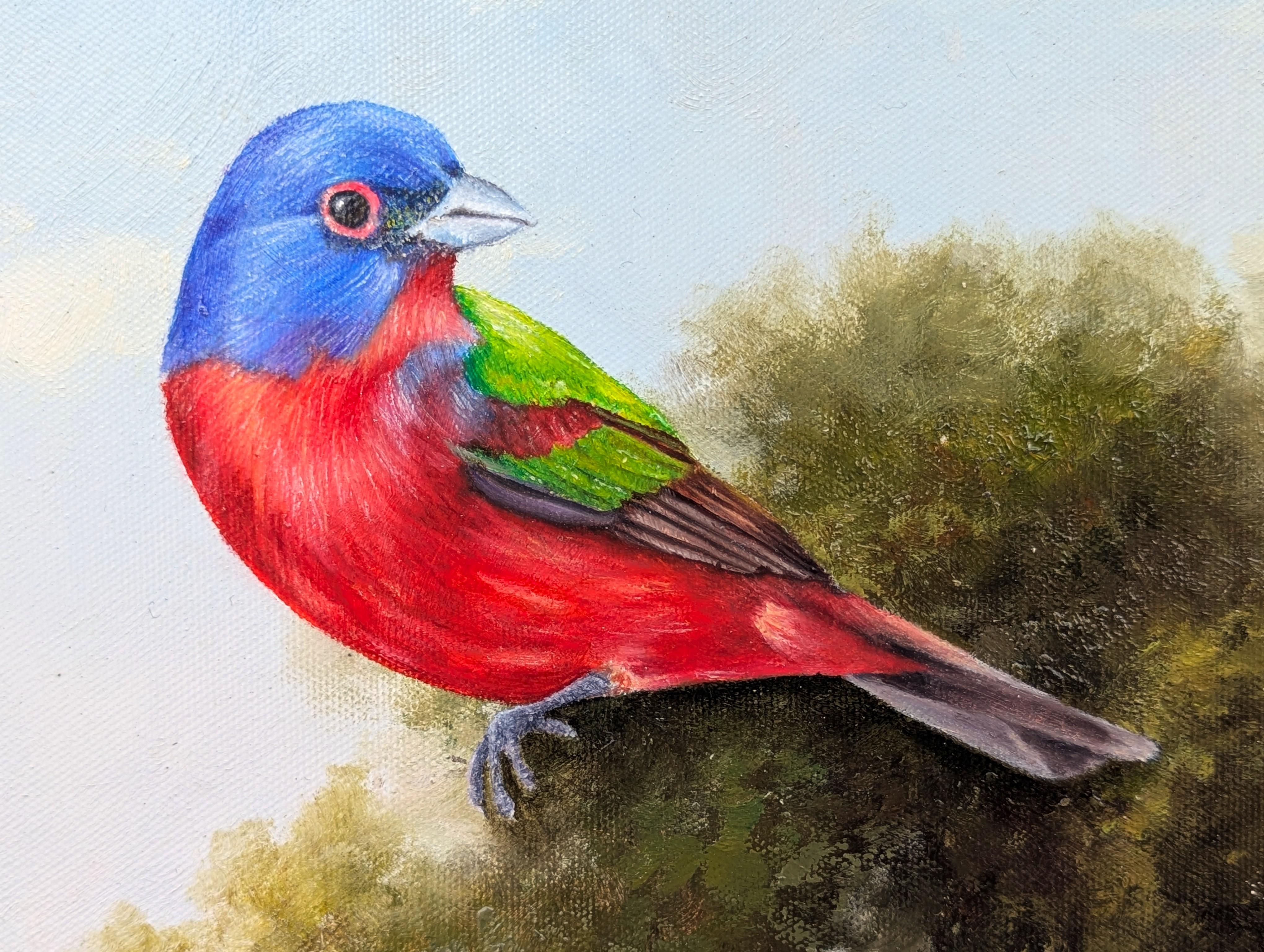 Objekte ähnlich wie "Gemalte Sprossen" Zeitgenössische hyperrealistische Vogel-Landschaftsmalerei