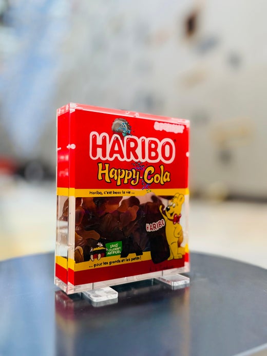 Annick B. Cuadrado, eine in Paris geborene und arbeitende französische Künstlerin, stellt in ihren Kunstwerken die bekanntesten Produkte unseres Konsumlebens vor. Sie hat die Inhaber der berühmtesten Marken und Logos der Welt von ihrer originellen und kreativen Herangehensweise an diese Marken überzeugt. Eine schwierige Aufgabe, wenn man die rechtlichen Mittel kennt, mit denen solche Eigentümer ihre Marken schützen können. Annick b. Cuadrado liebt es, die bekannten Bonbons, Erfrischungsgetränke und Waschmittel mit Eleganz, Elan und Humor zu interpretieren und zu unterhalten. Das Image und die Erinnerung an diese Produkte und Marken sprechen unsere Geschmacksnerven an: Coca-Cola, Hollywood-Kaugummi, Tagada-Erdbeeren, Car en Sac, Marshmallows, Haribo Dragibus, Carambar, Malabar, Krema-Bonbons, Danone etc...