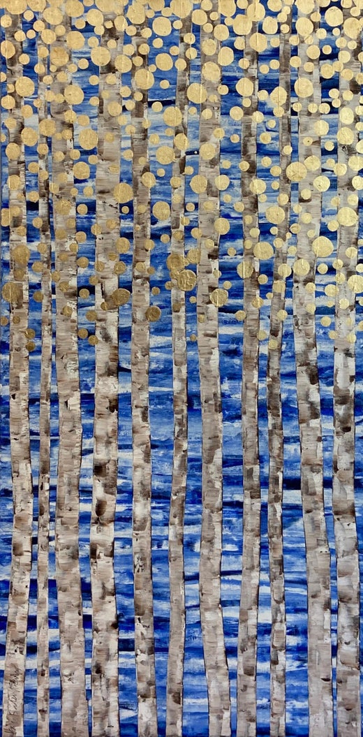 Im Napa Valley, wo Kunst und Natur in Hülle und Fülle vorhanden sind, ist Salenfriends Interpretation der natürlichen Welt komplementär zu der sie umgebenden natürlichen Schönheit. Während einer Reise nach Italien ließ sich Salenfriend von der zeitlosen Schönheit der zerfallenen Reliefs von Pompeji inspirieren, die nun die skulpturale Textur und die Ölfarbschichten in jedem ihrer Werke bestimmen. Salenfriend erinnert an die schimmernden Kunstwerke des österreichischen Symbolisten Gustav Klimt durch die makellosen Schichten aus Gold-, Kupfer- und Silberblättern, die sie für die Gestaltung ihrer atemberaubenden Landschaften verwendet. Die Interaktion zwischen dem Umgebungslicht und dem zarten Metallblatt imitiert die jahreszeitlichen Übergänge in der Natur, die Emotionen, mit denen wir bei der Betrachtung dieser Szenen konfrontiert werden, und ein ständiges Gefühl von Bewegung und Fortschritt.