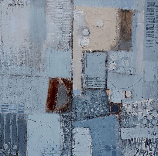 Die Künstlerin Dorothy Gaziano schichtet Orange und Hellblau mit Ölfarbe und Kaltwachs. Sie verwendet Schwarz, um Details hervorzuheben, und trägt M...