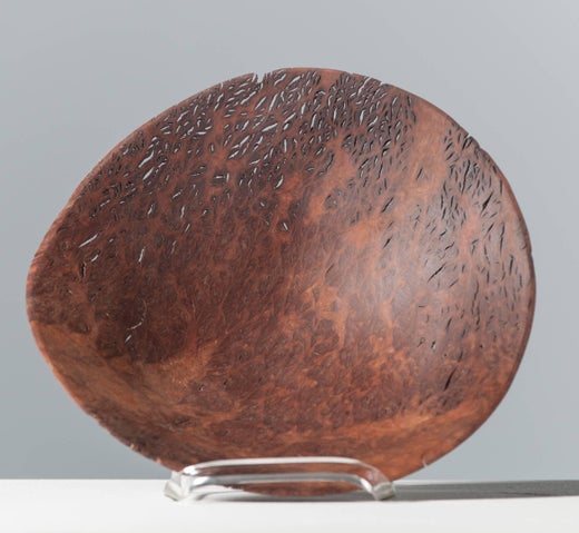Aus unbehandeltem Holz fertigt er große, ausladende Schalen, bei deren Drehung in der Drechselbank der gesamte Saft aus den Holzzellen herausgeschleudert wird, wodurch sich die Zellstruktur der Schale zusammenzieht und aus der perfekten Symmetrie in eine individuellere und aufregendere Form gebracht wird. Diese Bewegung ist nur möglich, wenn die Dicke der Schale 1/8" oder weniger beträgt; andernfalls würden die Spannungen im Holz zu Rissen führen. Diese Beweglichkeit macht solche Arbeiten besonders geeignet für Gegenden mit hoher Luftfeuchtigkeit oder Hitze, da die Schale so dünn ist, dass sie sich gerade so weit biegen kann, dass sie nicht spaltet.