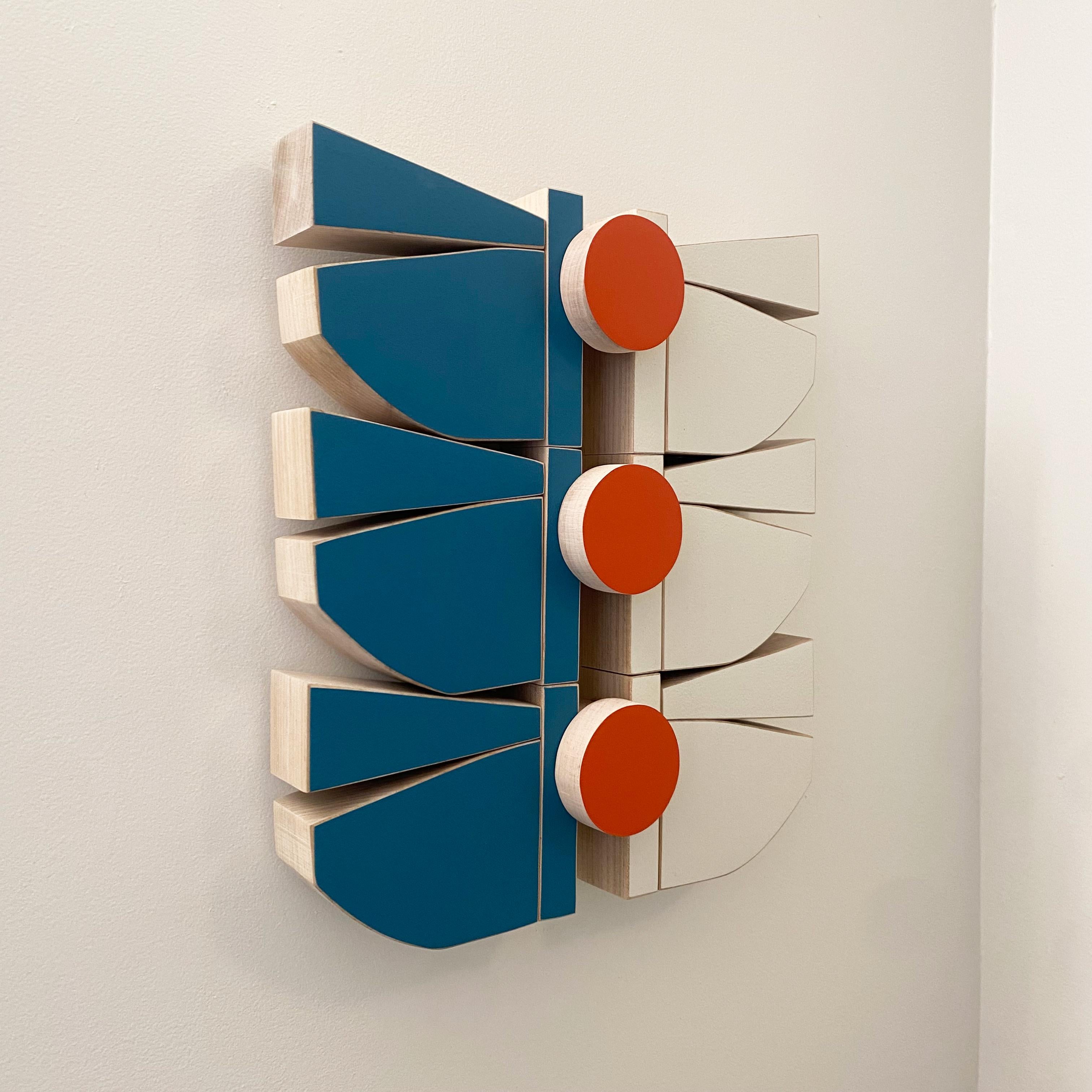 Scott Troxel„Oranges“ Wandskulptur aus Holz, mcm, orange, rot, Kürbis, marineblau, modernismus, 2022