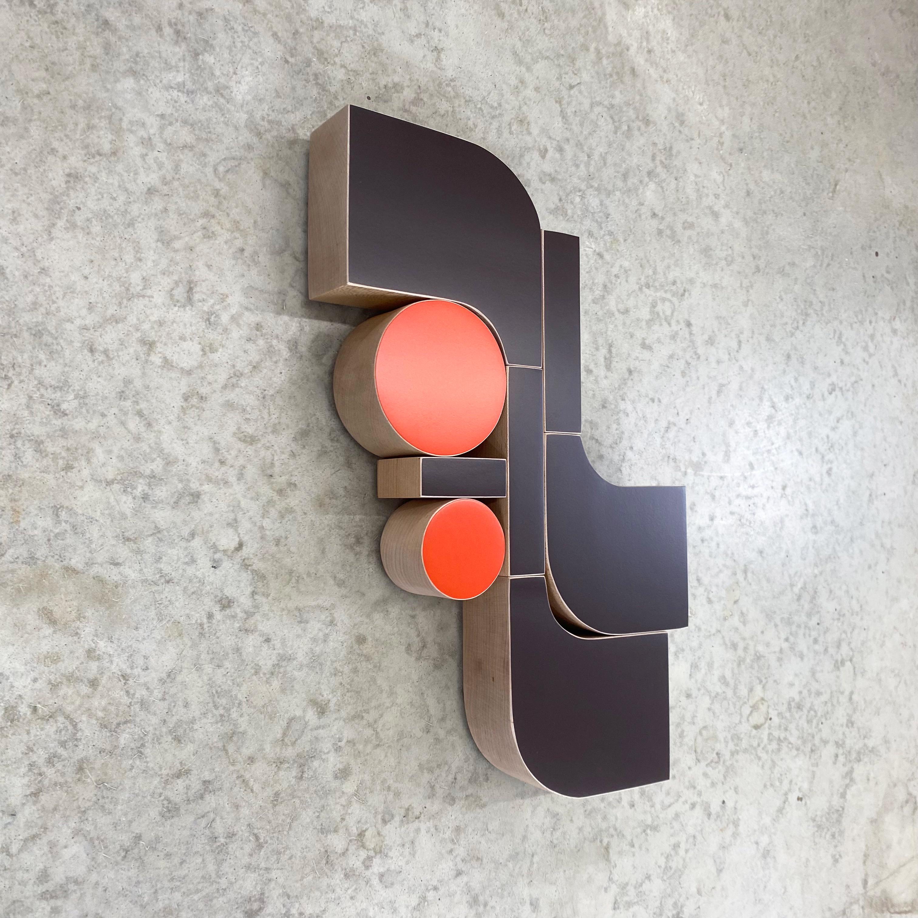 Scott Troxel"Flow Meter" Wandskulptur Mitte des Jahrhunderts modern, braun, orange, aubergine, mcm2024