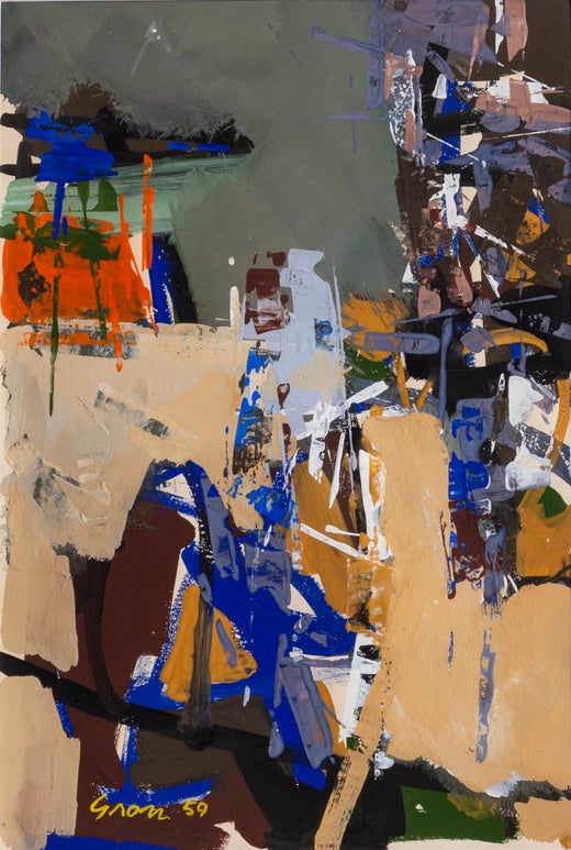 Sidney GrossAbstrakt-expressionistisches Gouache-Gemälde von Sid Gross, 19591959
