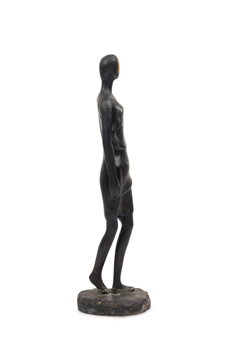 Zeitgenössische, handgeschmiedete, brutalistisch inspirierte Bronzeskulptur, die eine weibliche, schreitende Figur darstellt und mit einer ebonisierten Patina überzogen ist (PREIS pro Stück) (\"THE PEDESTRIAN\" - limitierte Auflage von 10 Stück)