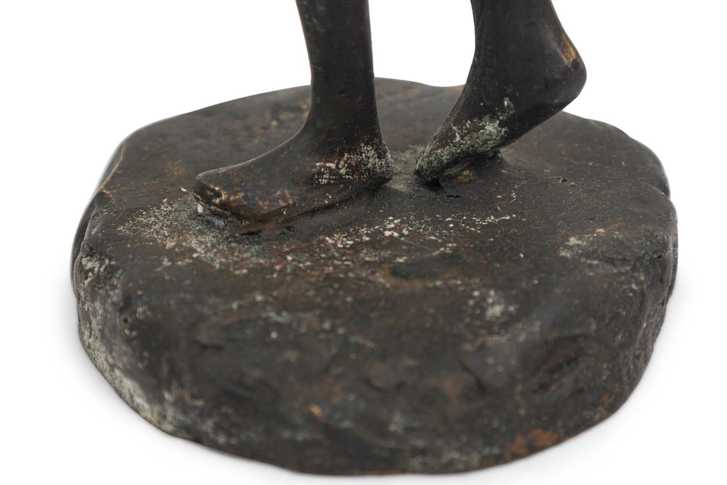 20. Jahrhundert Schule Brutalist Bronze Figurative Skulptur einer Frau auf einem Bein stehend. Misst 9" in der Breite, 8" in der Tiefe und steht 19" hoch. Wiegen etwa 25 Pfund