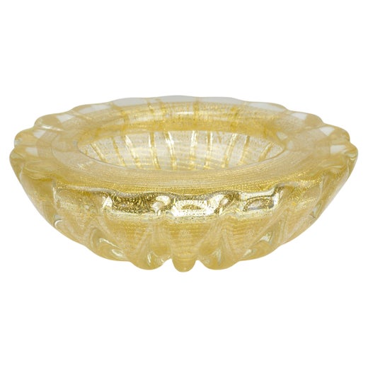 Barovier konzentrierte sich in den Nachkriegsjahren auf die Neuinterpretation klassischer Techniken und Stile. Geometrisch gemusterte Vasen, die in ihren kühnen Formen an antike griechische Töpferwaren erinnern, gehören ebenso zu seinen charakteristischen Werken aus dieser Zeit wie die detailgetreuen Art Deco Servierschalen aus Glas. Blattgold wurde als dekorative Verzierung eingesetzt, und Barovier achtete darauf, dass seine Stücke den zeitgenössischen Trends entsprachen. Sein Glas aus der Mitte des Jahrhunderts ist bei den heutigen Sammlern besonders begehrt.
