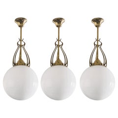 Adolf Loos Paar Pendelleuchten für VeArt Opalglas Gold, um 1960