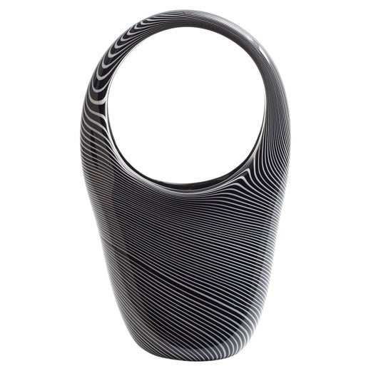Italienische Moderne Kunst Schwarz Weiß Streifen Murano Glas Organische Vase Tafelaufsatz
