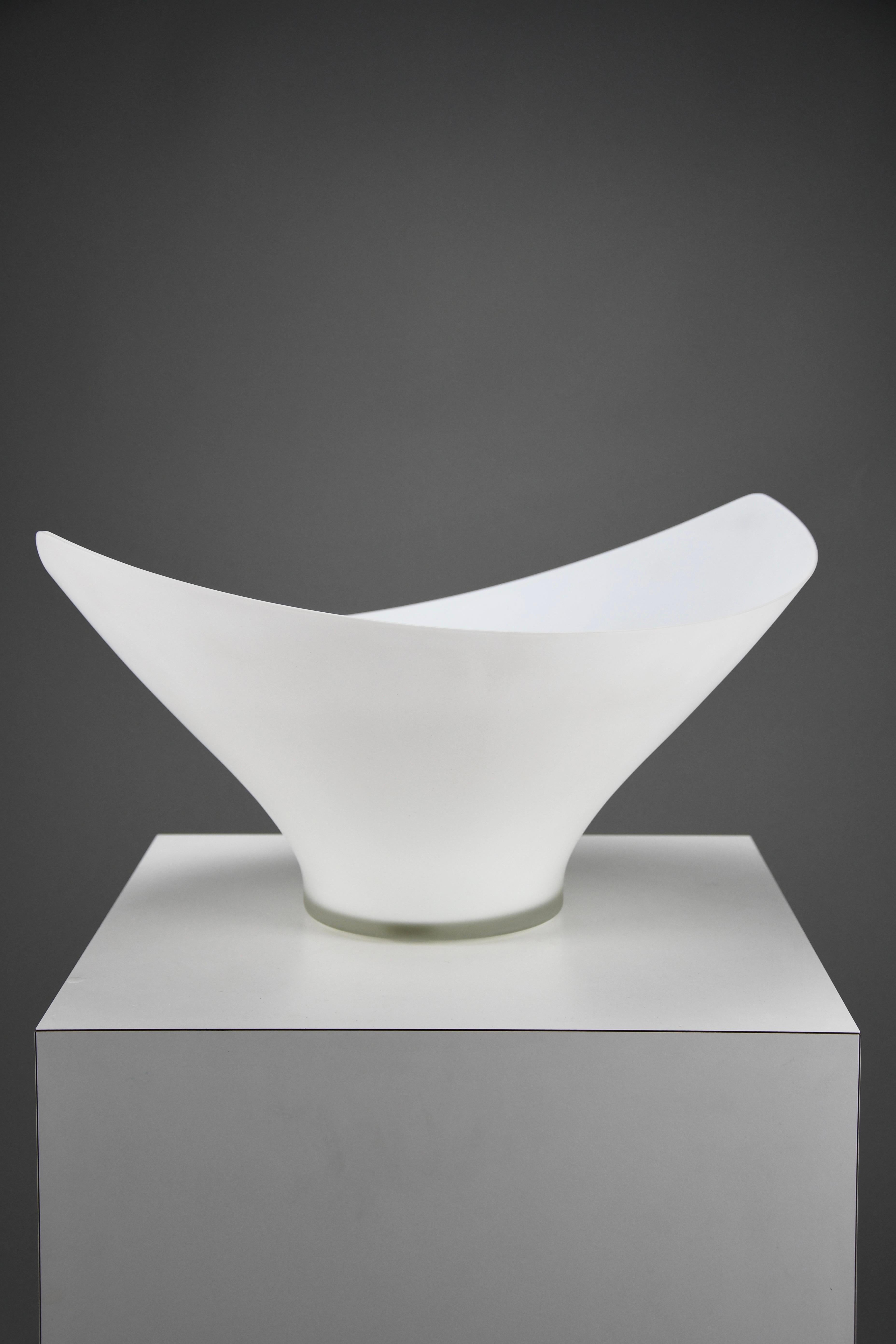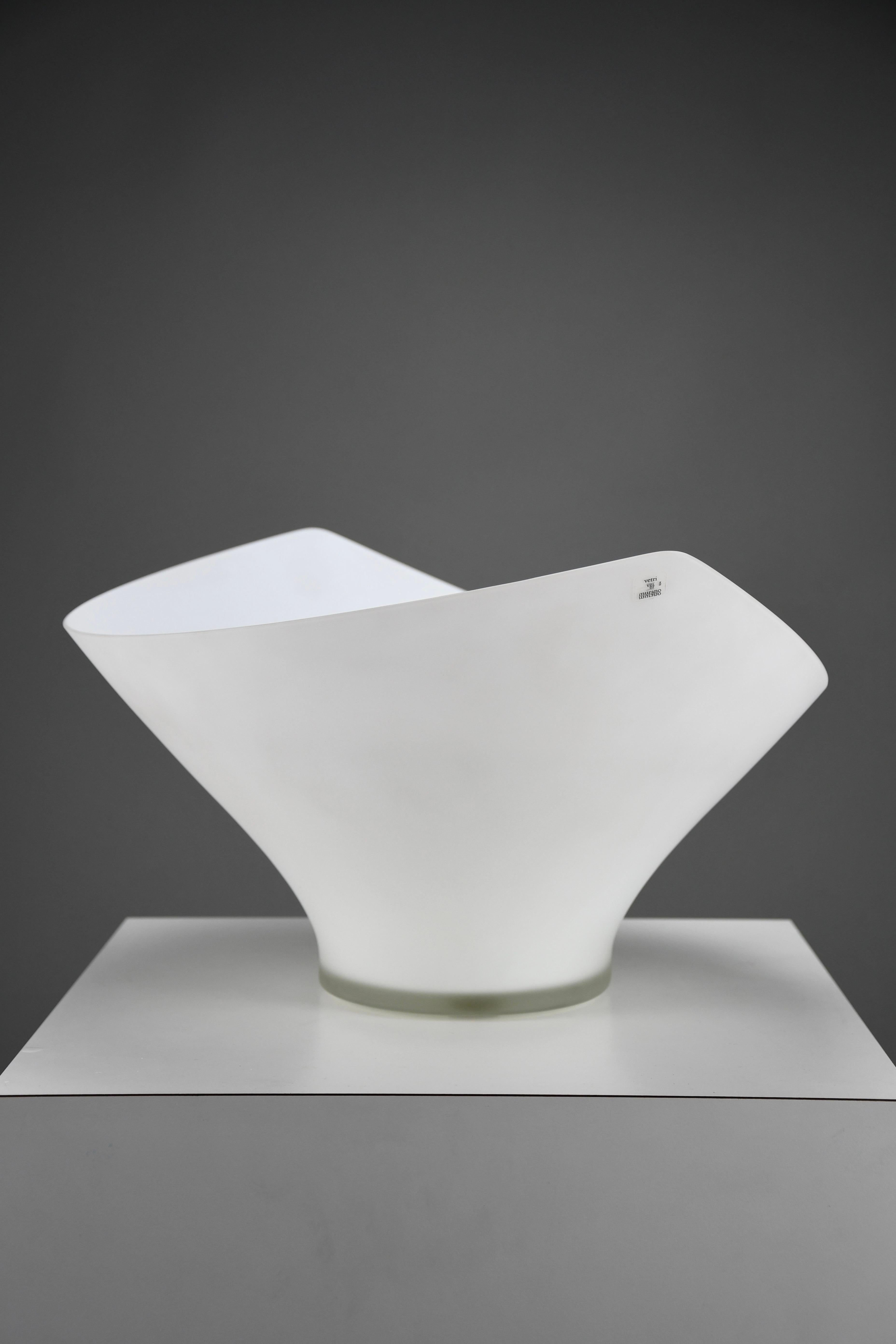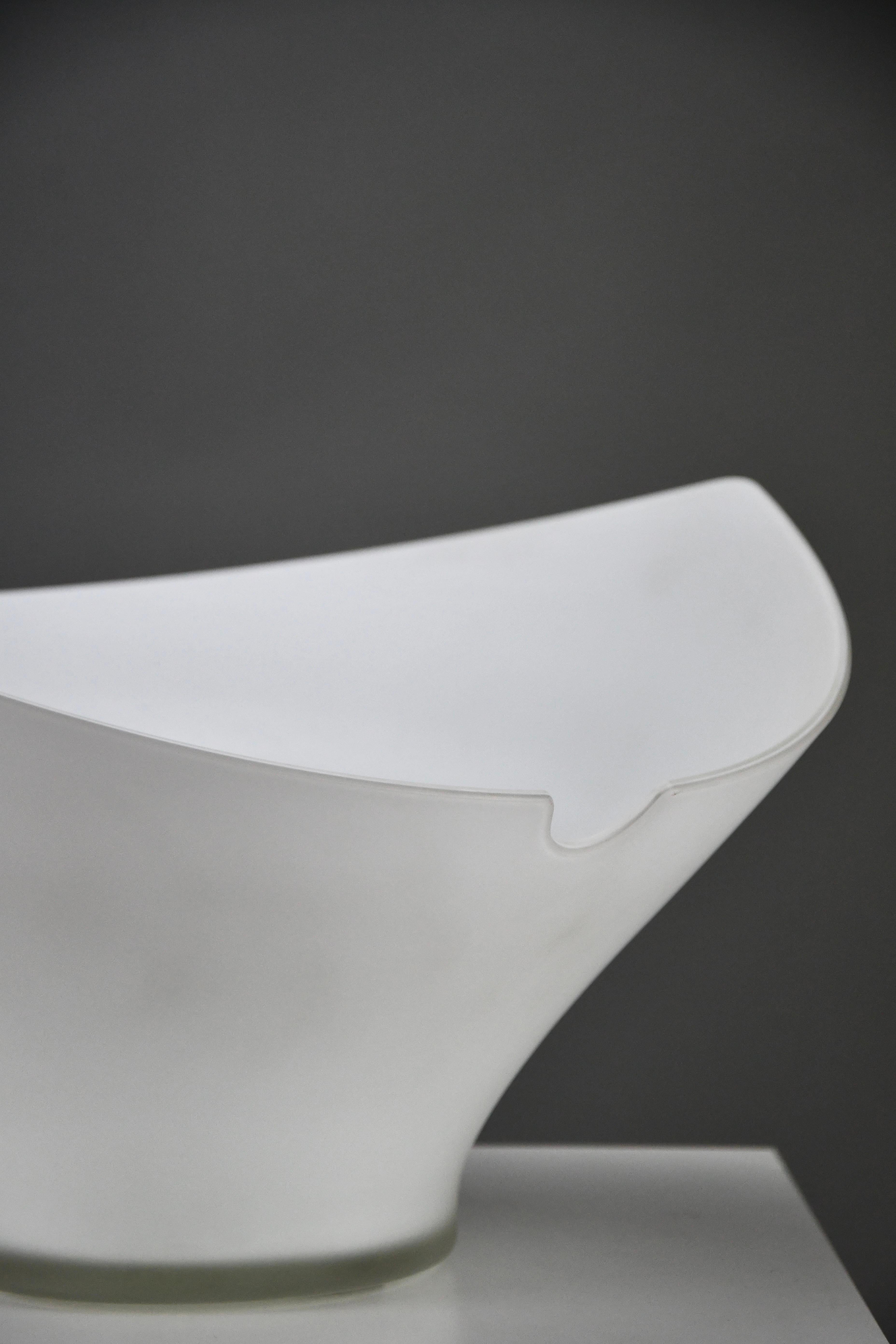 Wunderschönes mundgeblasenes und handgeschliffenes 3-Schichten-Glas, Kristall - weiß - Kristall, gefrostet im Säurebad. Entworfen von Kazuhiko Tomita für Arcade, Murano, Venedig 1993. Diese Schönheit ist in perfektem Zustand.