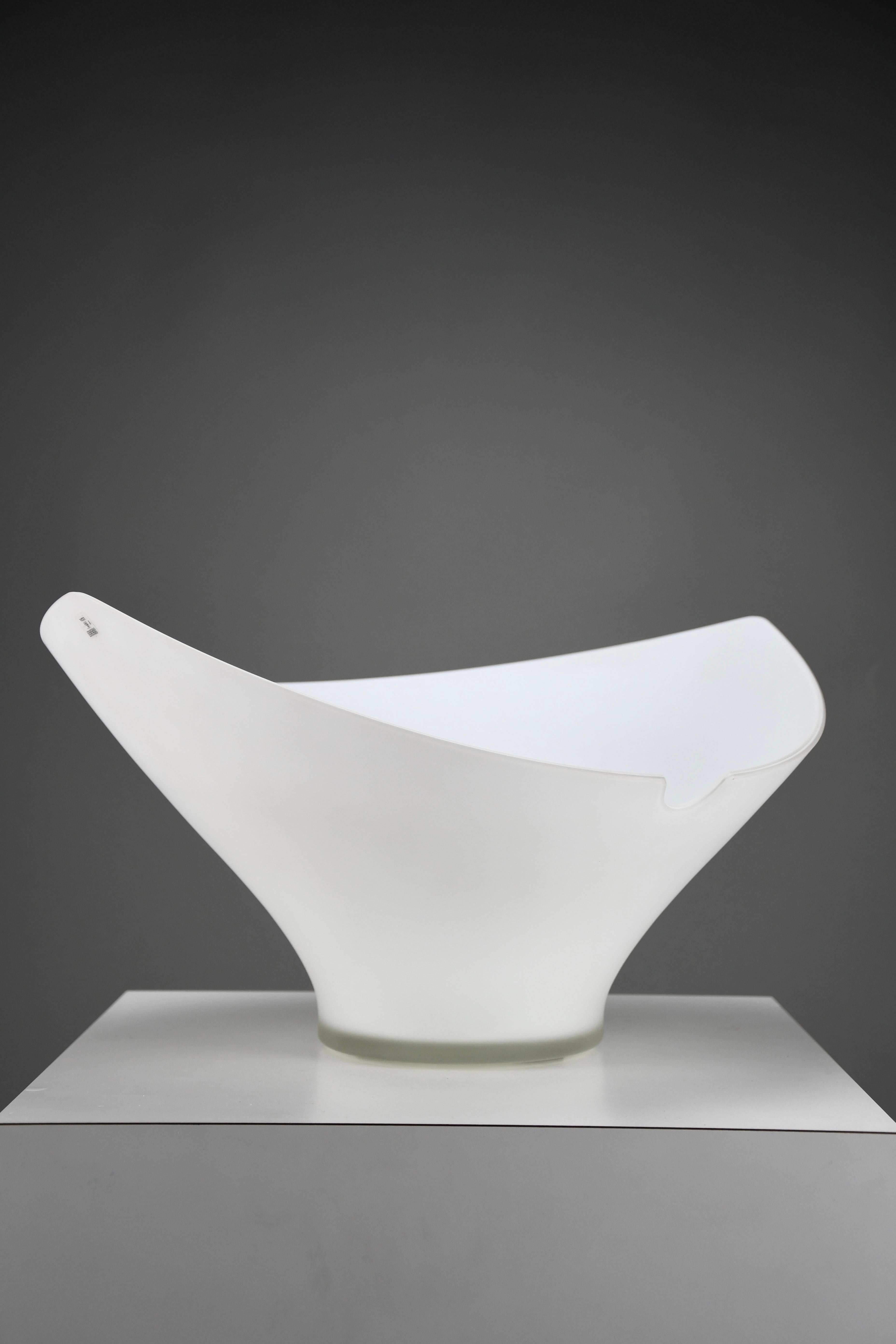 Große weiße Seguso-Murano-Glasschale "a Scavo" von Maurizio Albarelli