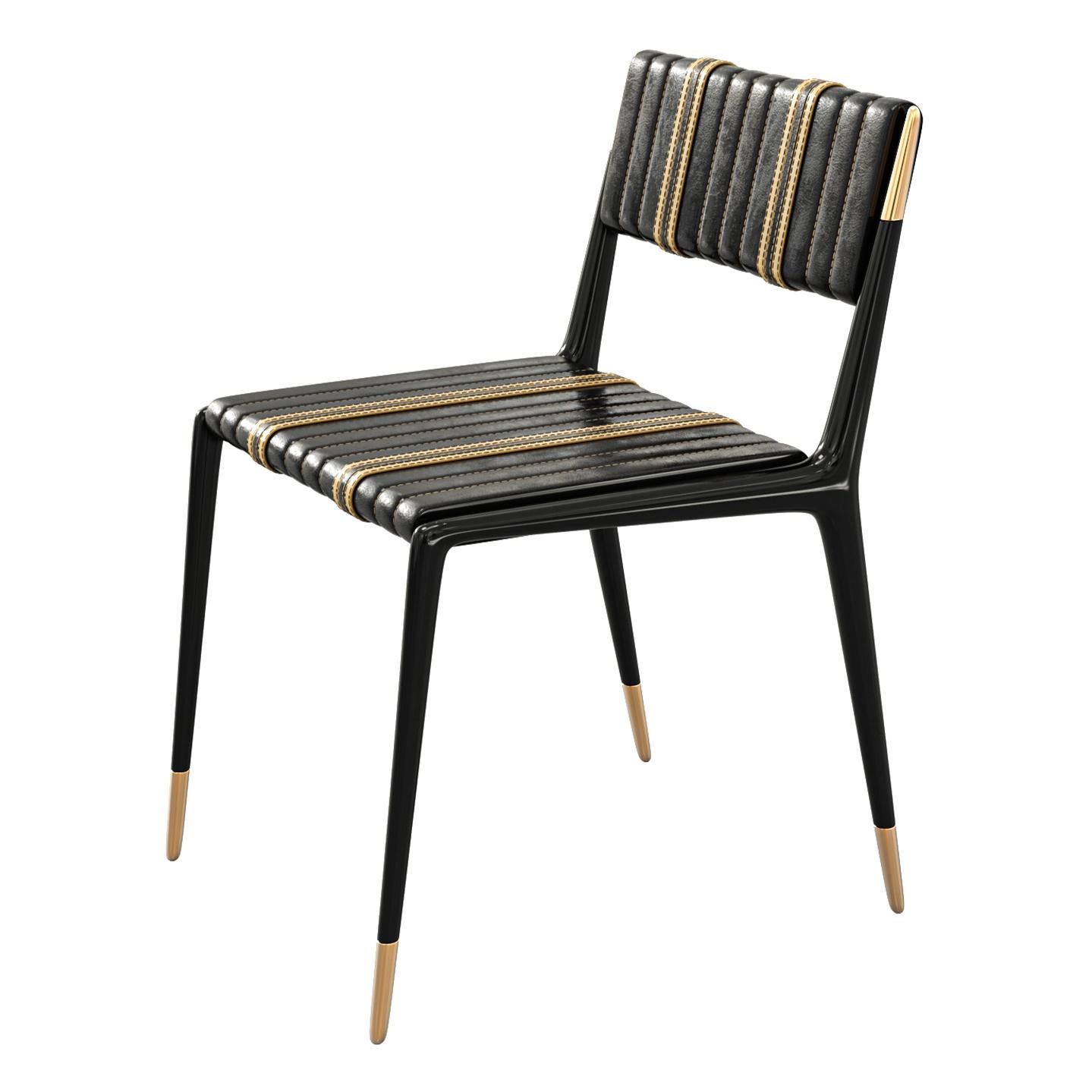 Stuhl "Gusto", Edelstahl, Bronzedetails, maßgeschneidertes Leder, Istanbul.