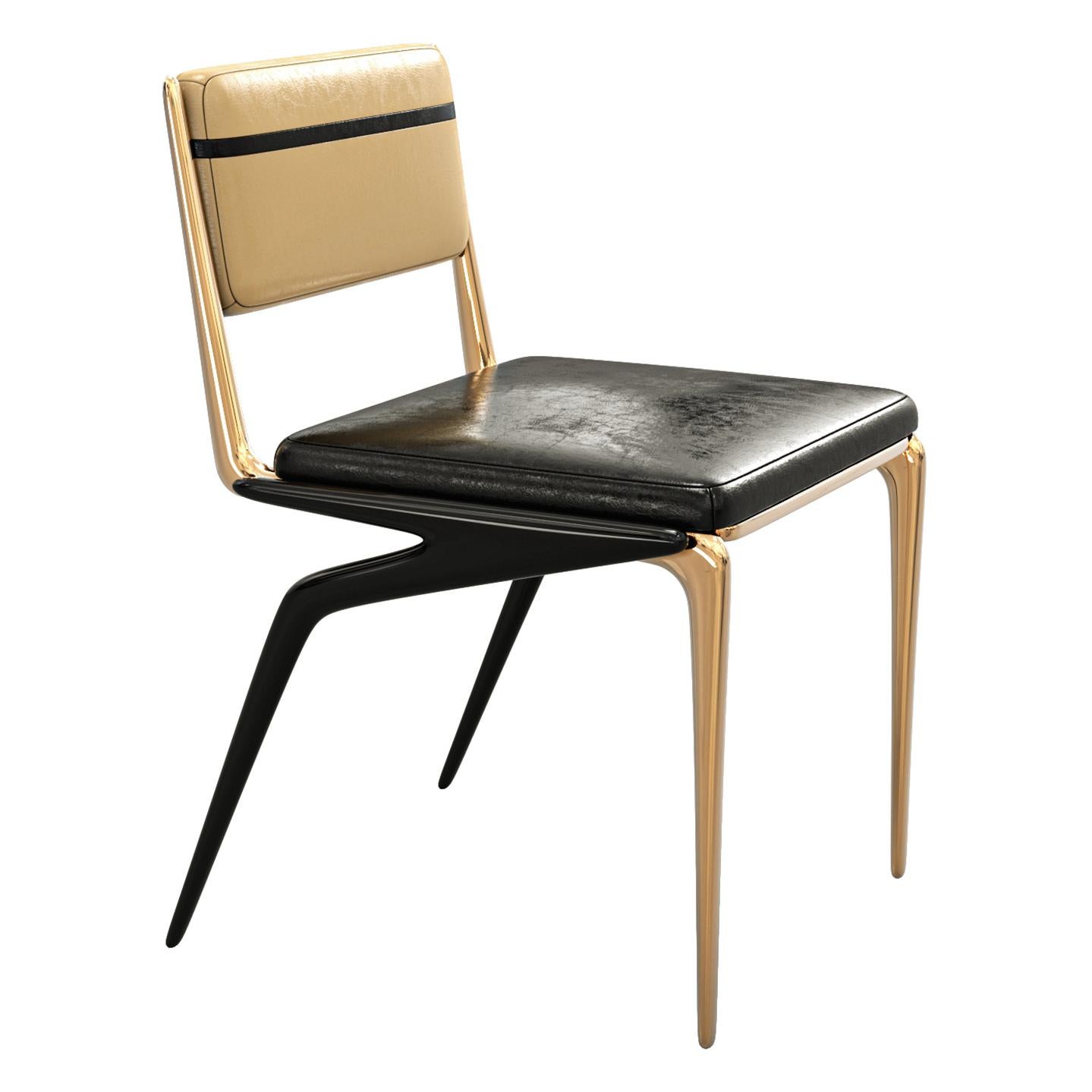 "Gusto" Stuhl, Edelstahl, Bronzedetails, maßgeschneidertes Leder, Istanbul