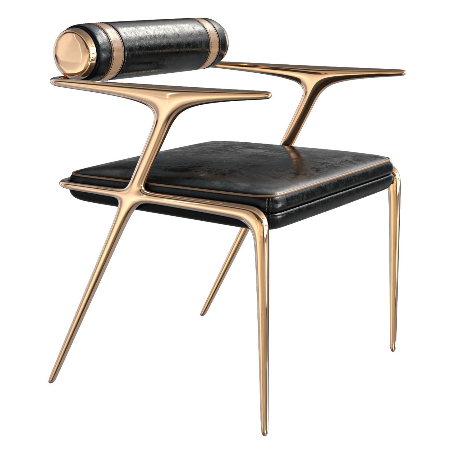 „Vanquish“-Stuhl, achtteilig, Bronze und maßgeschneidertes Leder, Istanbul