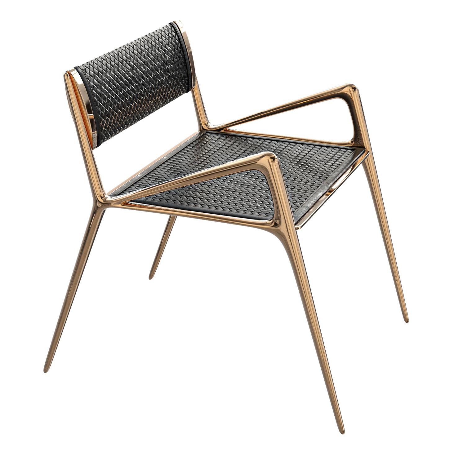 Stuhl "Gala", mit Bronze und gewebtem Leder, Maßanfertigung, Istanbul