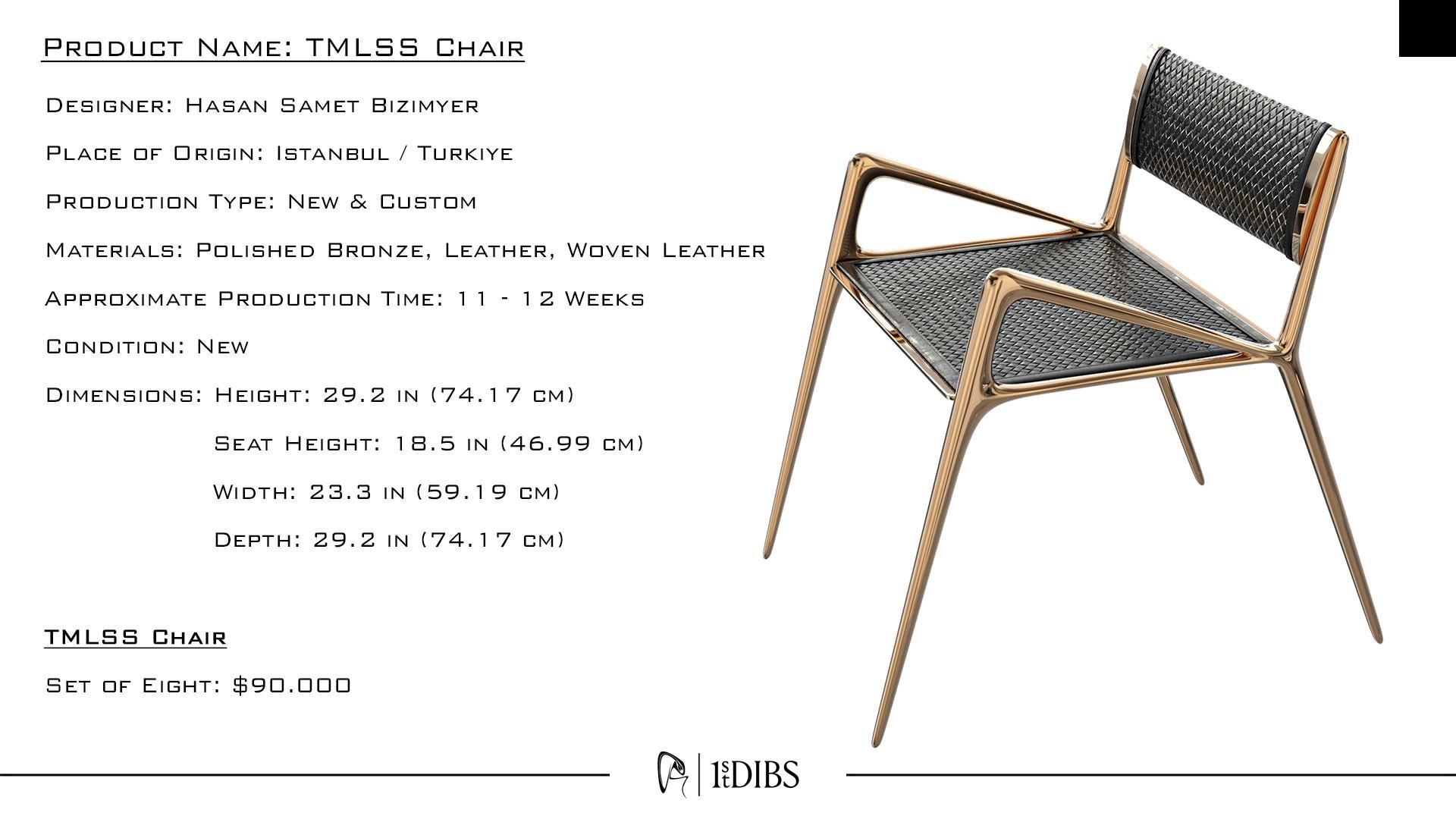 "TMLSS"-Stuhl, Achtergruppe, mit Bronze und maßgeschneidertem gewebtem Leder, Istanbul