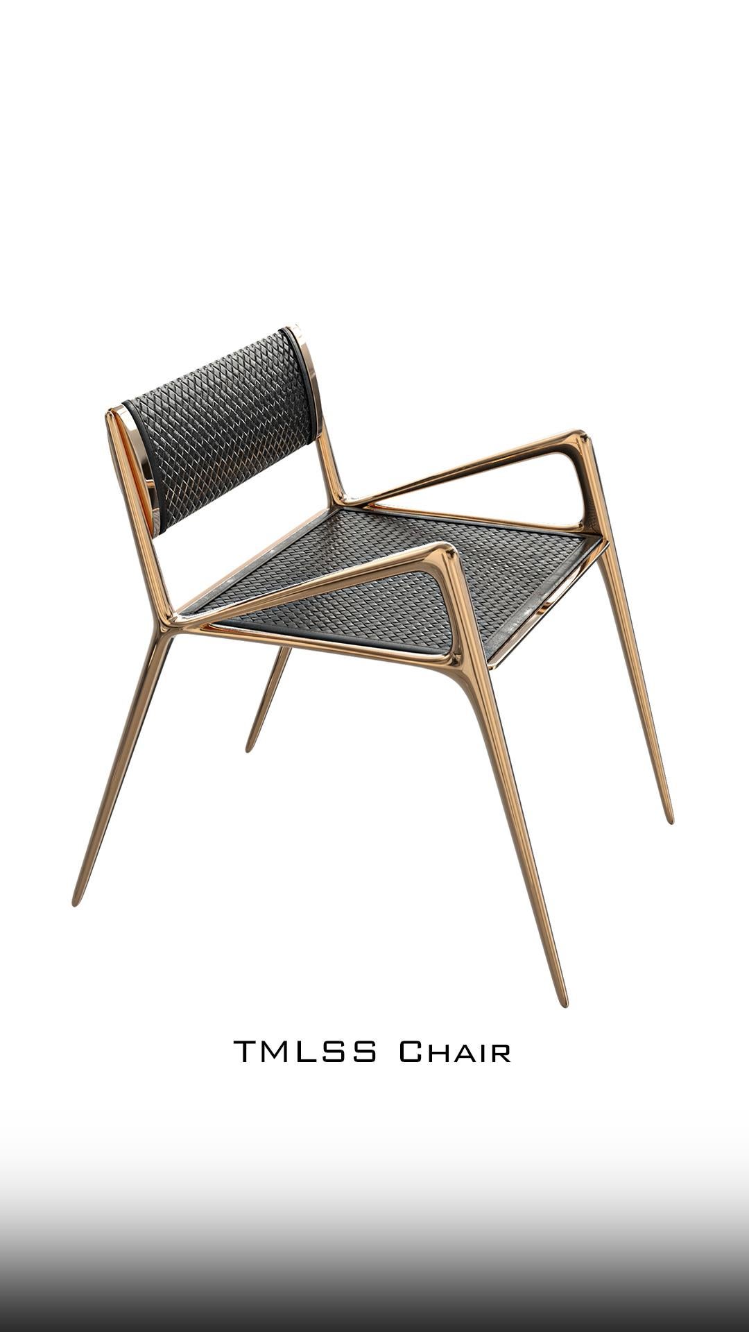 "TMLSS"-Stuhl, mit Bronze und maßgeschneidertem gewebtem Leder, Istanbul.