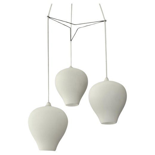 Als Kreativdirektor bei Bergboms arbeitete Svensson mit Messing und Opalglas, um eine Reihe von Leuchten zu entwerfen. Er entwarf skulpturale Stehlampen im Dreibein-Stil mit Körpern aus dampfgebogenem, massivem Teakholz - ein beliebtes Material bei den Möbelbauern der Mitte des 20. Jahrhunderts -, während seine hängenden Deckenleuchten mit lackierten Metallschirmen Farbakzente in Wohnräume und Eingangsbereiche bringen.