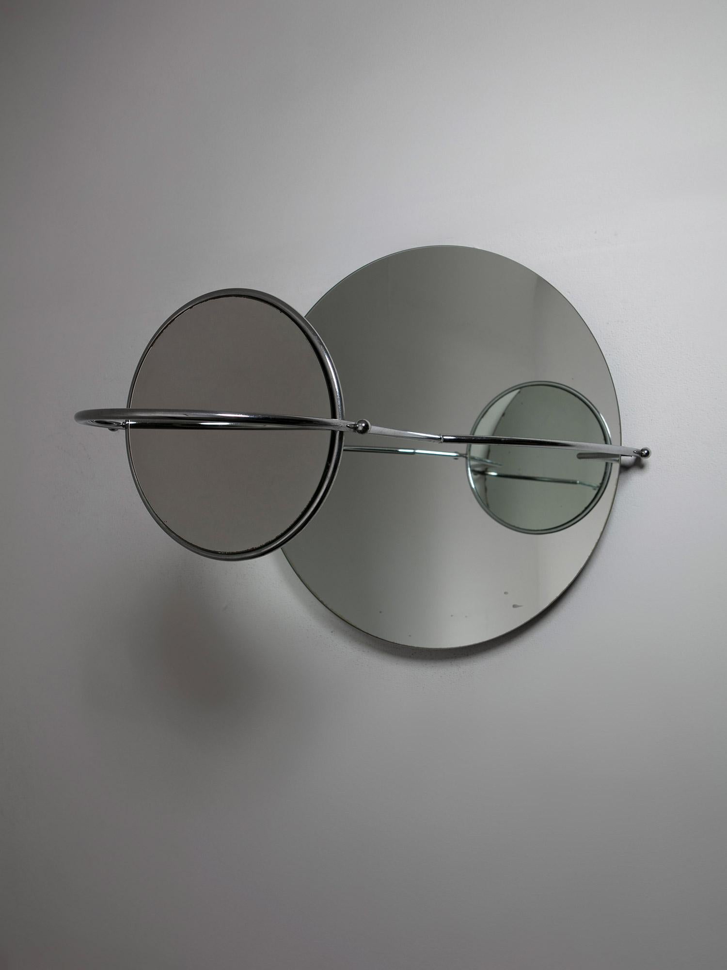 Wunderschöner exzentrischer runder Wandspiegel mit Doppelgläsern in verschiedenen Farben, Cr...