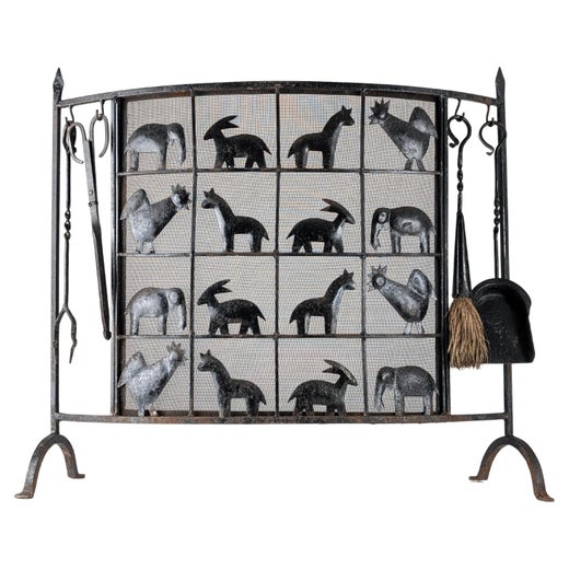 Der französische Künstler Jean Touret war der Gründer von Les Artisans de Marolles, einer Gruppe von Möbelherstellern, die in der Nachkriegszeit im Loire-Tal ansässig waren. Zu den rustikalen, aber hervorragend proportionierten Stücken, die sie herstellten, gehörten Bänke aus ausgehöhltem Holz, eine schmiedeeiserne Leuchte in Form eines Hahns, dreibeinige Hocker mit geschnitzten Sitzen, die sich an den Körper anschmiegen, und eine Reihe außergewöhnlicher Kredenzen, deren Türen von Touret selbst geschnitzt wurden, mit Themen wie den sieben Todsünden und dem Hirtenleben.