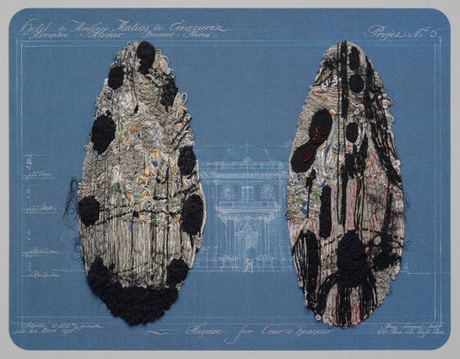 Diptychon ohne Titel, Handstickerei auf Papier. Aus der Serie Cartografía