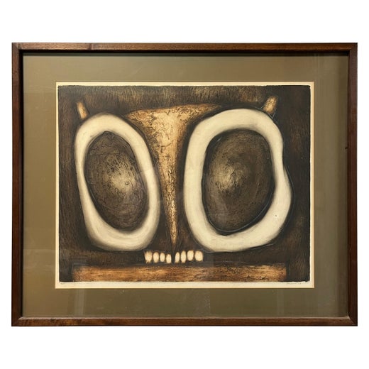 Mitte des Jahrhunderts Eule Joseph Demarais Lithographie Radierung