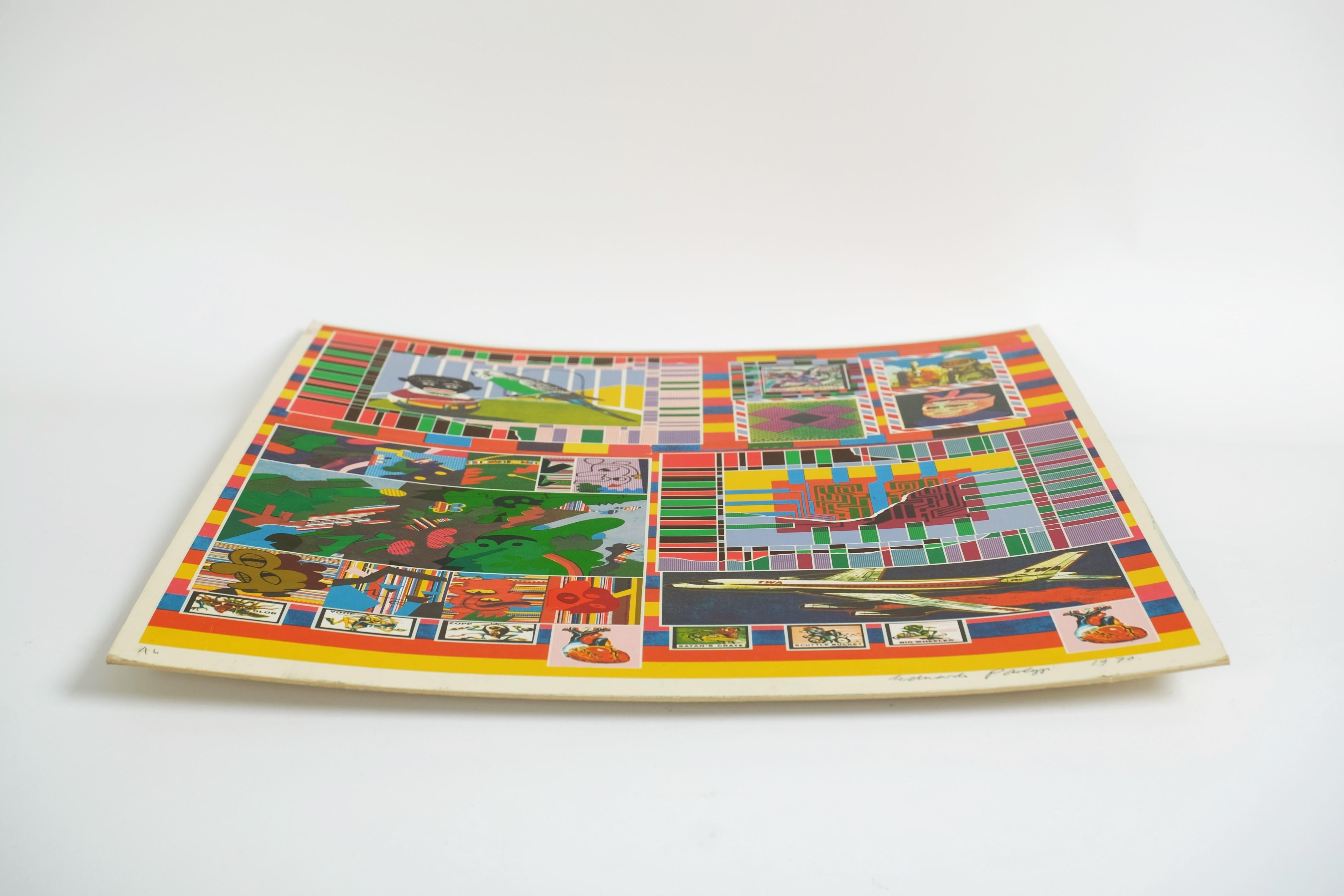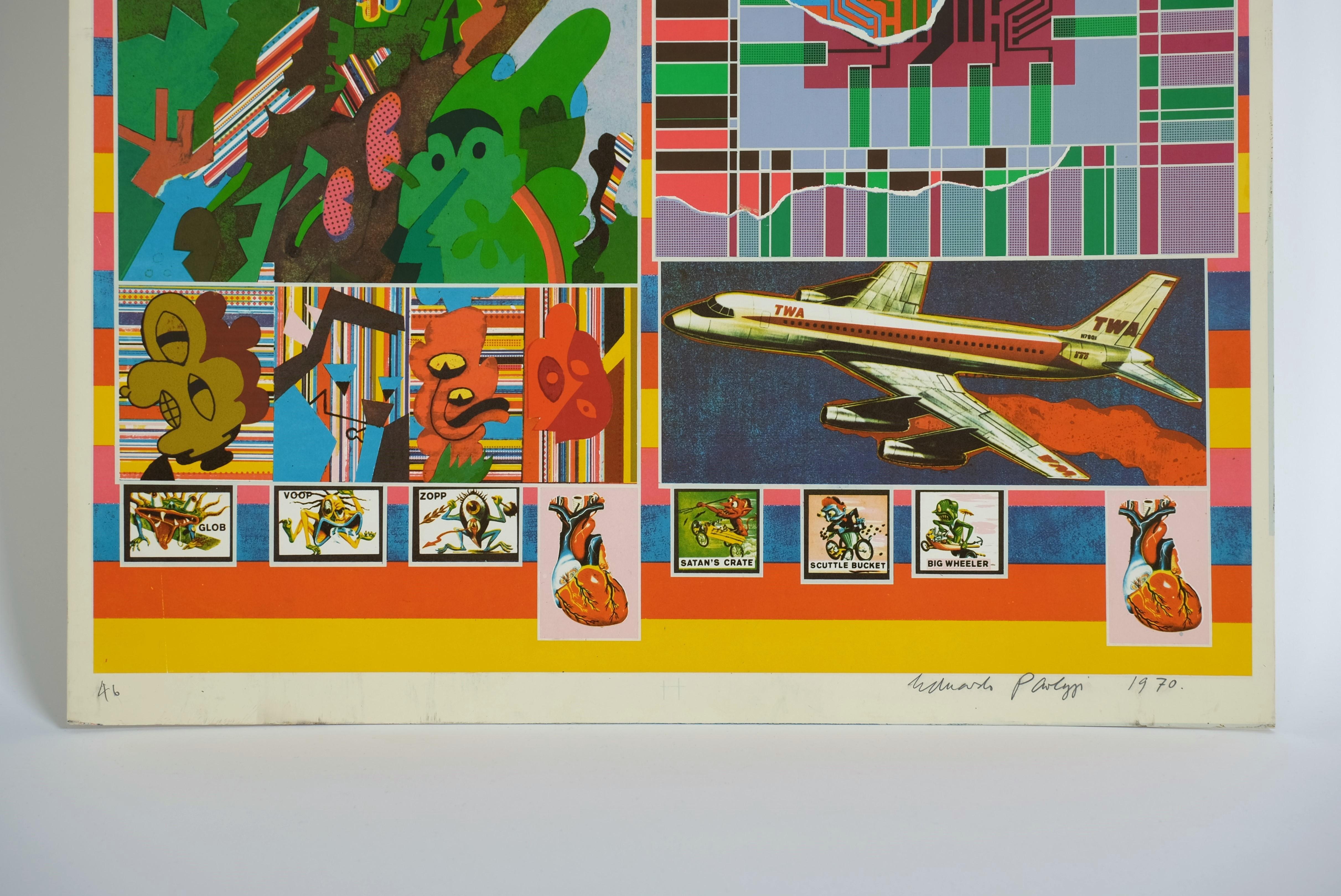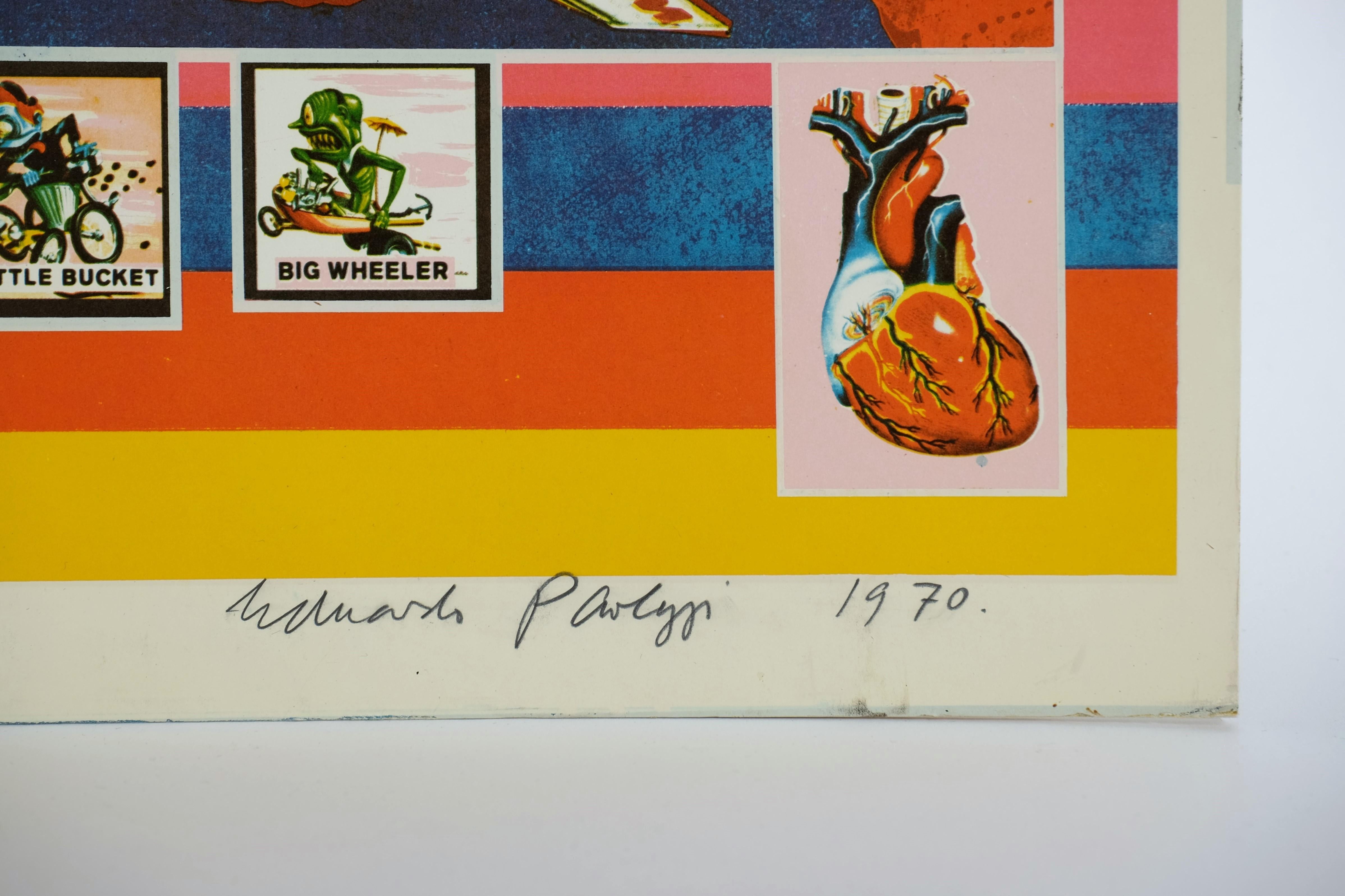Screen print and lithograph by Eduardo Paolozzi (1924-2005) on thick card. Paolozzi was one of the founding fathers of Pop Art. The print is signed Eduardo Paolozzi and dated 1970 lower right, with the number 46 in lower left corner. From an edition of 80. Printed at Advanced Graphics and published by Petersburg Press, London.