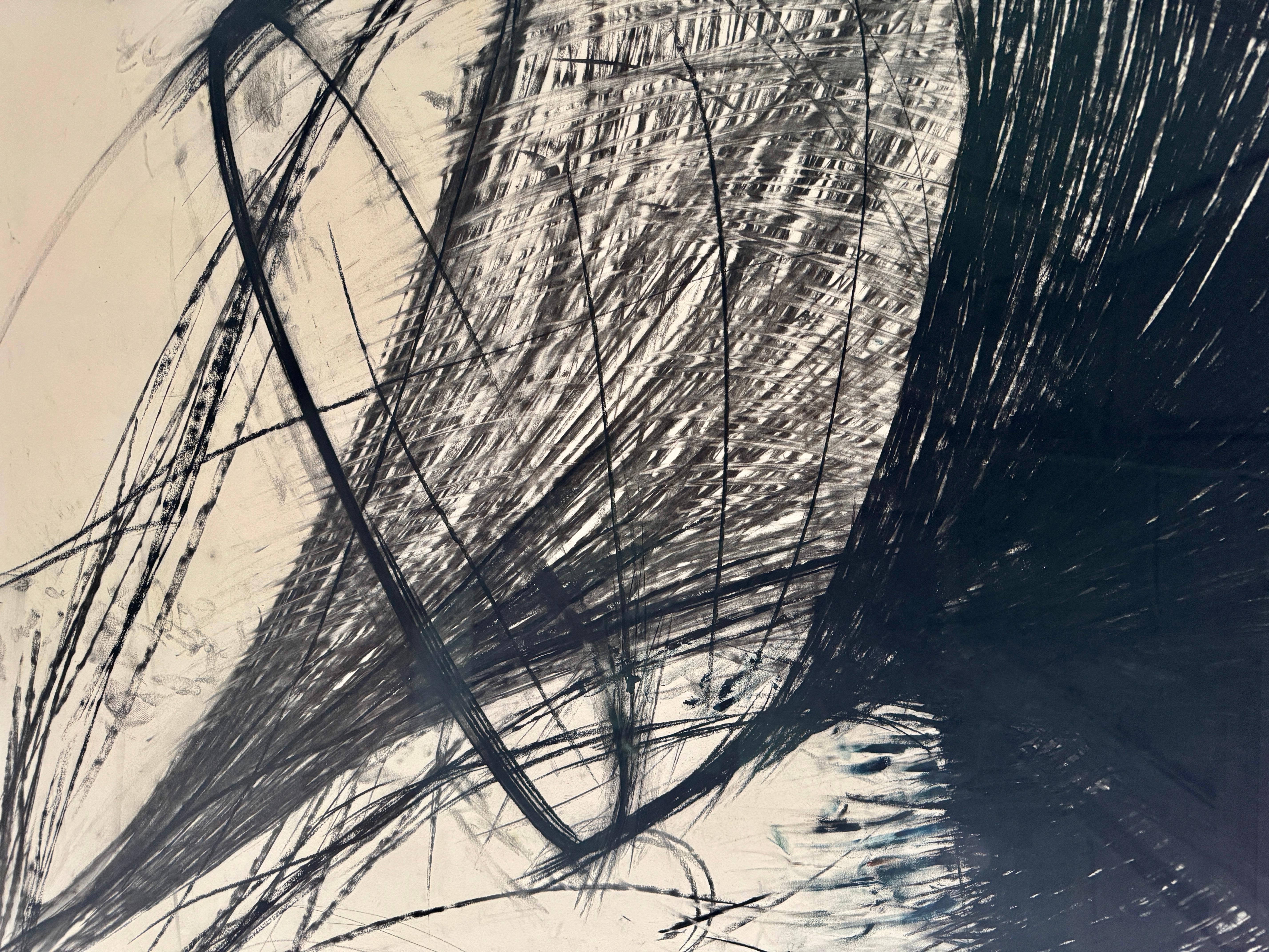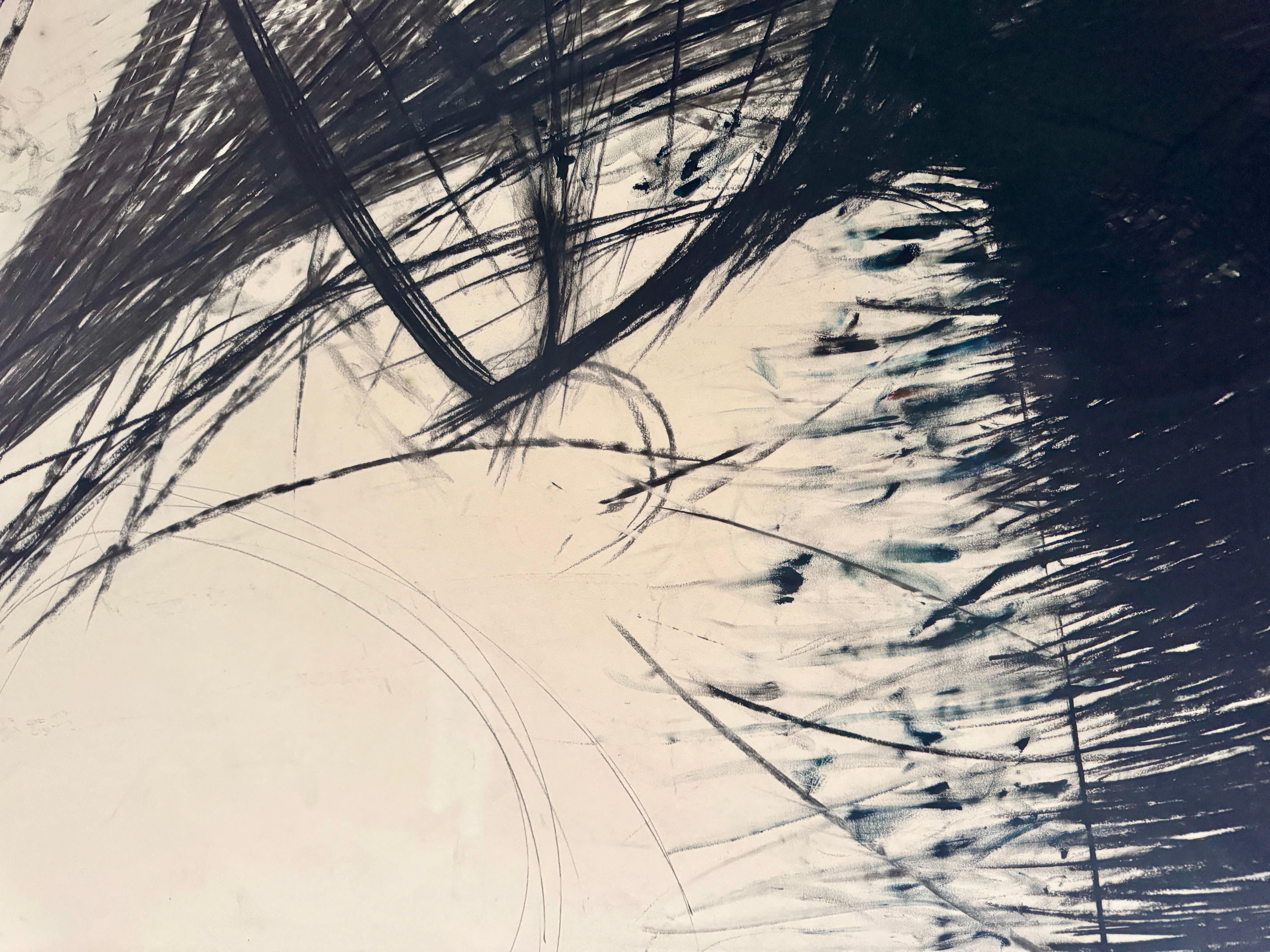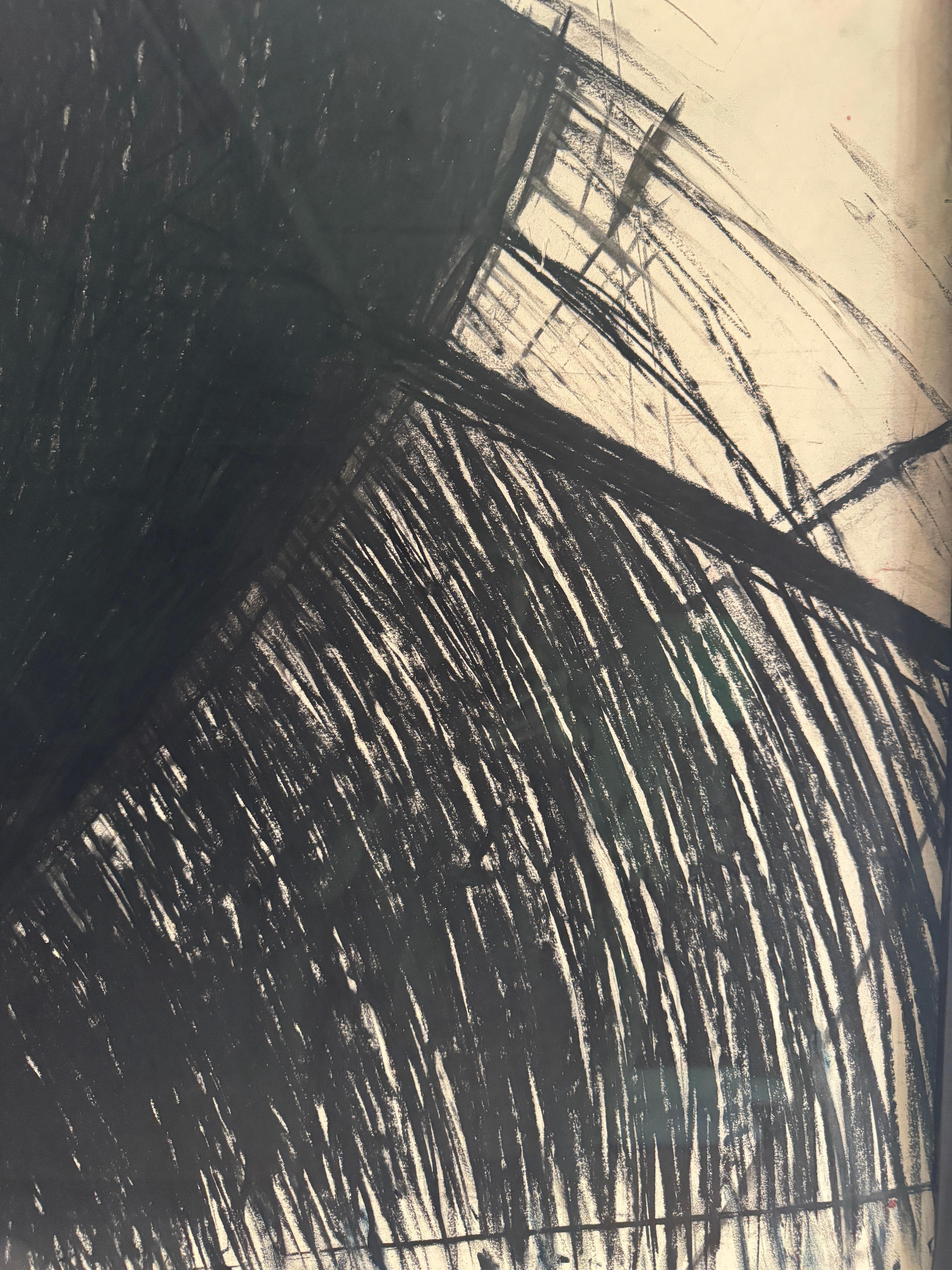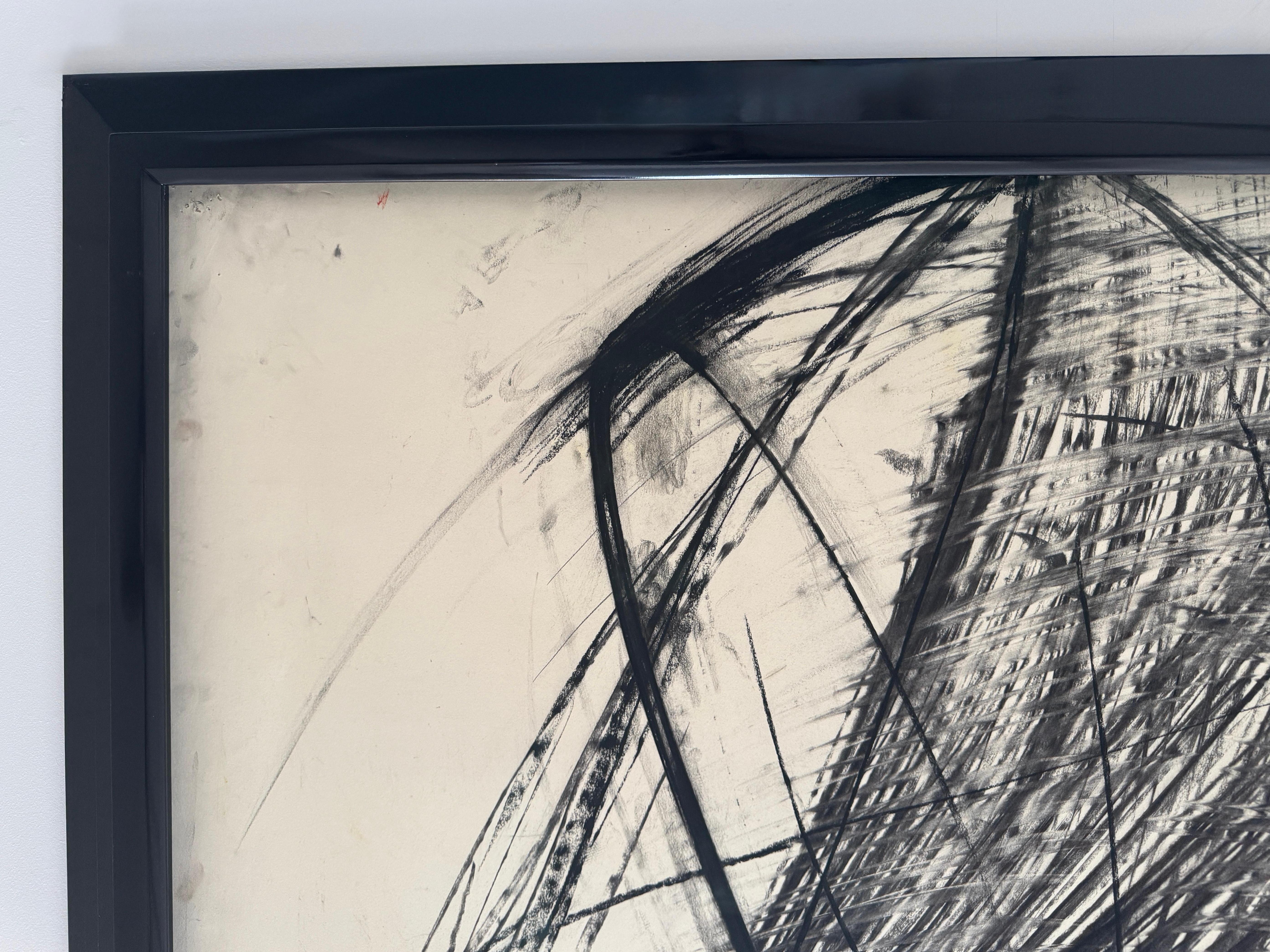 Eine dynamische abstrakte Lithografie der amerikanischen Künstlerin Heide Fasnacht mit dem Titel "Montauk Coincidence". Dieses 1984 entstandene Werk verkörpert Fasnachts Erkundung von Bewegung, Spannung und räumlicher Energie durch kühne gestische Zeichen.
