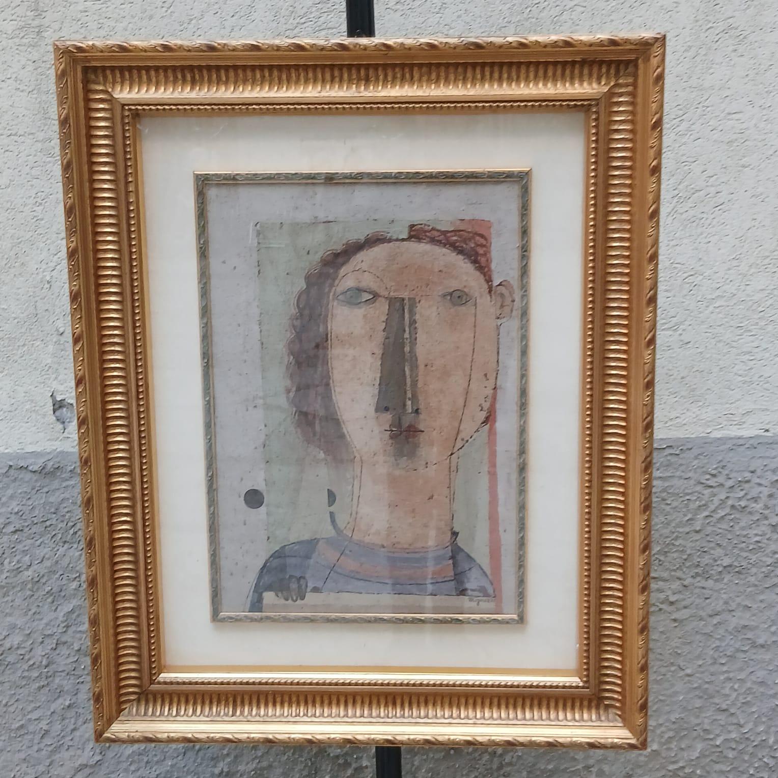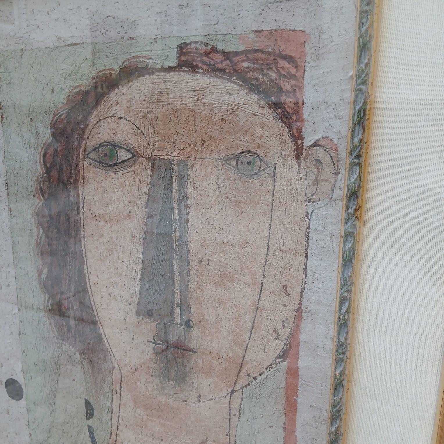 "Figura Frontale" di Antonio Mignozzi - Olio/Affresco su Tela - Italia 1970/